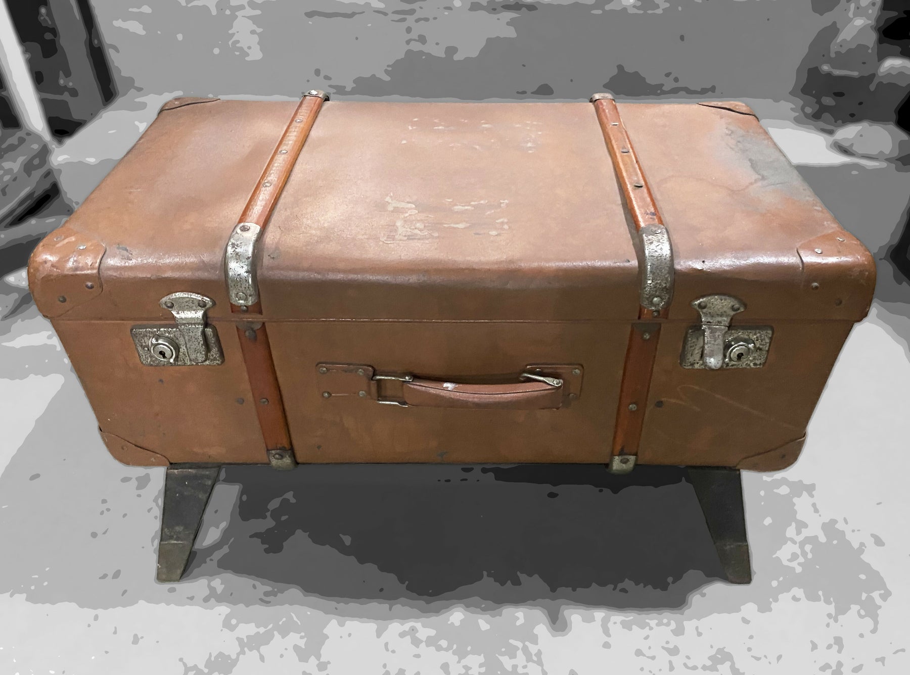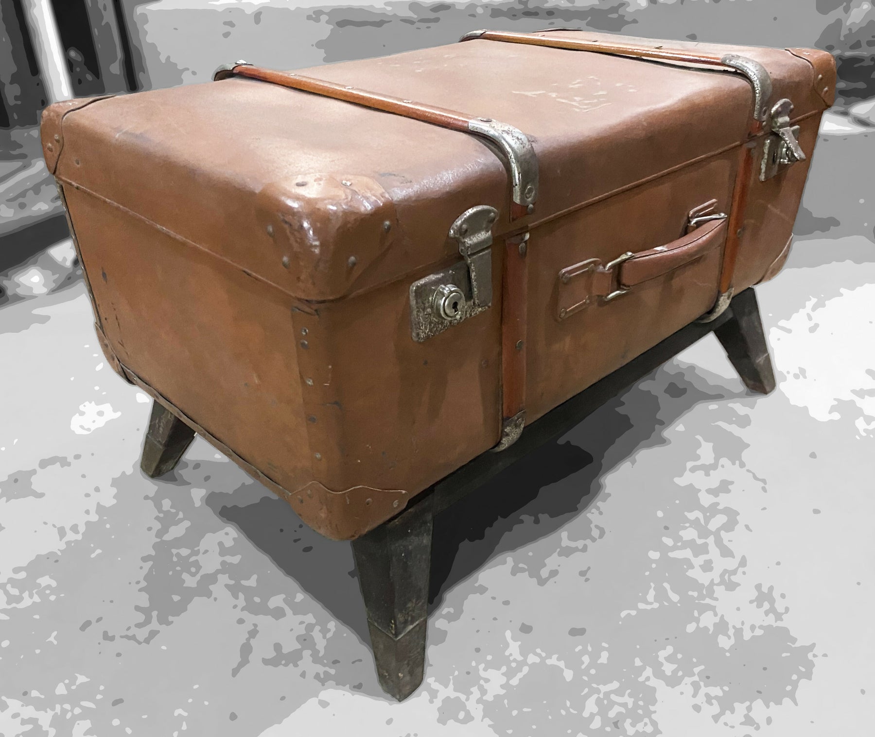Baú antigo (original), estrutura acartonada, longarinas de madeira e metais. Dimensão (LxAxP): 70x26x39cm. Opcional (adicional de $400): Estrutura antiga de madeira maciça (imbúia) que eleva o baú do chão (altura 14cm)