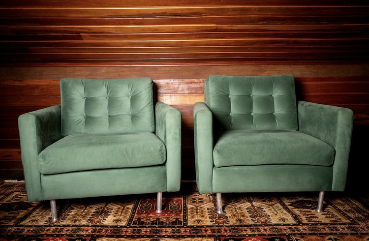 Par de Poltronas Arm Chair, Mid Century, na cor verde, tecido novo, macio em excelente estado de conservação.