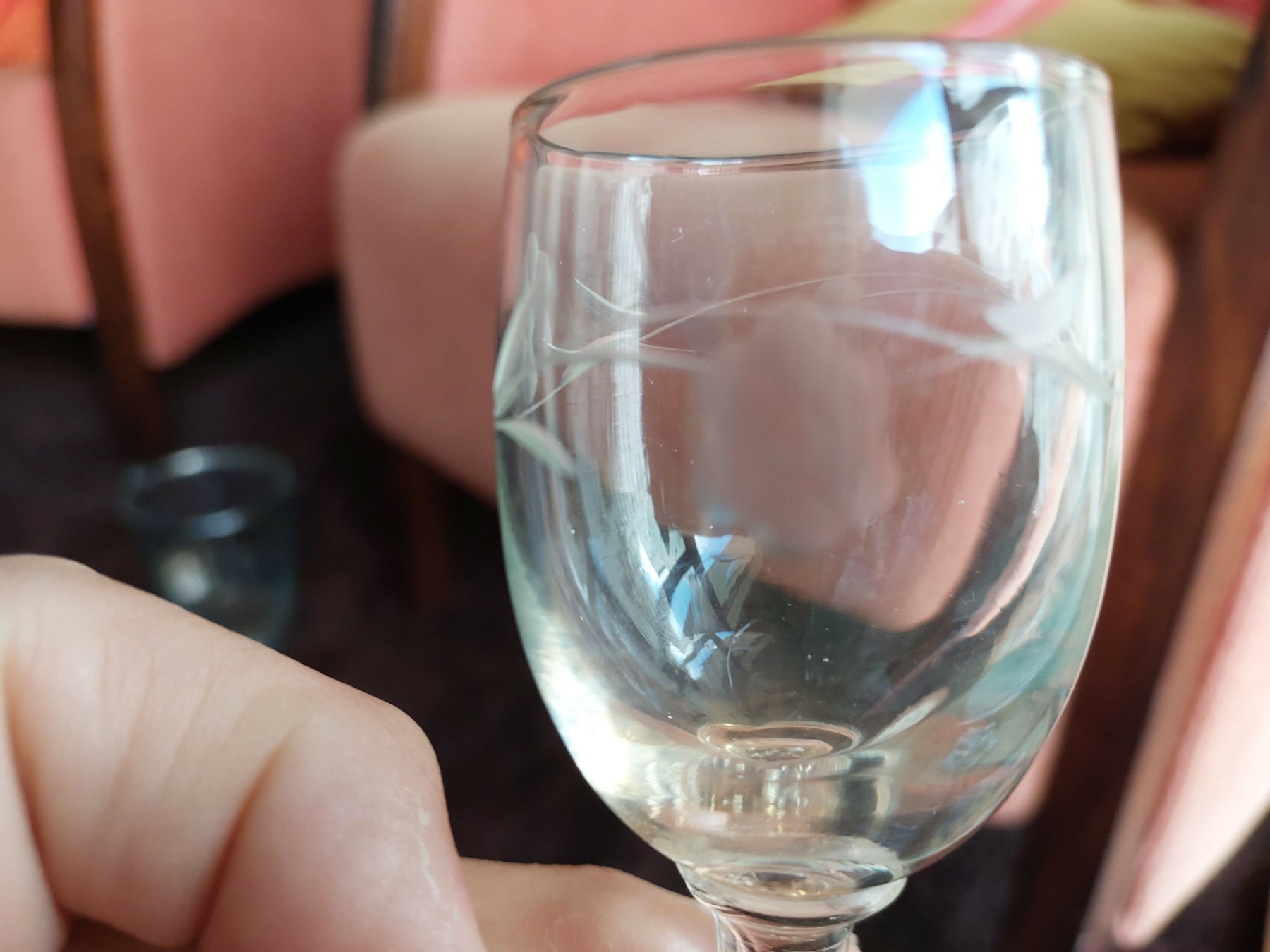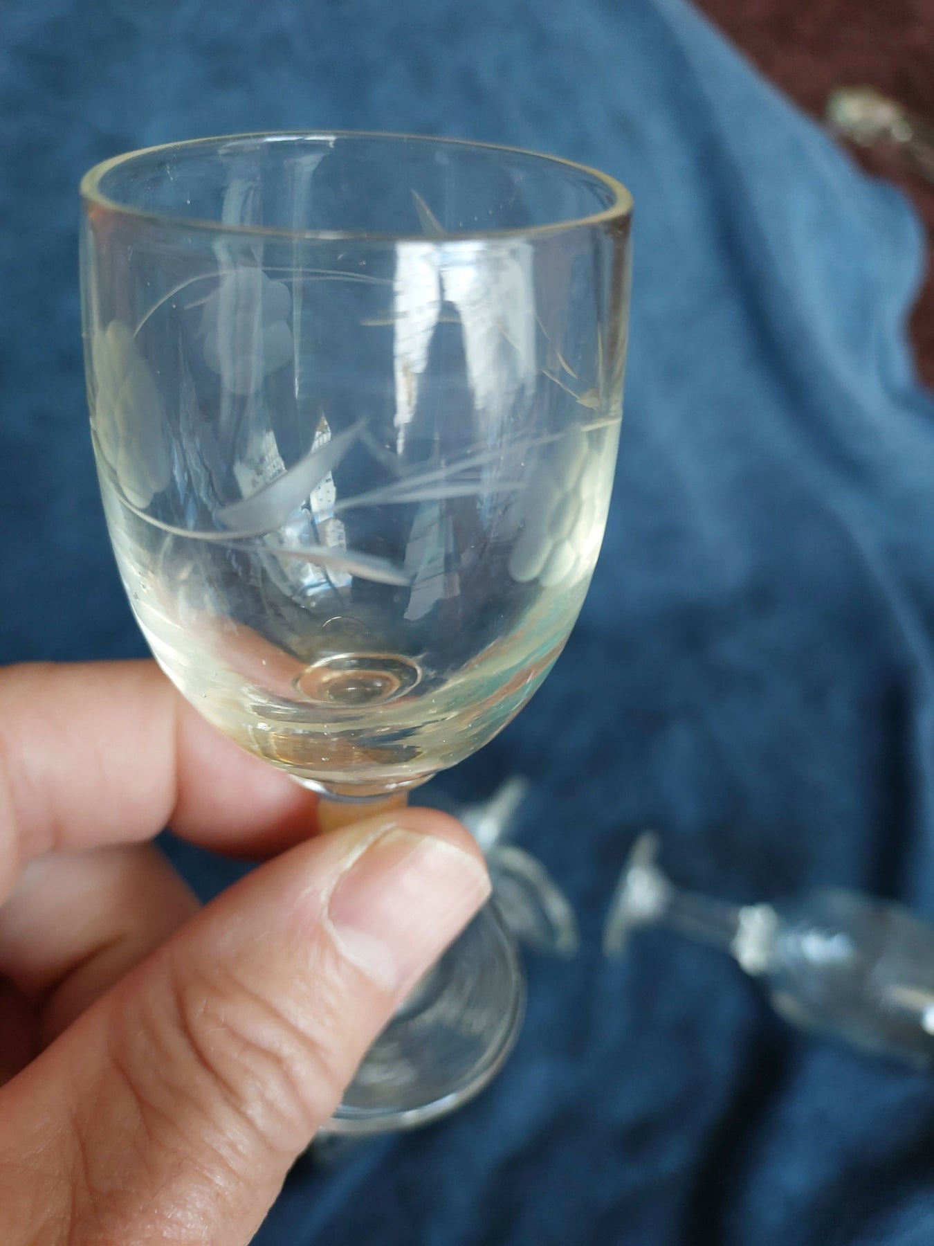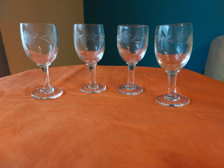 Conjunto formado por quatro taças de licor em formato clássico com delicada lapidação em padrões florais e folhagens. Peças dos anos 60, produzidas em vidro.