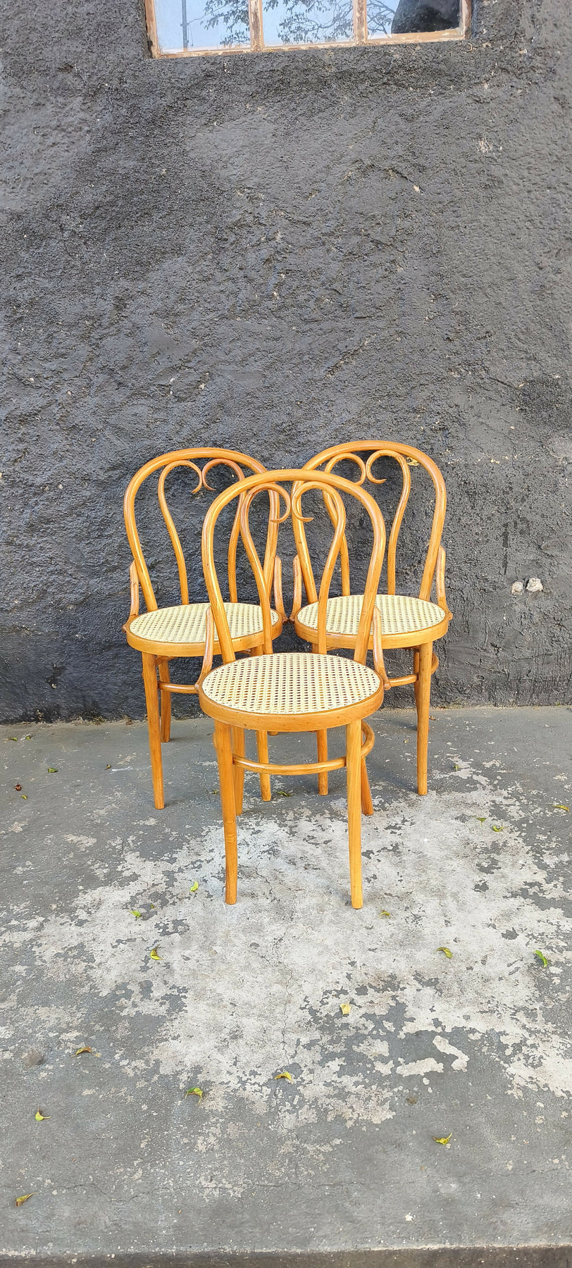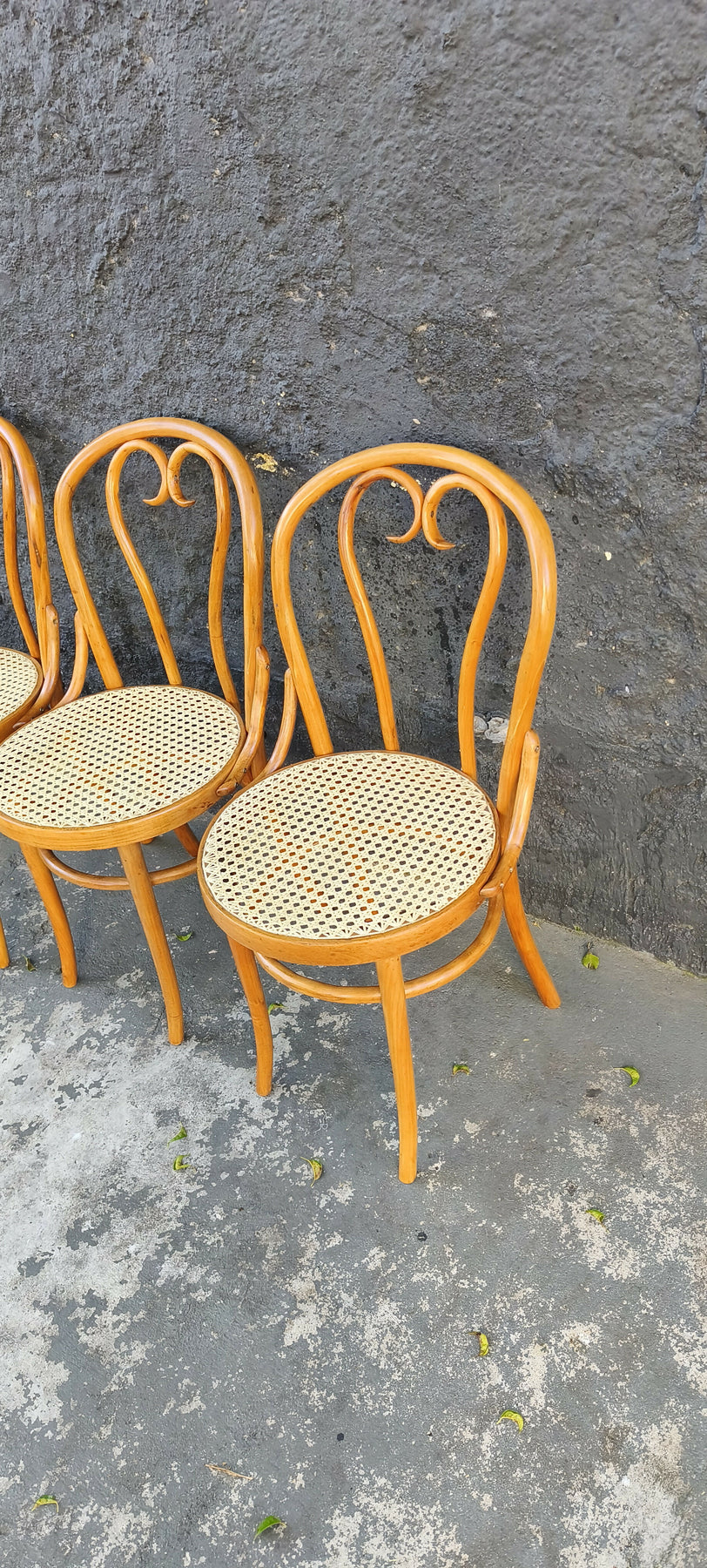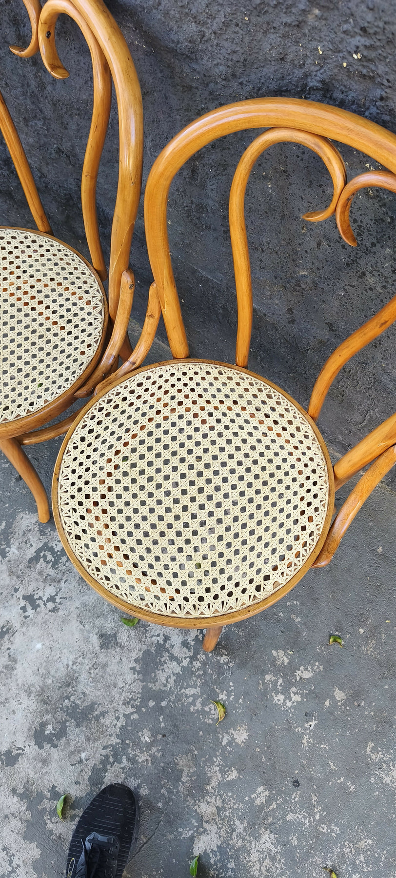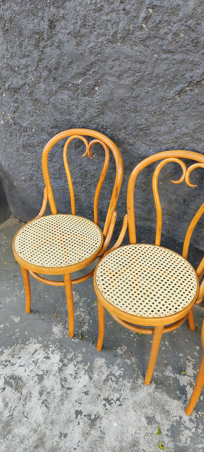 Cadeiras Thonart, recém restauradas na cor natural da madeira e empalhadas manualmente com material fosco claro de algodão, medindo 88 de altura, 44 de largura e 52 de profundidade - R$ 1.900,00 CADA.