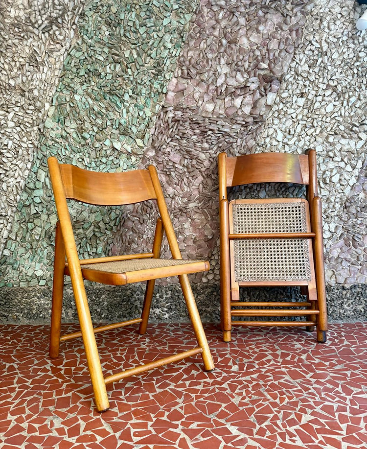 Lindo trio de cadeiras dobráveis projetadas nos anos 60 pela Companhia  de móveis Aldo Cini.