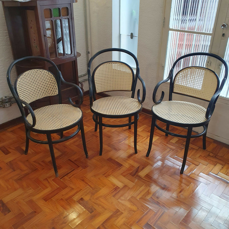 Trio de cadeiras modelo Thonet com braços. (Thonart Seladas)