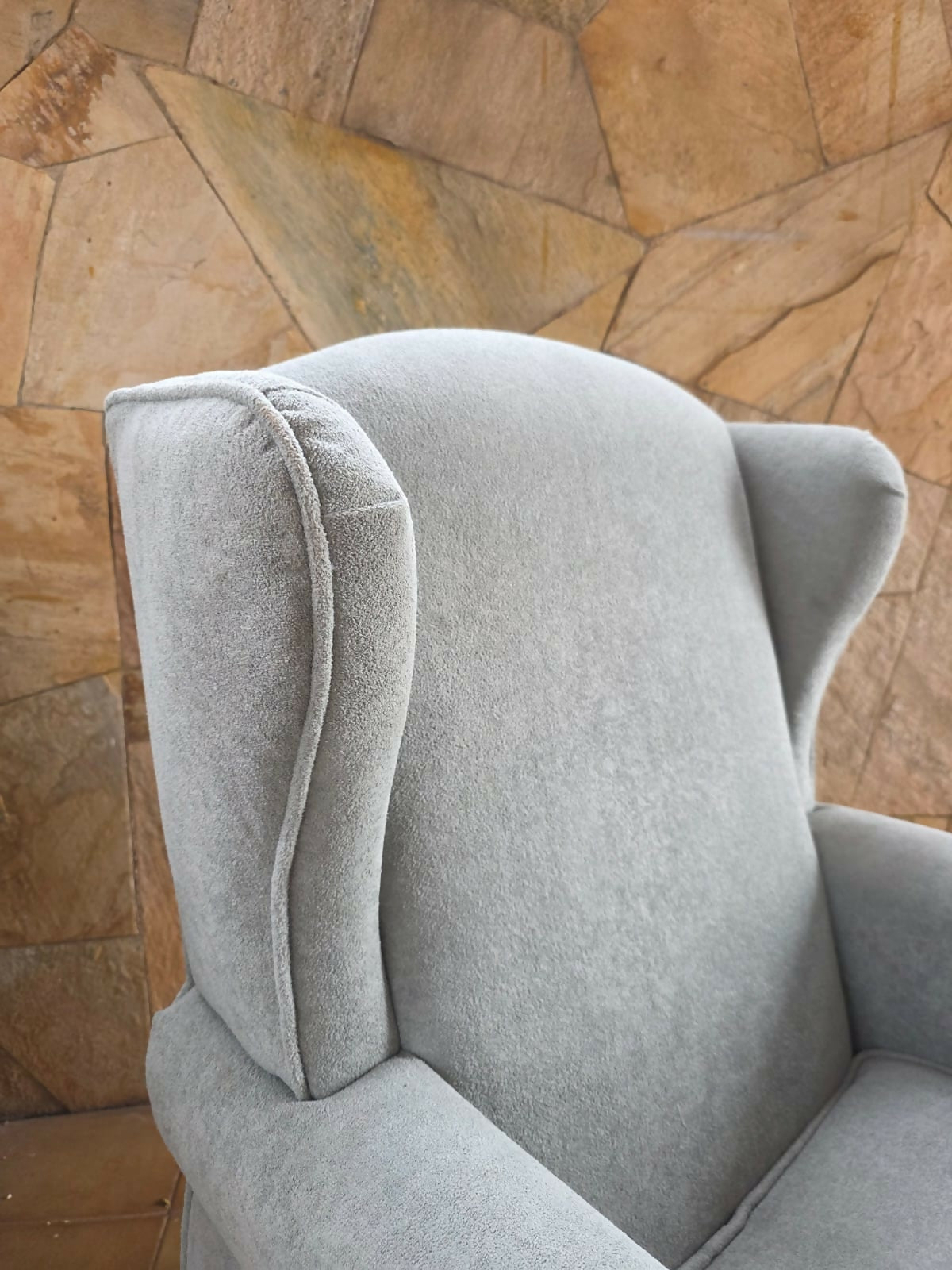 Clássica poltrona Bergere, estilo inglesa, com tapeçaria em Bouclê.