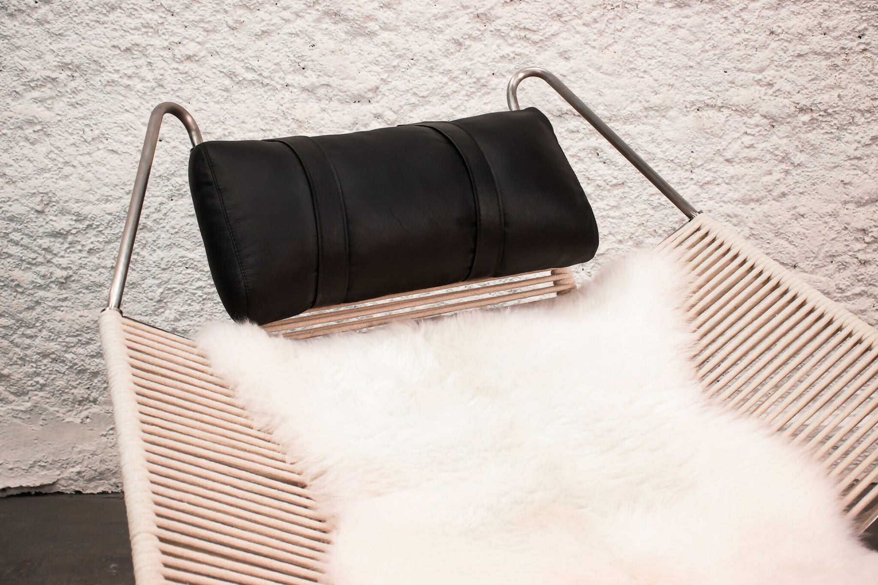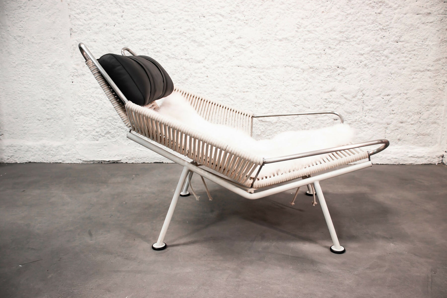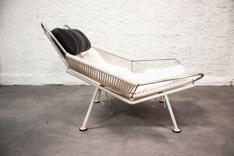 Hans J. Wegner - A poltrona Flag, desenhada por Hans, para a PP Mobler é sem dúvida uma das peças mais desejadas do design mundial. com a estruturada em aço, esta poltrona foi totalmente tecida entre encosto e assento com 240m de linho natural para proporcionar conforto, resultando assim num trabalhado espetacular. O encosto de cabeça em couro e a manta em pele de carneiro é um adicional para deixar a peça ainda mais charmosa. No entanto, a história por trás do projeto é mais do que apenas um diálogo da história da arte.