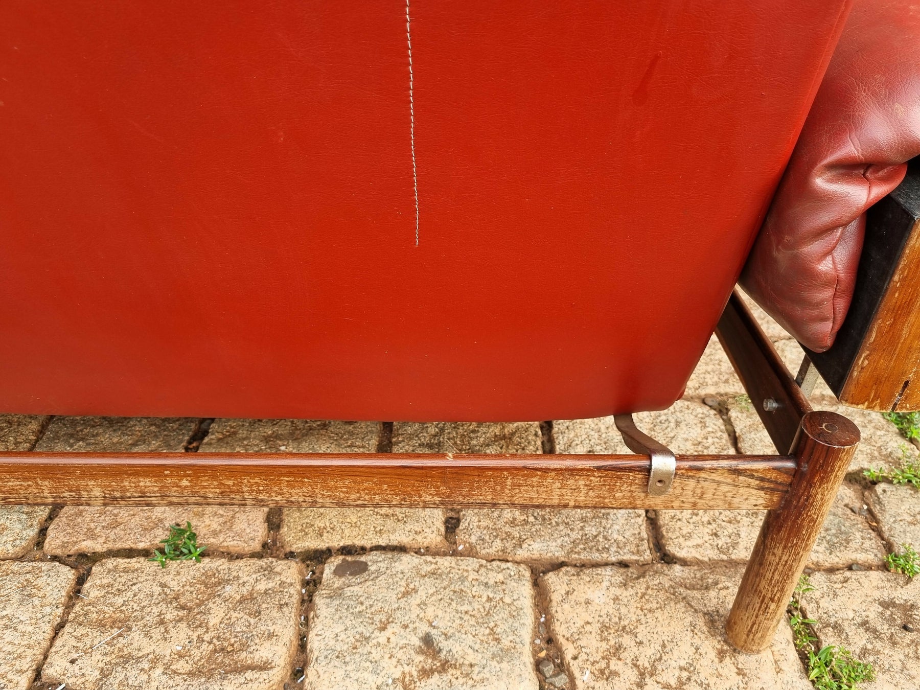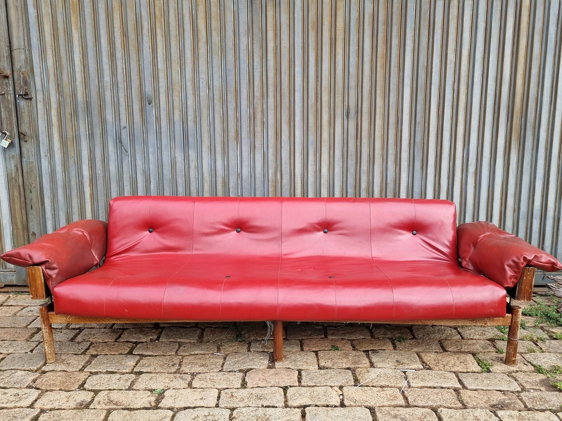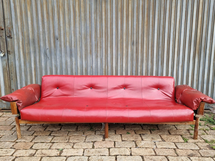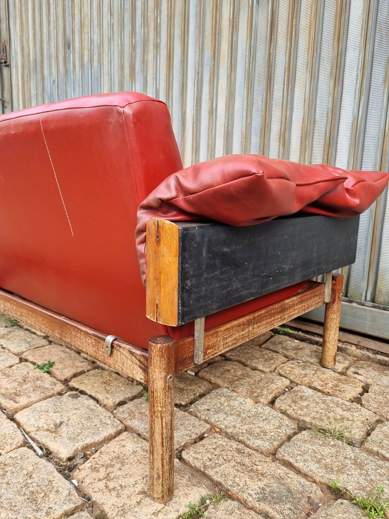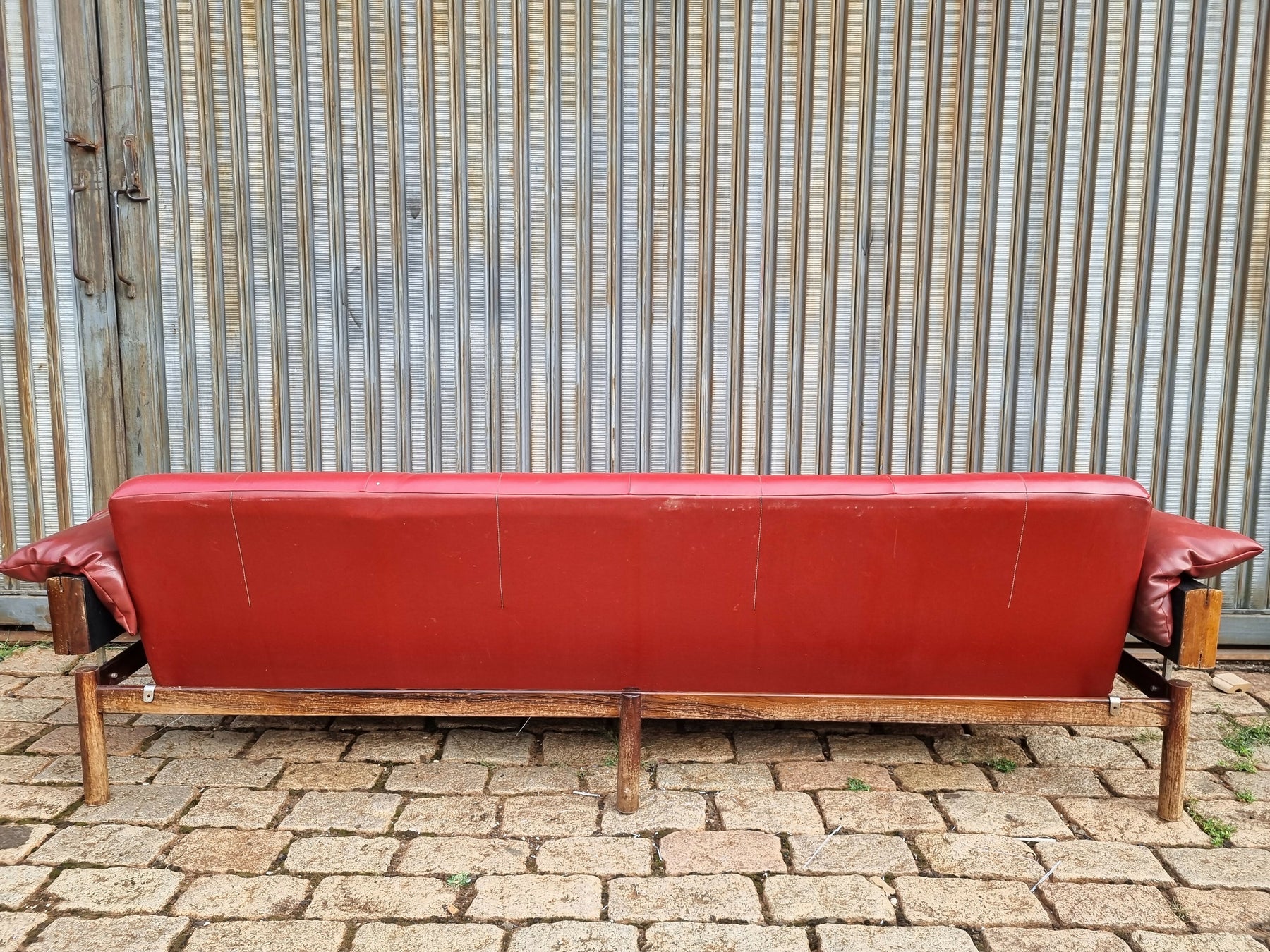 Percival Lafer – Sofá MP-13, quatro lugares com estrutura de jacarandá maciço, tapeçaria em courvin original de época, nunca restaurado. Disponível para venda!