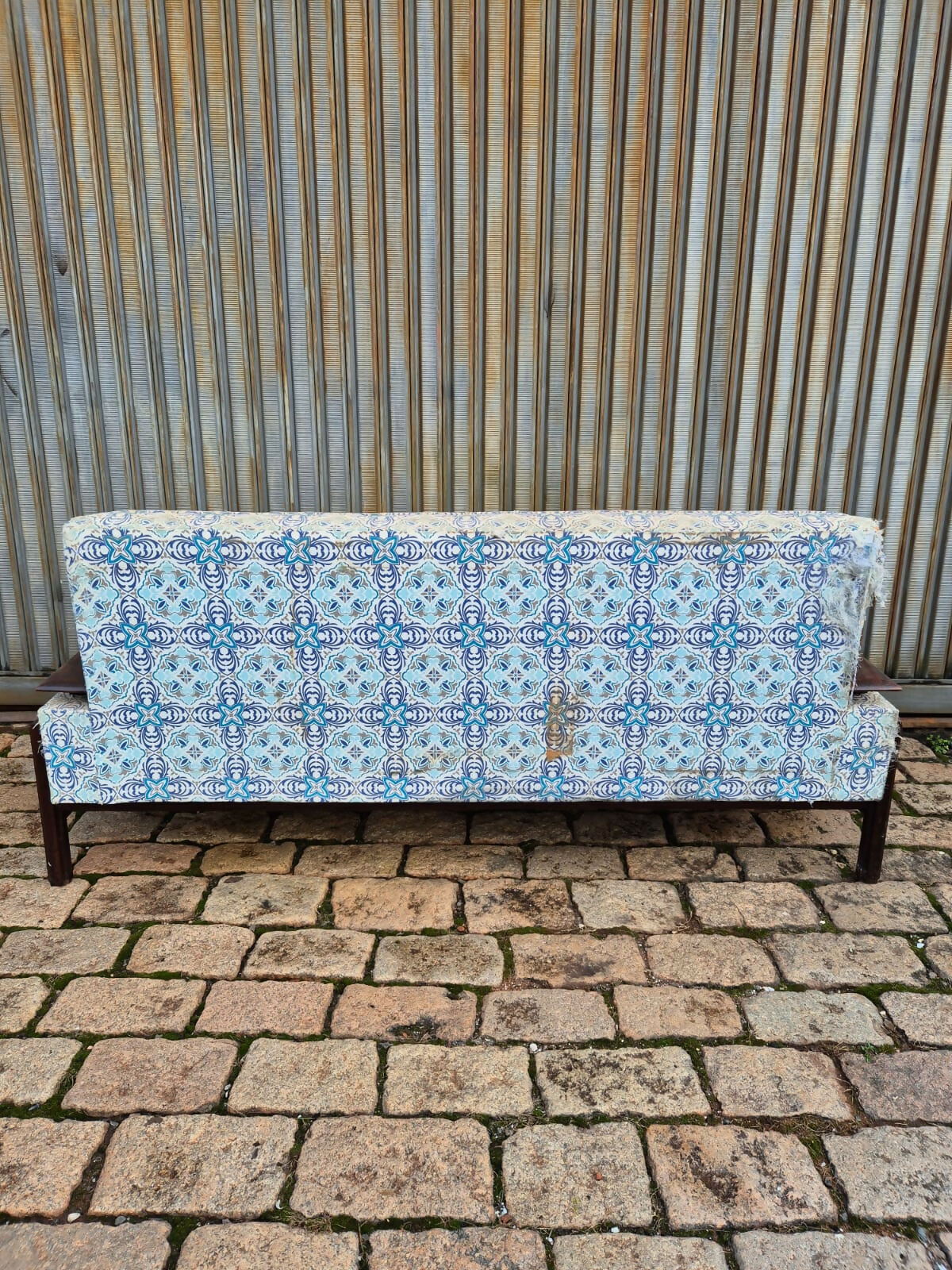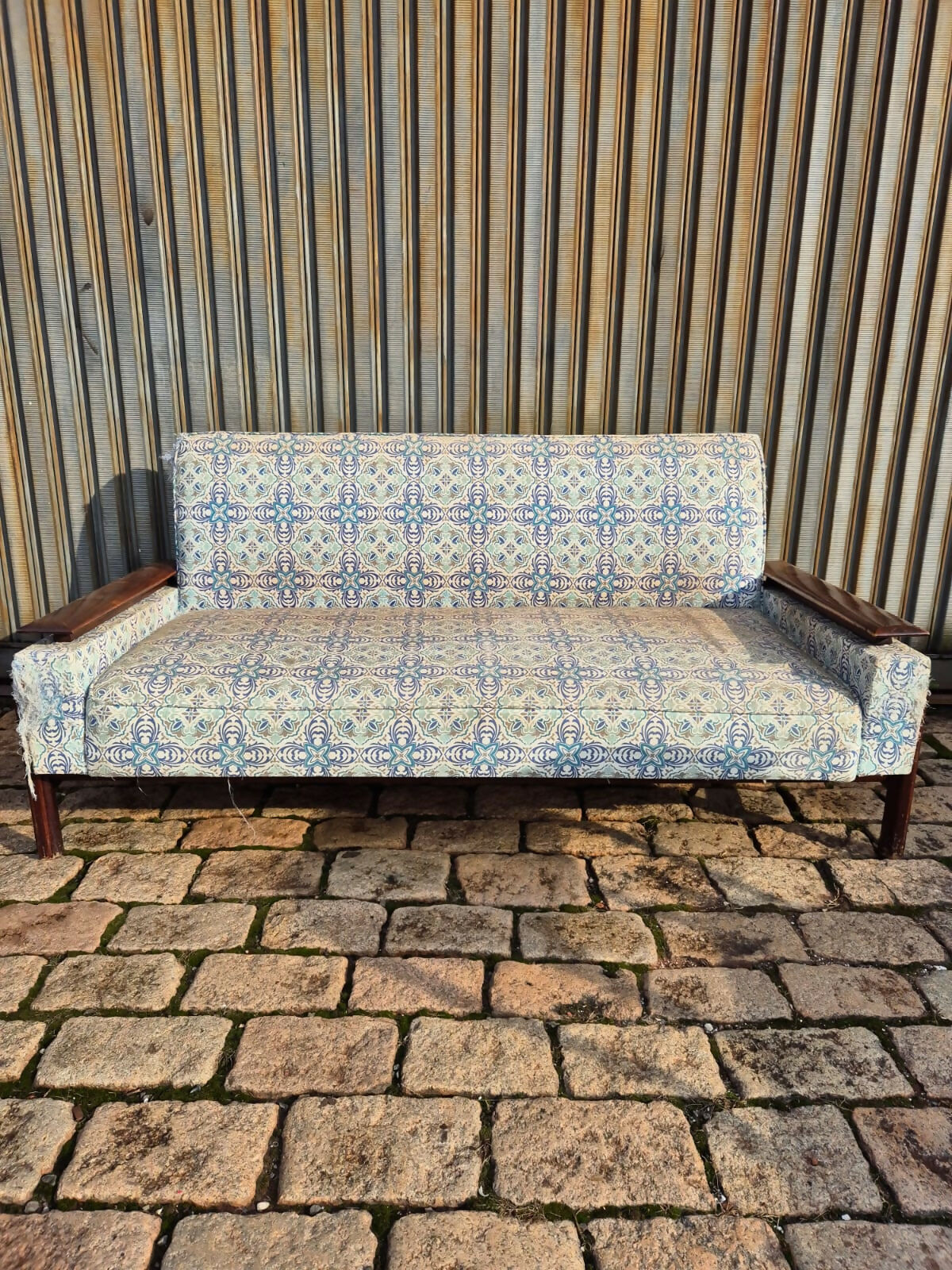 Sofá vintage anos 60, estrutura em madeira nobre e tecido para restauração.