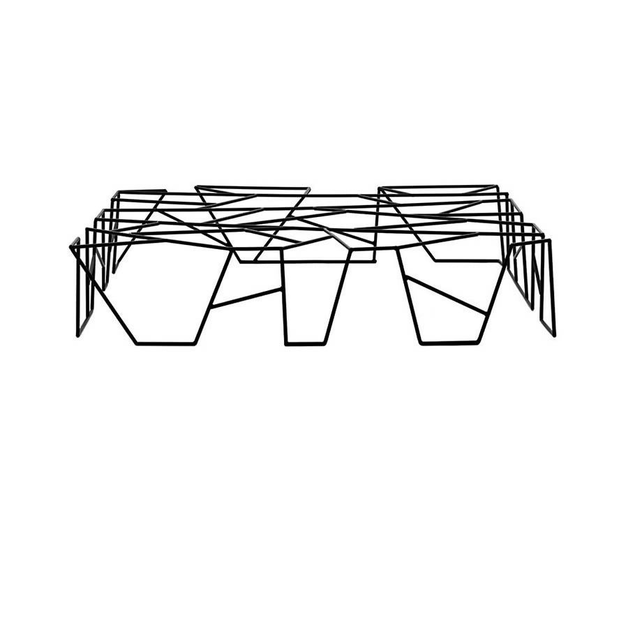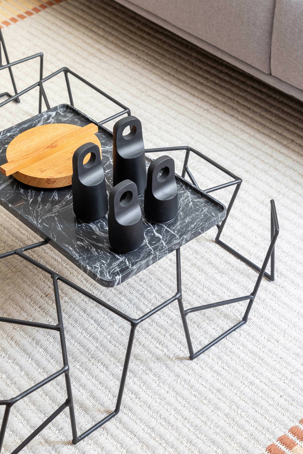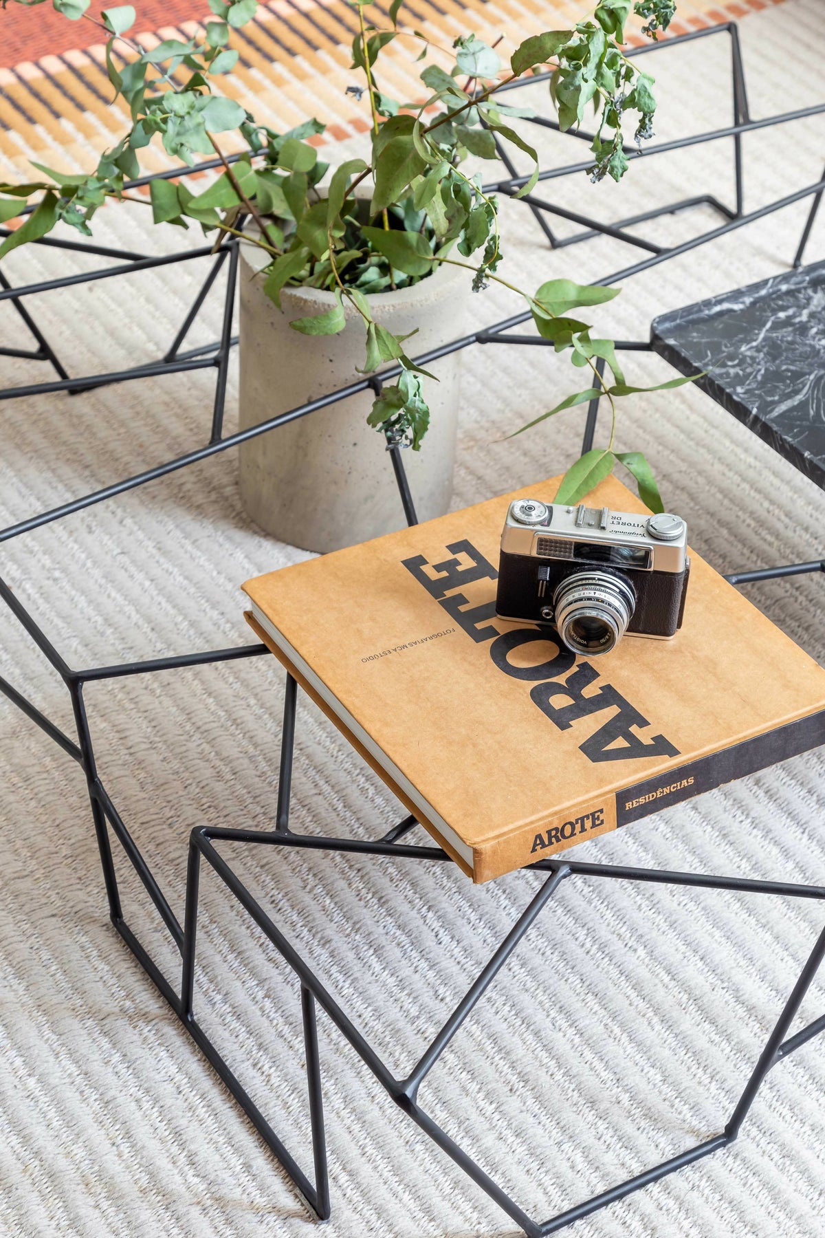 Design cheio de personalidade em uma peça que vai transformar sua sala em um cômodo digno de fashionista. A mesa é feita em aço carbono com pintura eletrostática preta e assinatura de Marcus Ferreira.