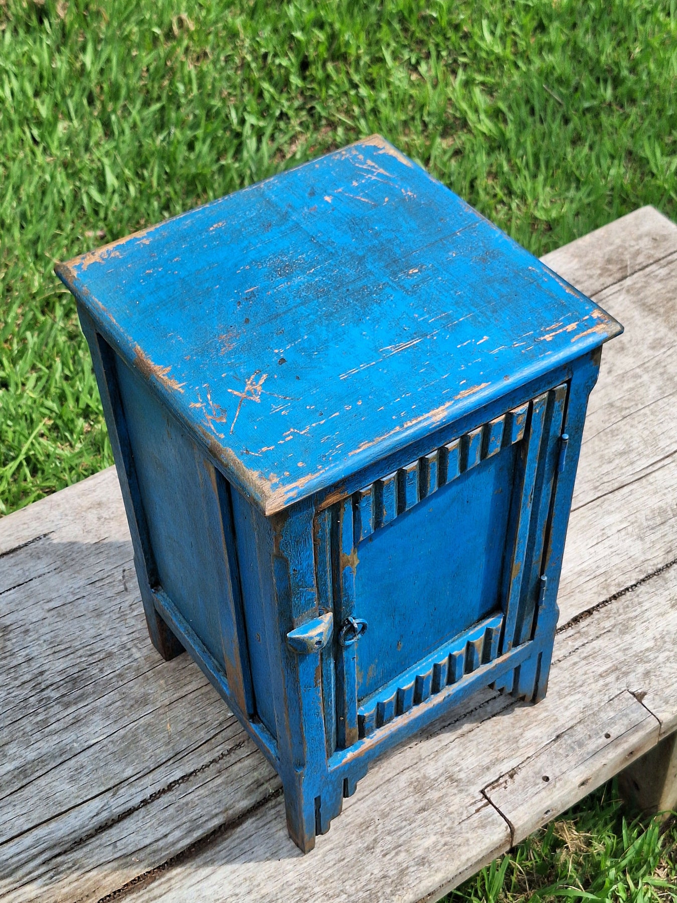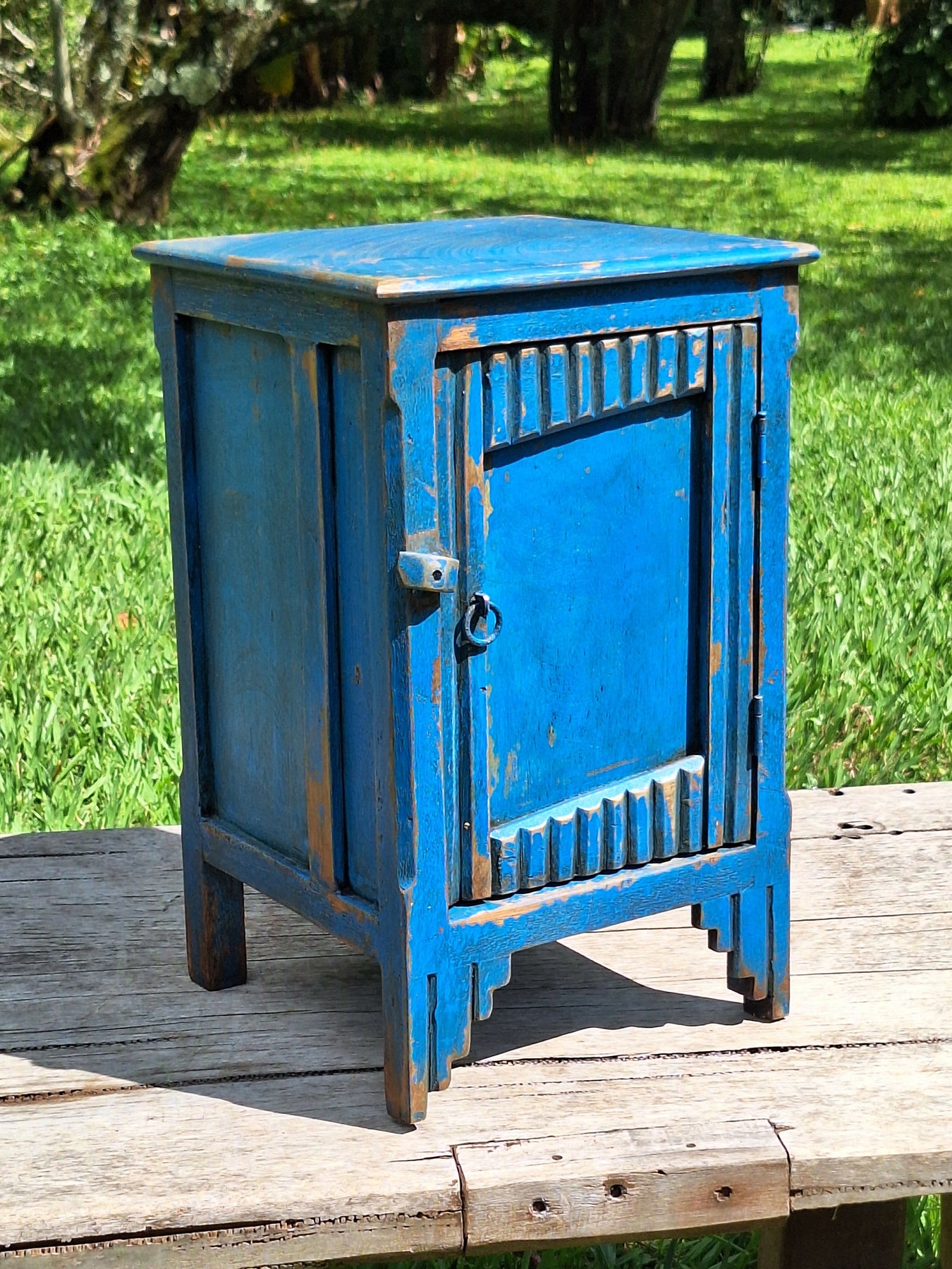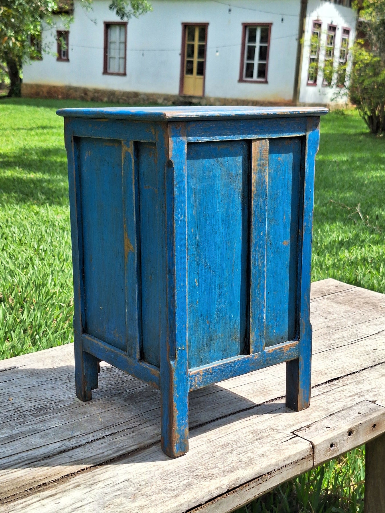 Mesinha de Cabeceira / Armarinho Tinta Gasta Madeira Maciça Garimpo Mineiro