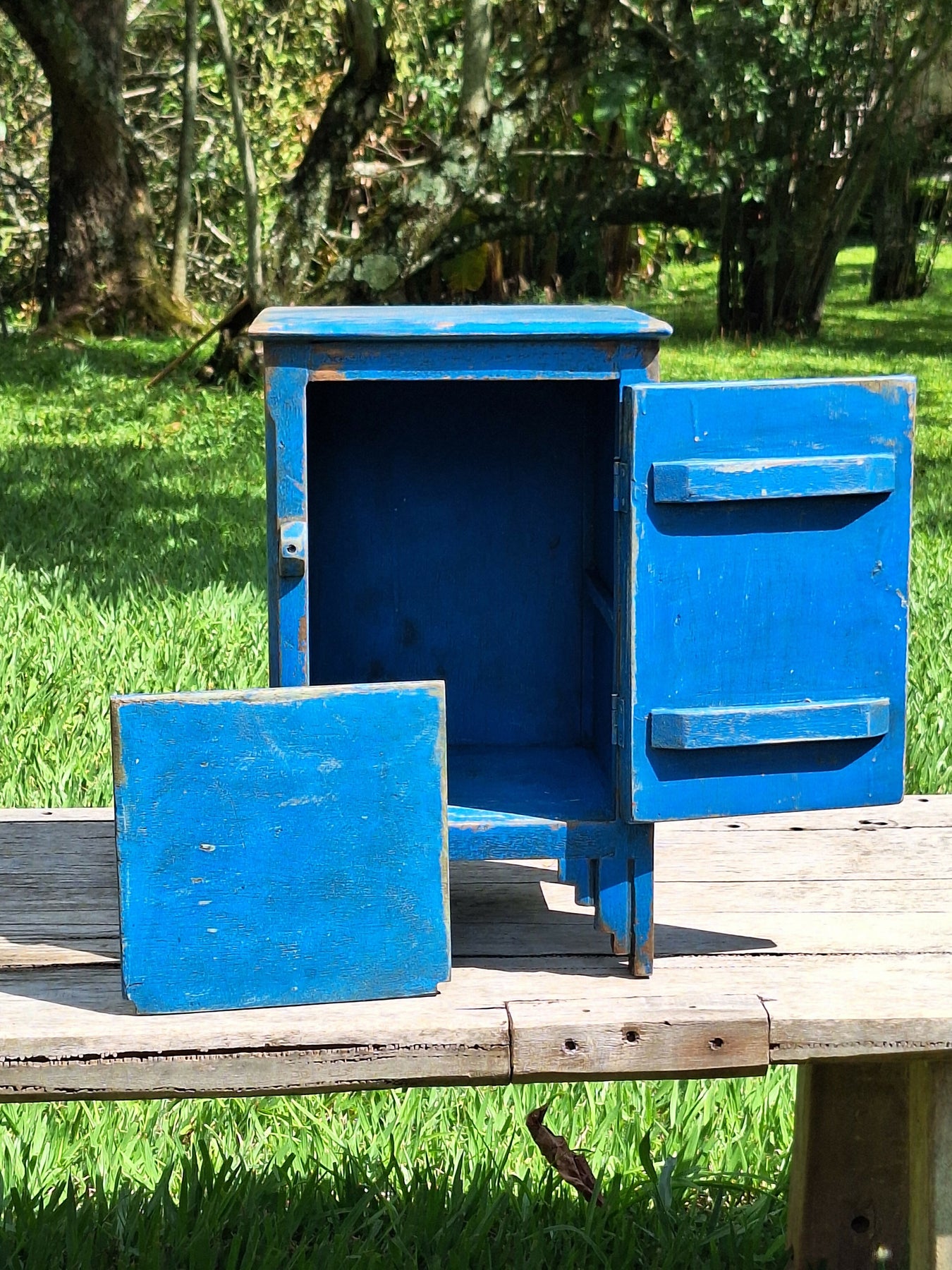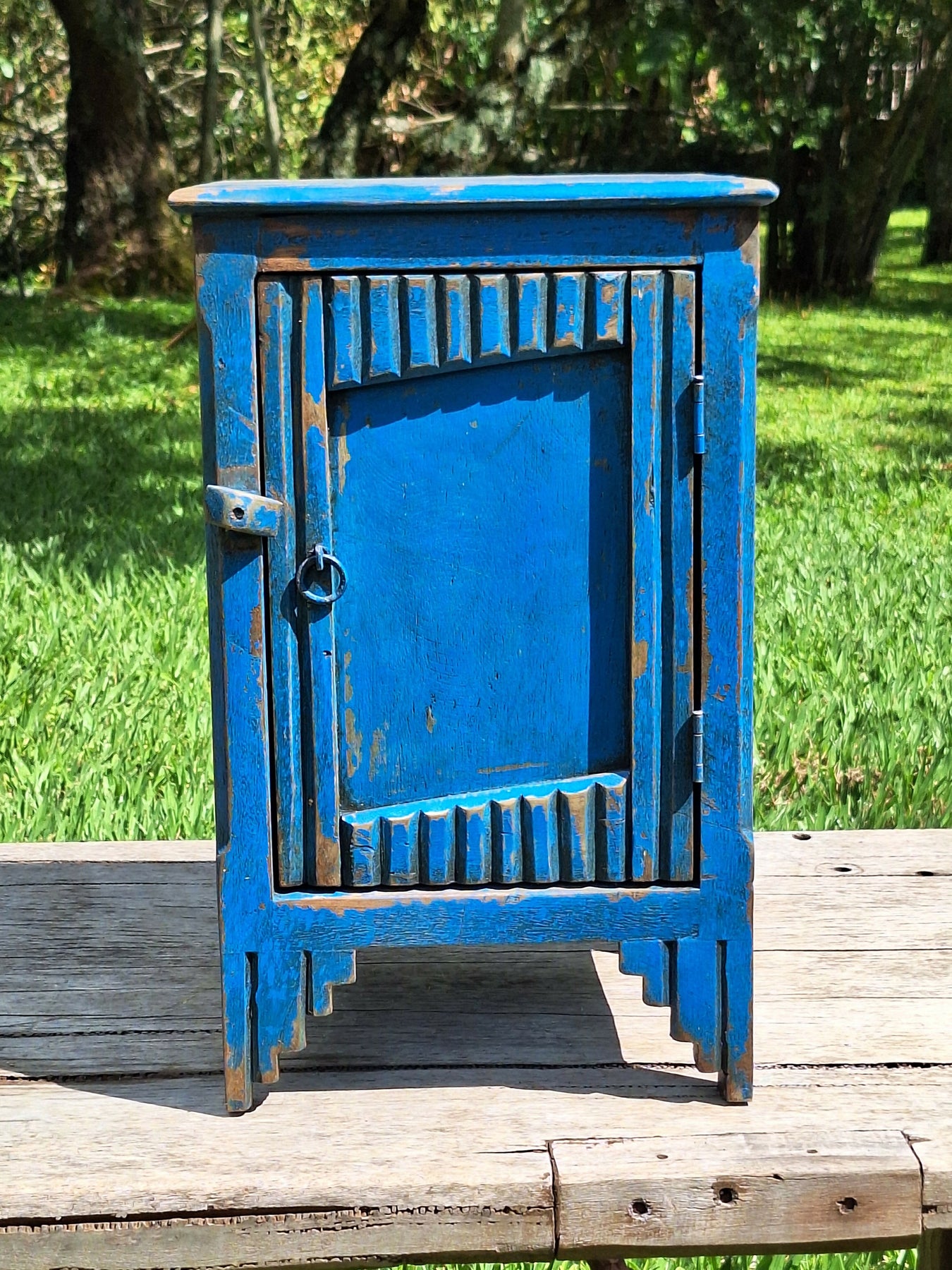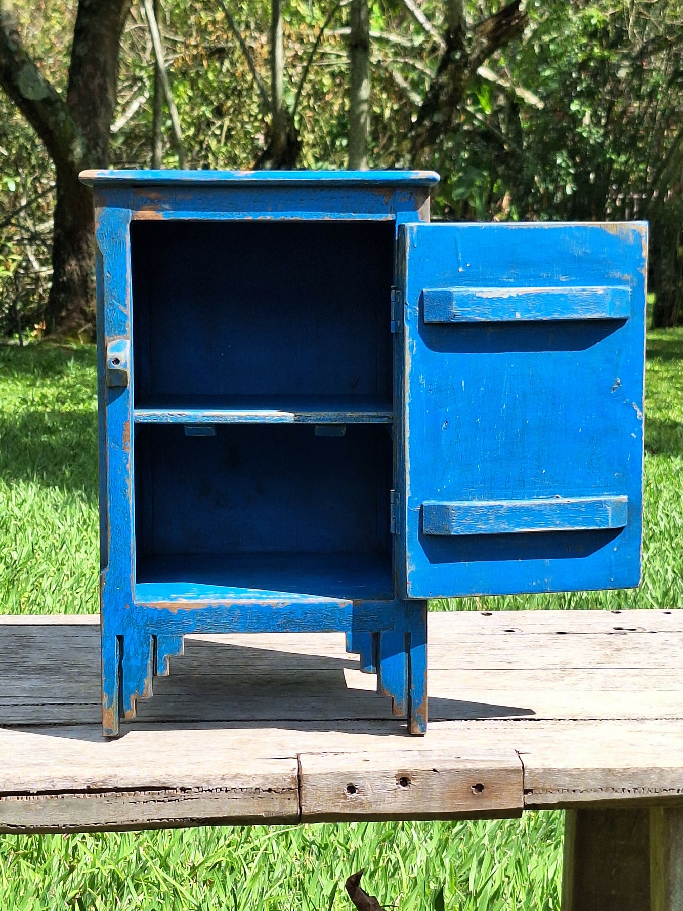 Mesinha de Cabeceira / Armarinho Tinta Gasta Madeira Maciça Garimpo Mineiro
