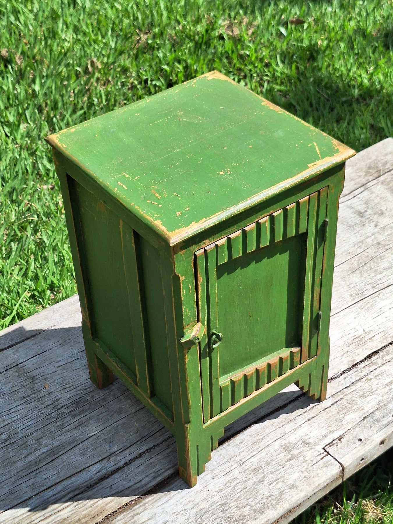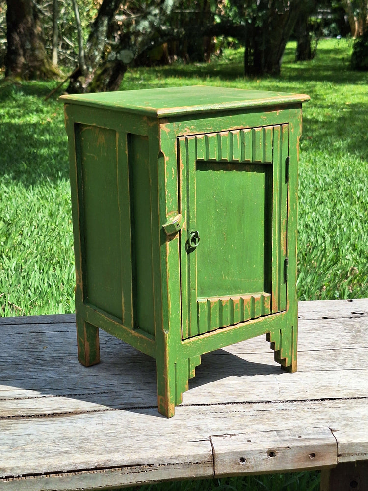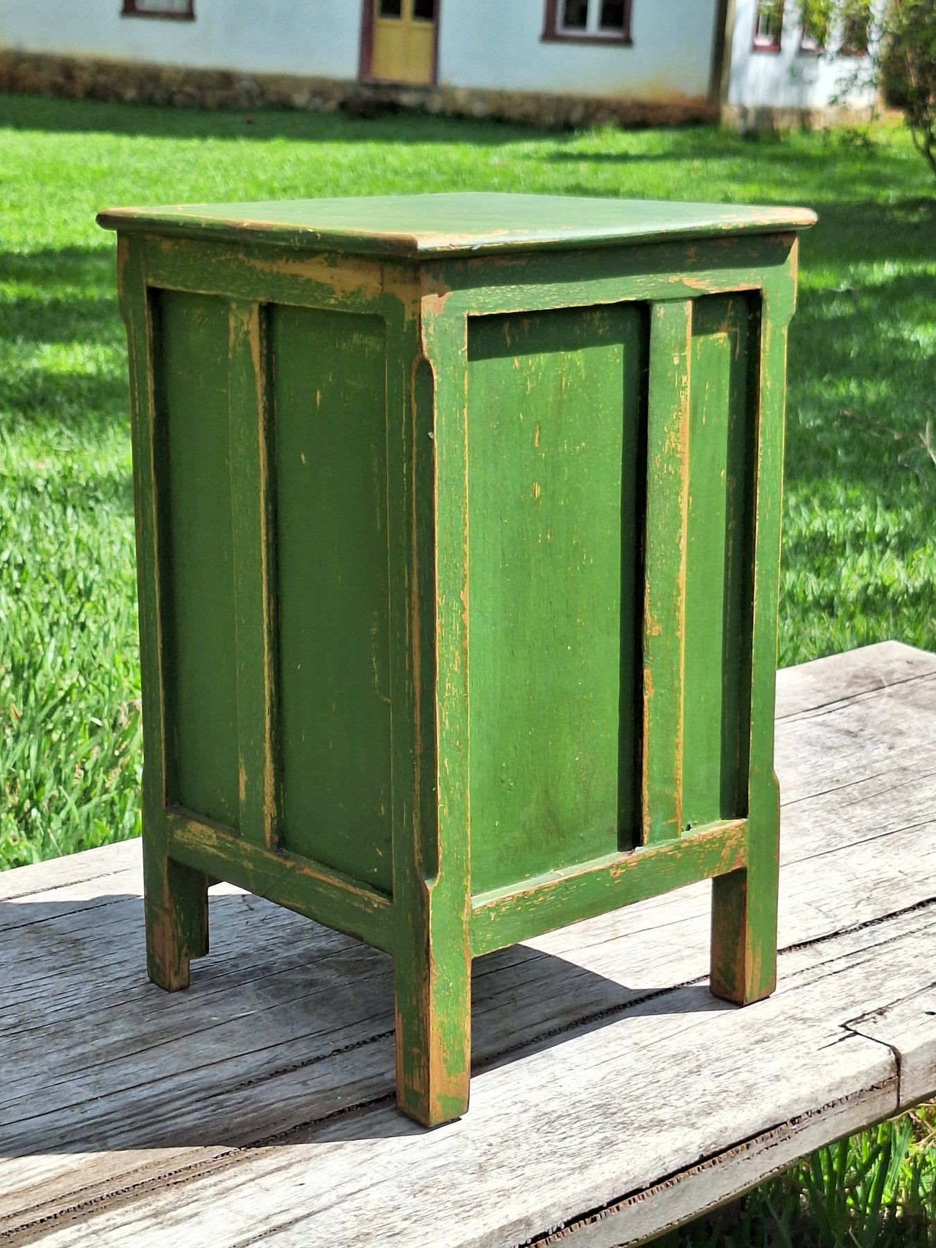 Mesinha de Cabeceira / Armarinho Tinta Gasta Verde Madeira Maciça Garimpo Mineiro