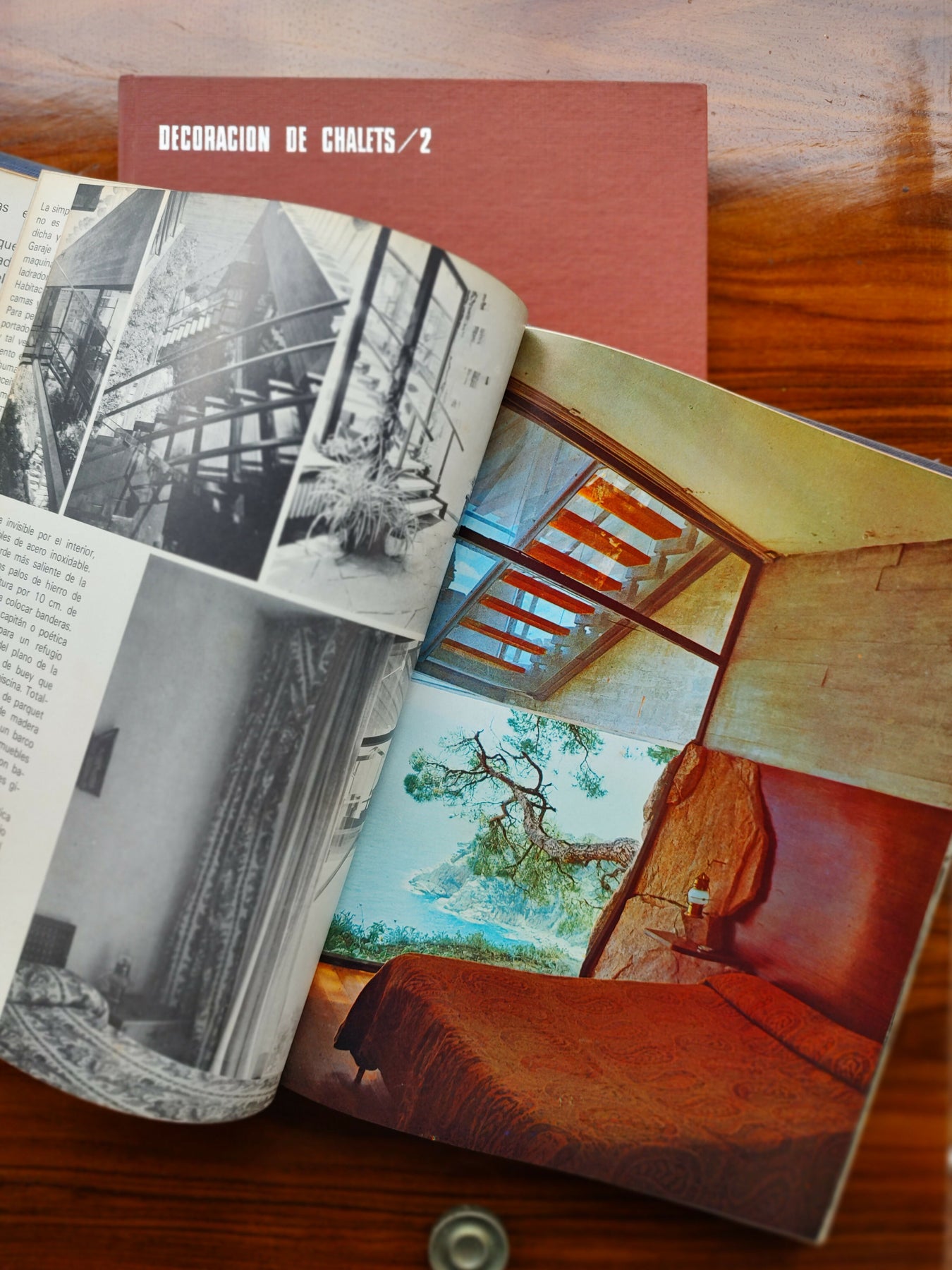 ✨📖 Os livro "Decoracion de Chalets" lançados em 1974 por F. Asensio Cerver apresenta diversas Casas de Campo da época oferecendo ideias e conselhos para o design de interiores. O foco da obra é de transformar esses espaços em lares acolhedores e esteticamente agradáveis, explorando a integração com a natureza e o uso de materiais naturais, como madeira e pedra, que são característicos desse tipo de construção.  150 páginas cada livro.