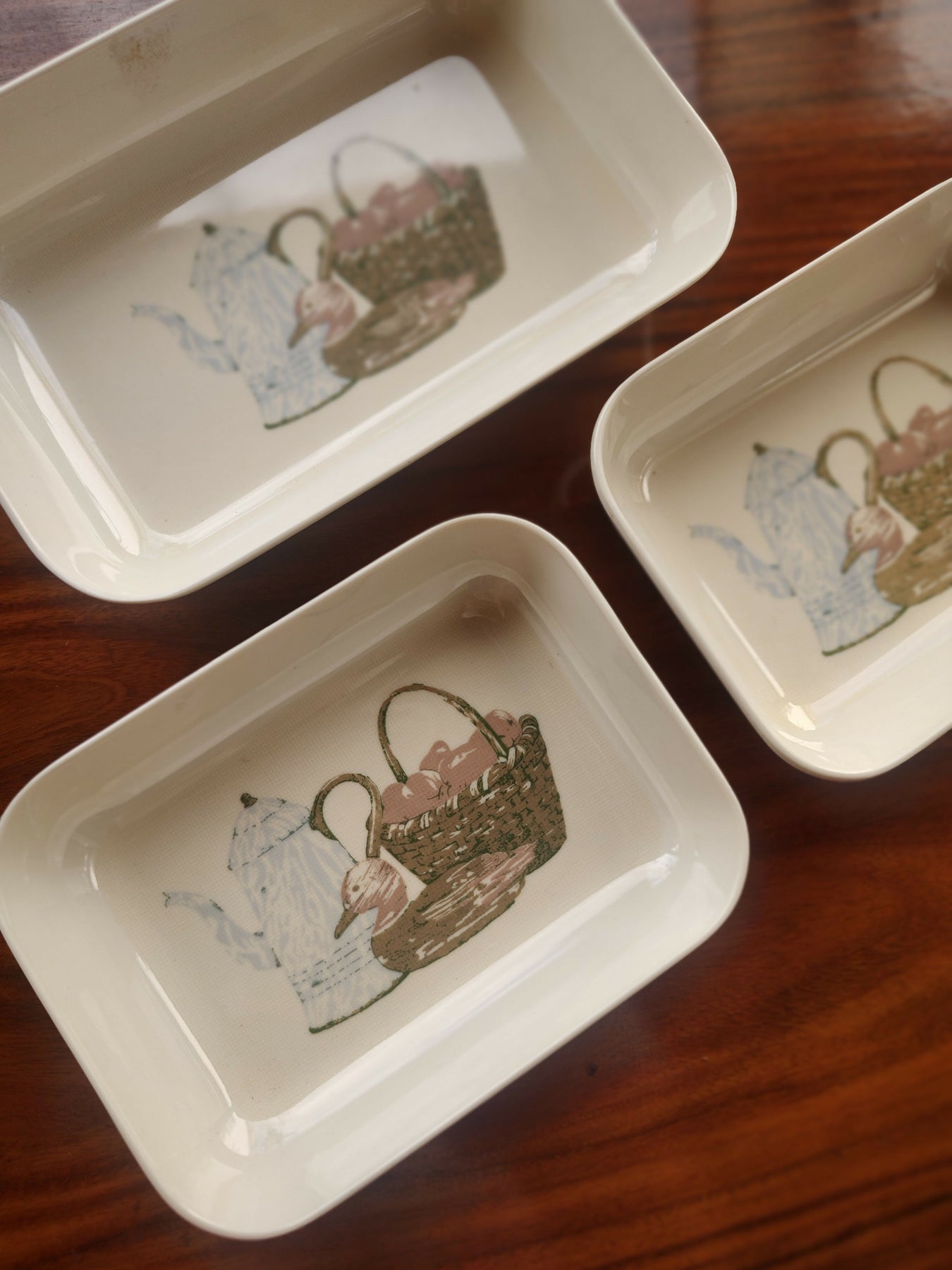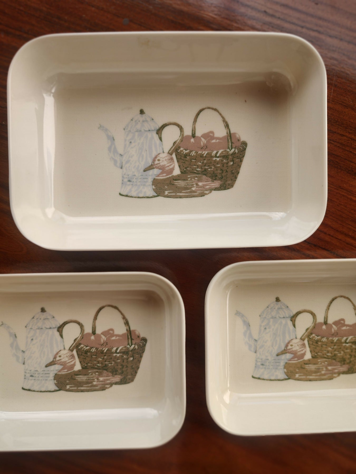 Raro Trio de pratinhos retangulares Goyana estampados