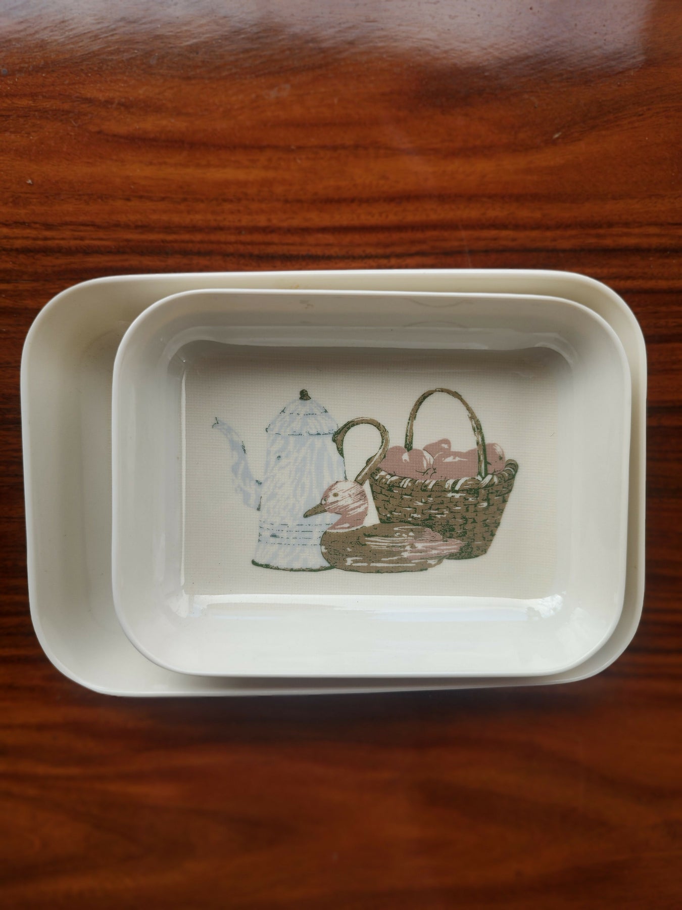 🔎 pratinhos íntegros, sem lascados, em ótimo estado de conservação, praticamente novos! somente  discretas manchinhas do tempo. Possuem etiquetas antigas embaixo da loja que foram compradas 🤎