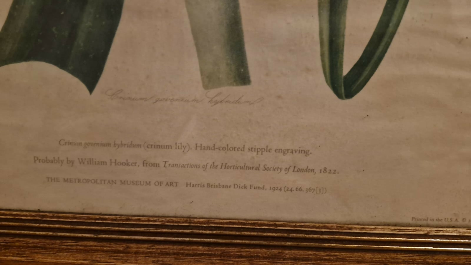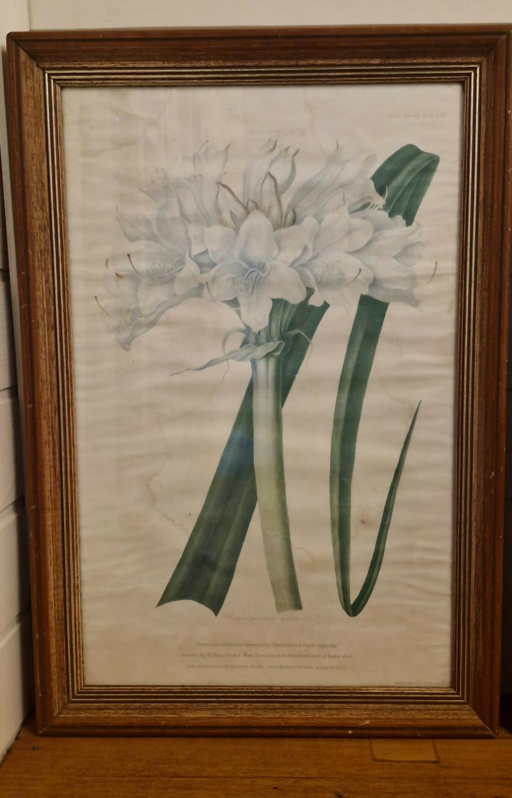 Lindos quadros com moldura de madeira maciça e vidro. Gravuras representando flores - lírios e amarílis. Com marcas do tempo.