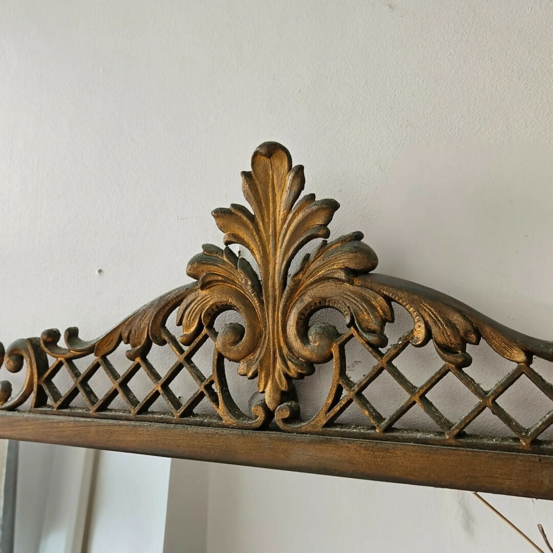 Faz parte do conjunto um espelho com arabescos típicos do estilo.
