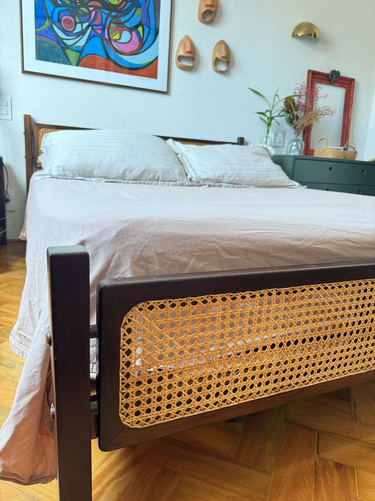 Cama Casal - Celina - Jacarandá com Palhinha natural
