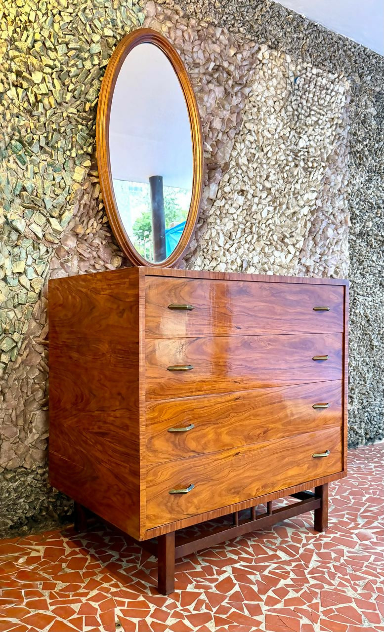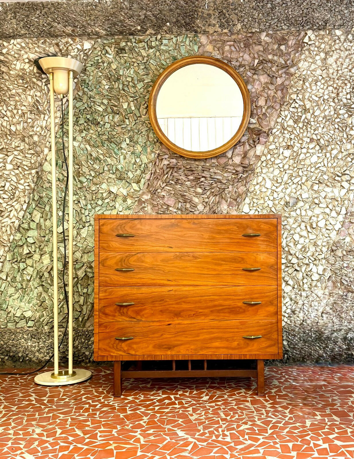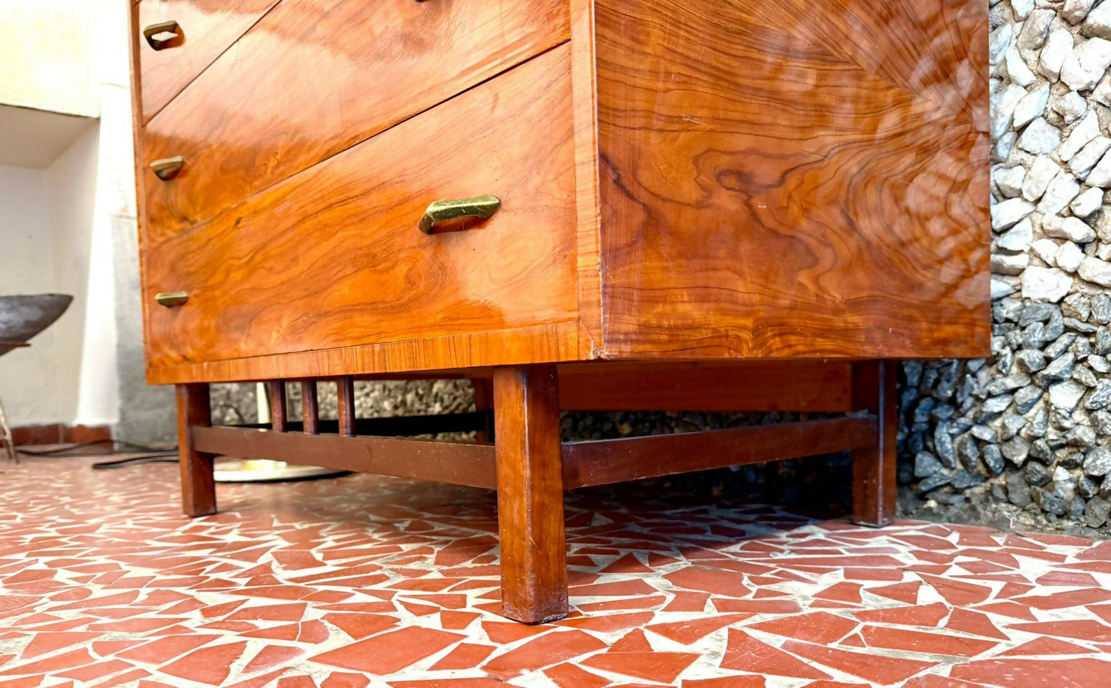 Linda cômoda em caviúna com pés em madeira maciça e detalhes de puxadores em latão.