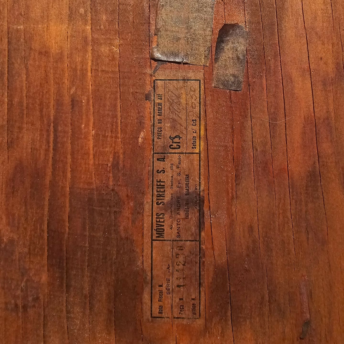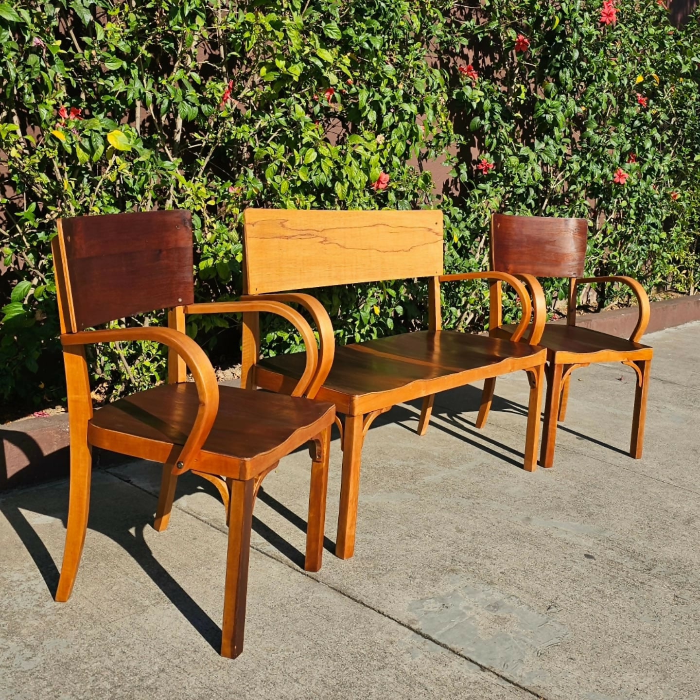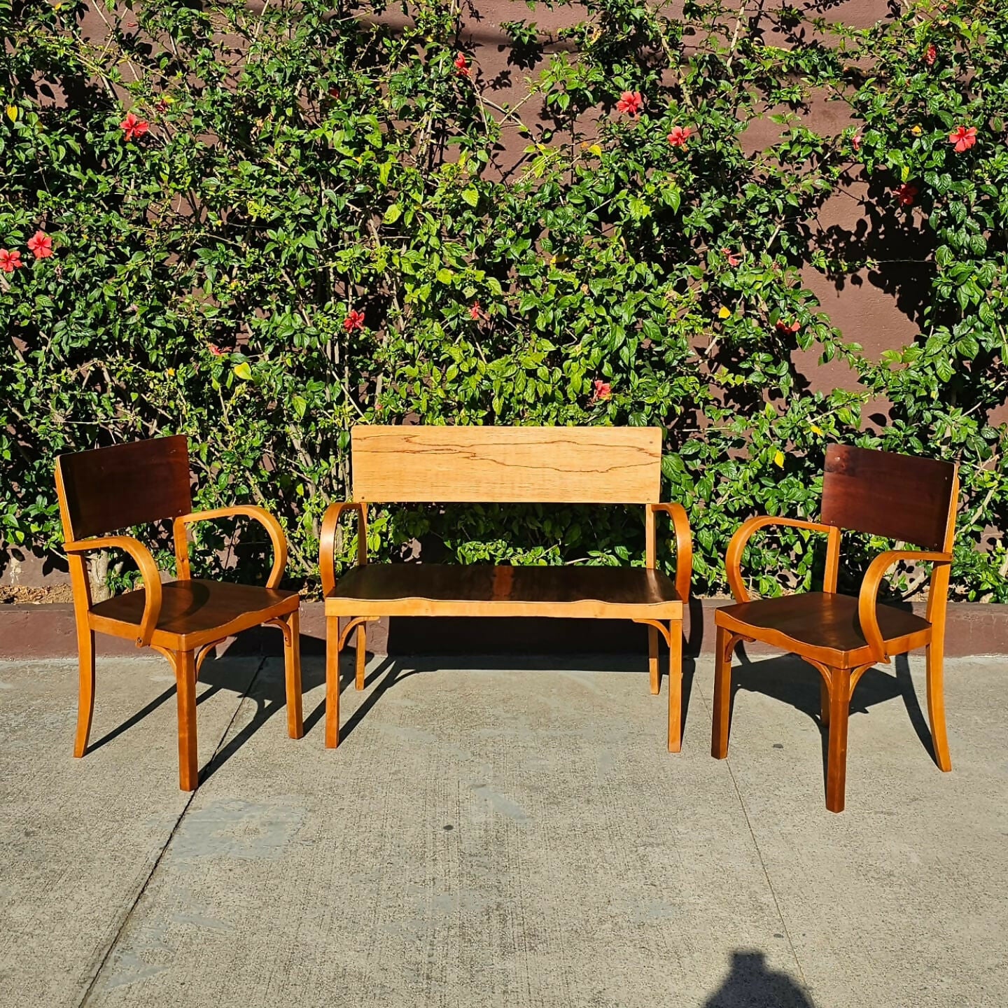 Namoradeira e duas cadeiras, em imbuia, década de 50, móveis Streif