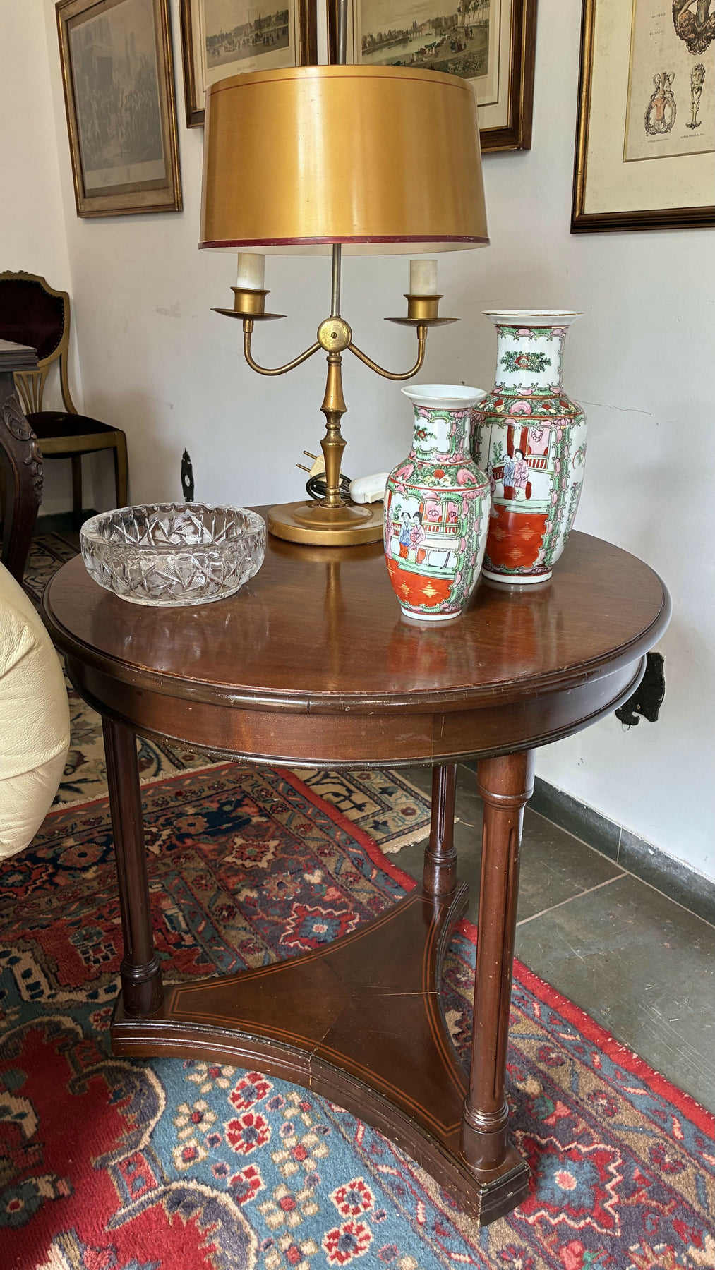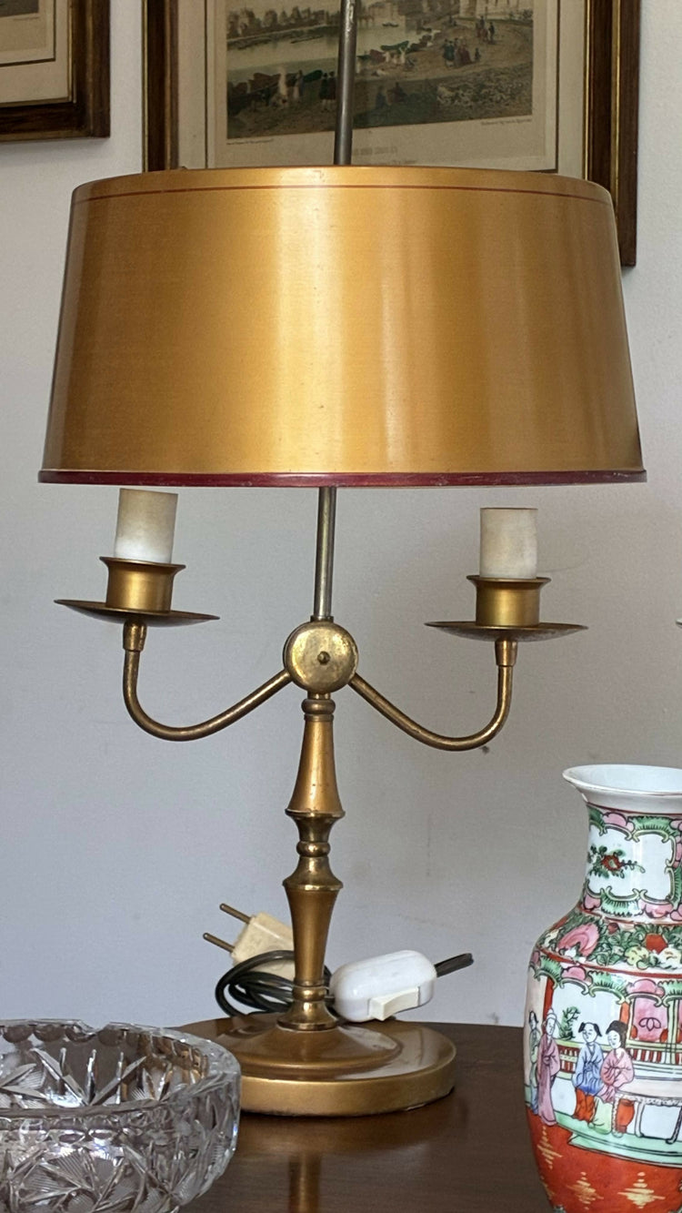 Elegante abajur estilo Bouillotte, confeccionado em metal dourado. A cúpula cilíndrica metálica em tom dourado completa o conjunto com sobriedade e charme clássico.