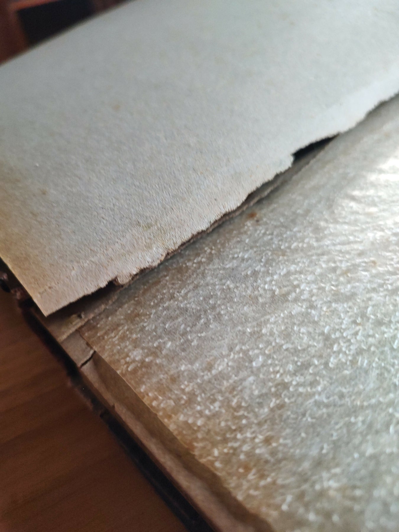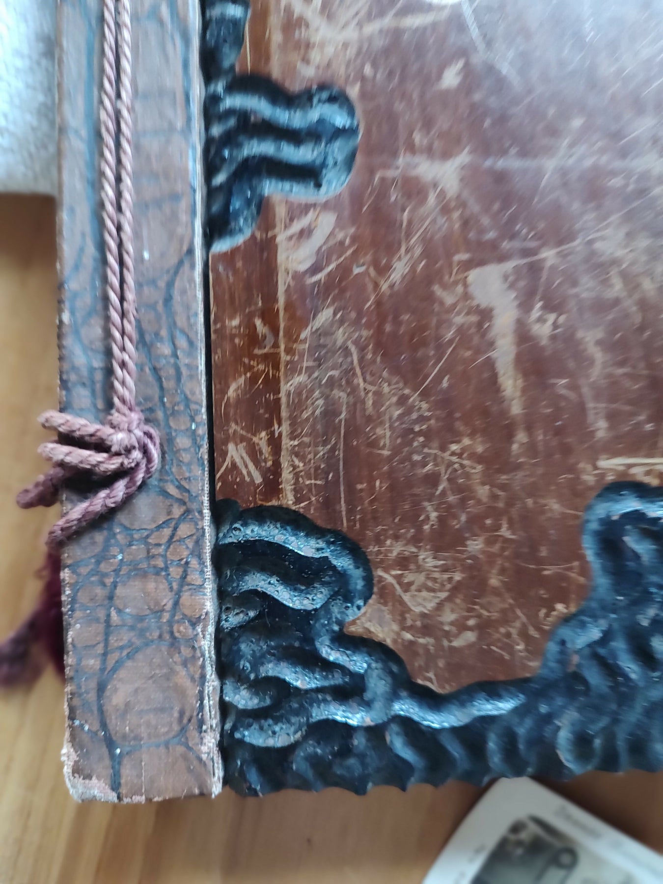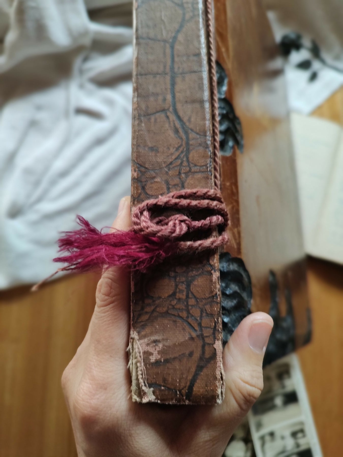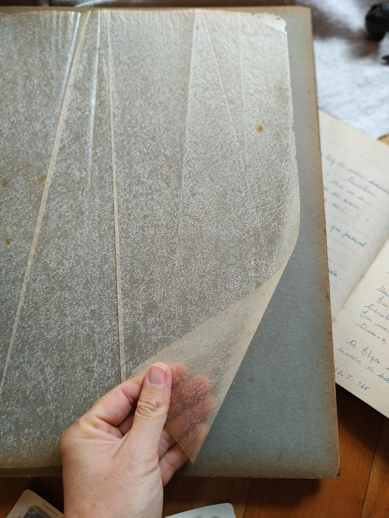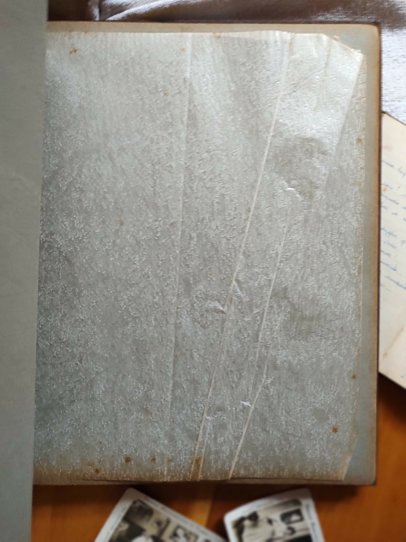 🔎 peça em bom estado de conservação, está funcional e perfeitamente desgastada, com sinceras marcas do tempo (a gente ama toda a história que cada marca carrega!). papel interno possui desgastes nas bordas e manchinhas do tempo e vincos nas dobras. já os papéis de seda estão quase todos íntegros, somente alguns com leves rasgos e dobras e um, no início, que foi rasgado por inteiro. barbante encontra-se desgastado porém íntegro.