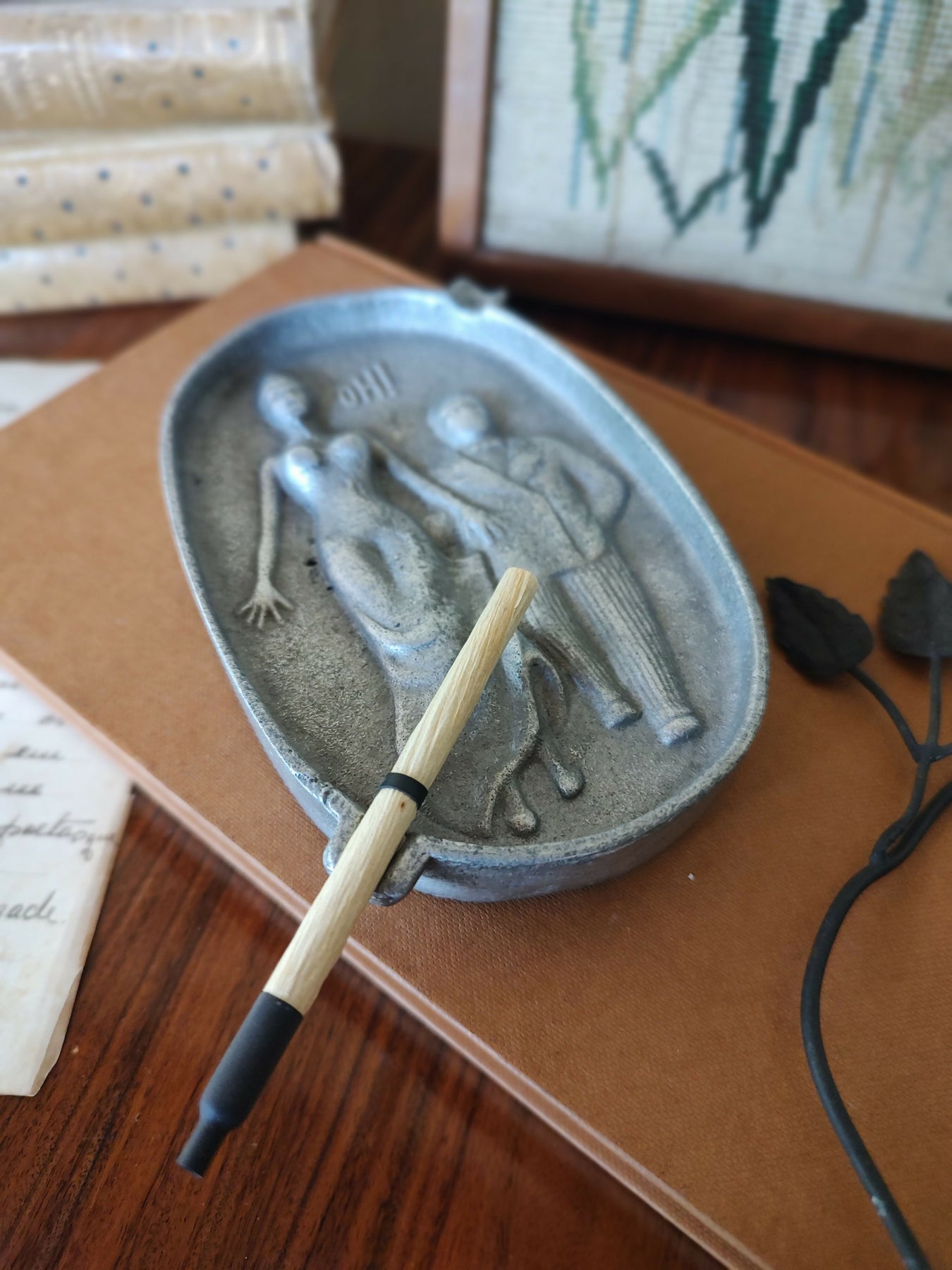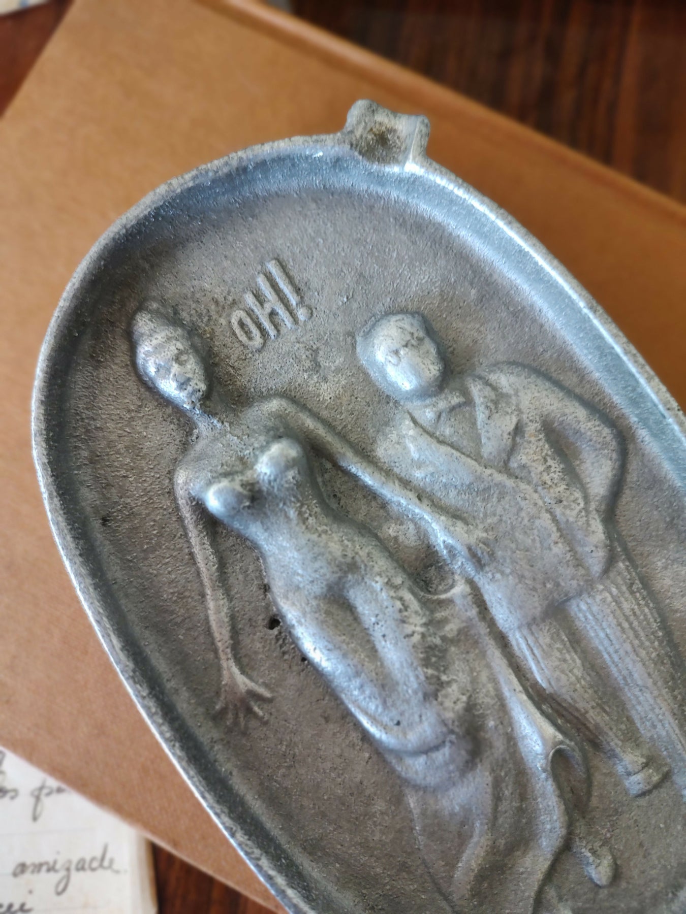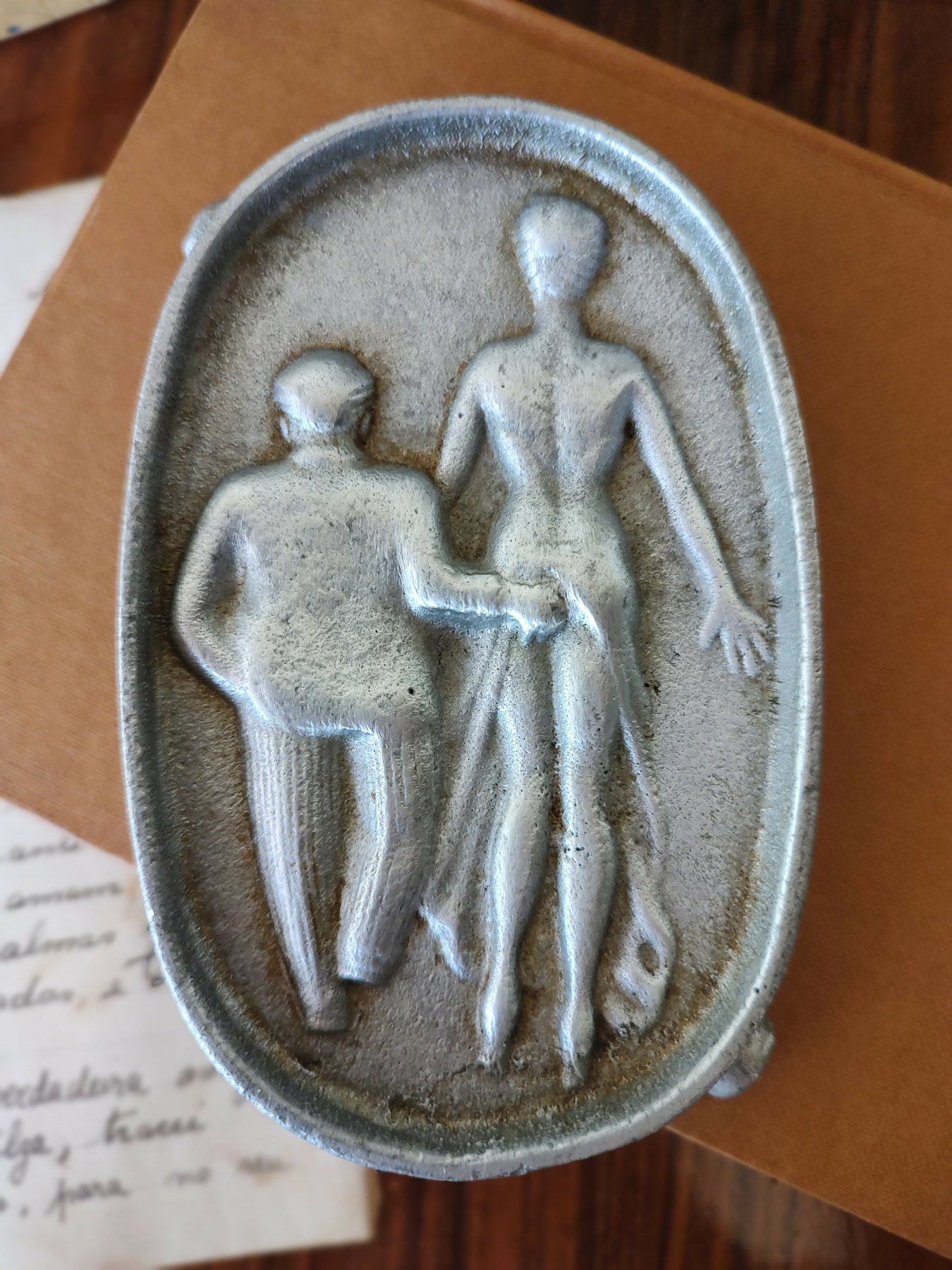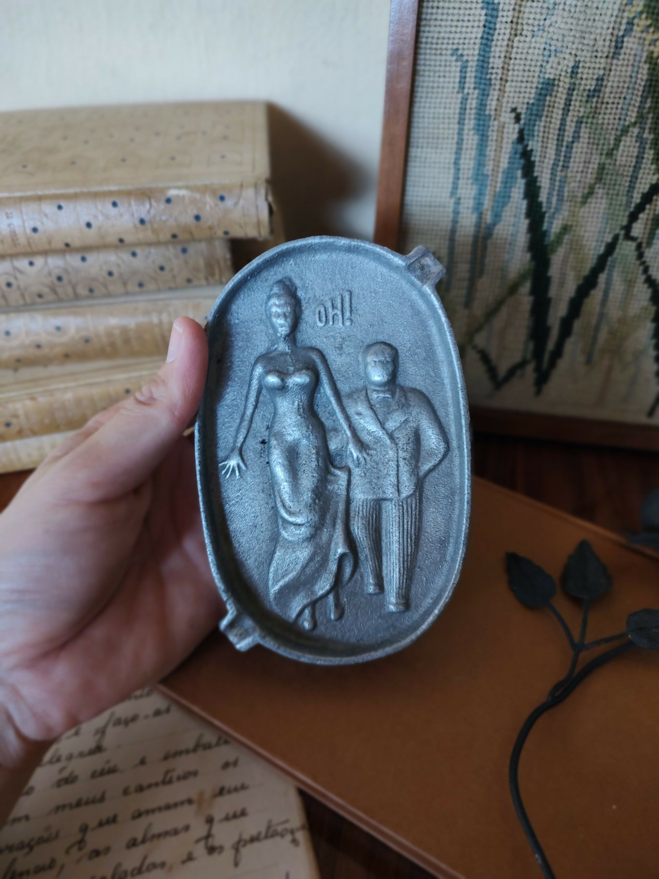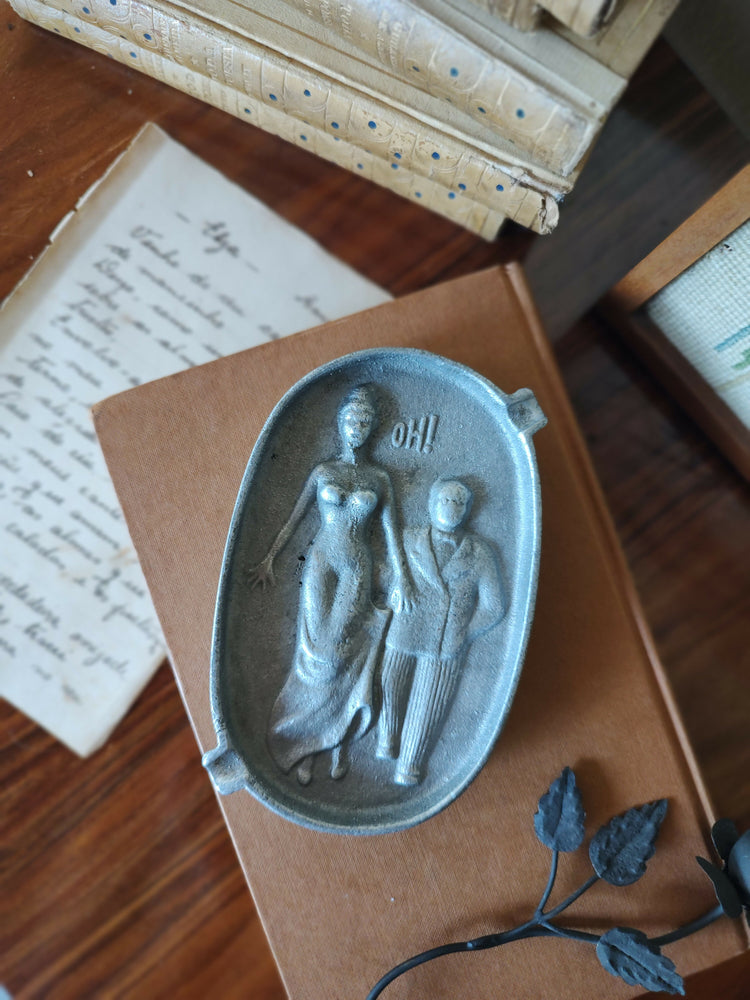 Antigo Cinzeiro americano em alumínio fundido retratando casal
