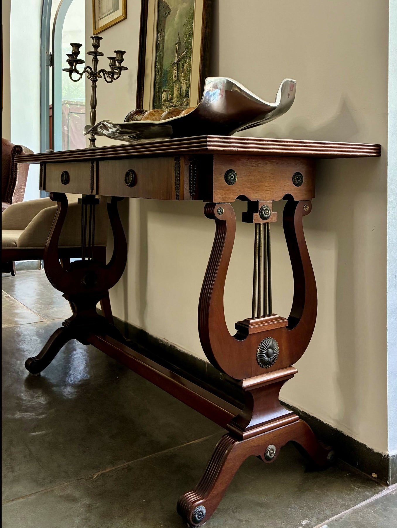 Peça versátil, atemporal e de forte presença decorativa, perfeita para compor interiores clássicos, ecléticos ou contemporâneos com toque de antiguidade.