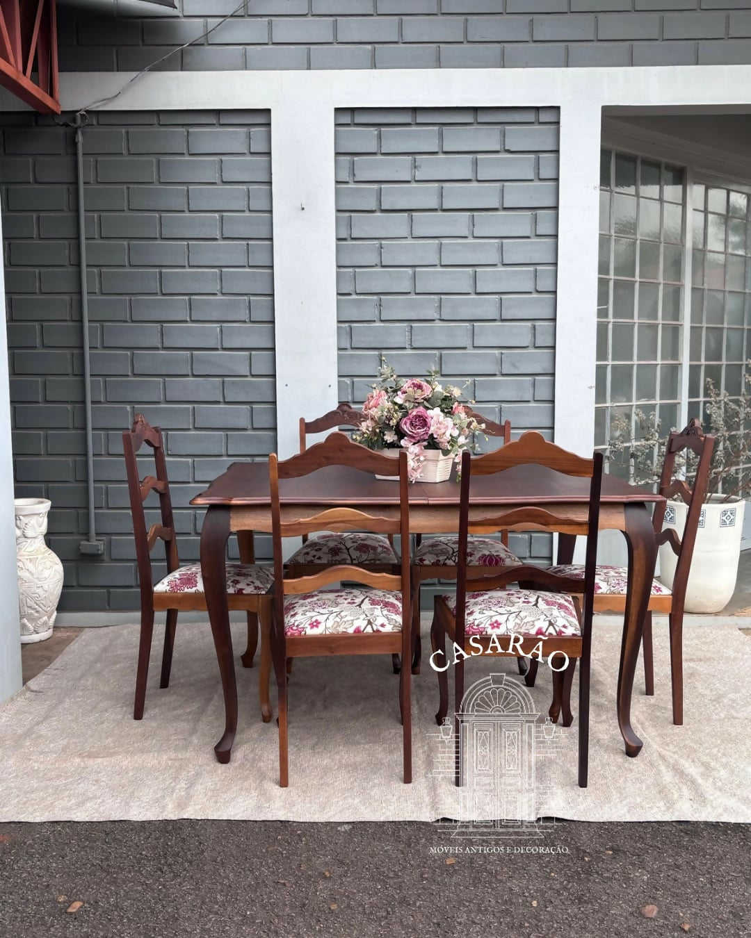 Jogo mesa provençal com 6 cadeiras, madeira imbuia, tampo com extensor, estofado novo (tem opção trocar se preferir) restaurada, verniz acetinado natural.