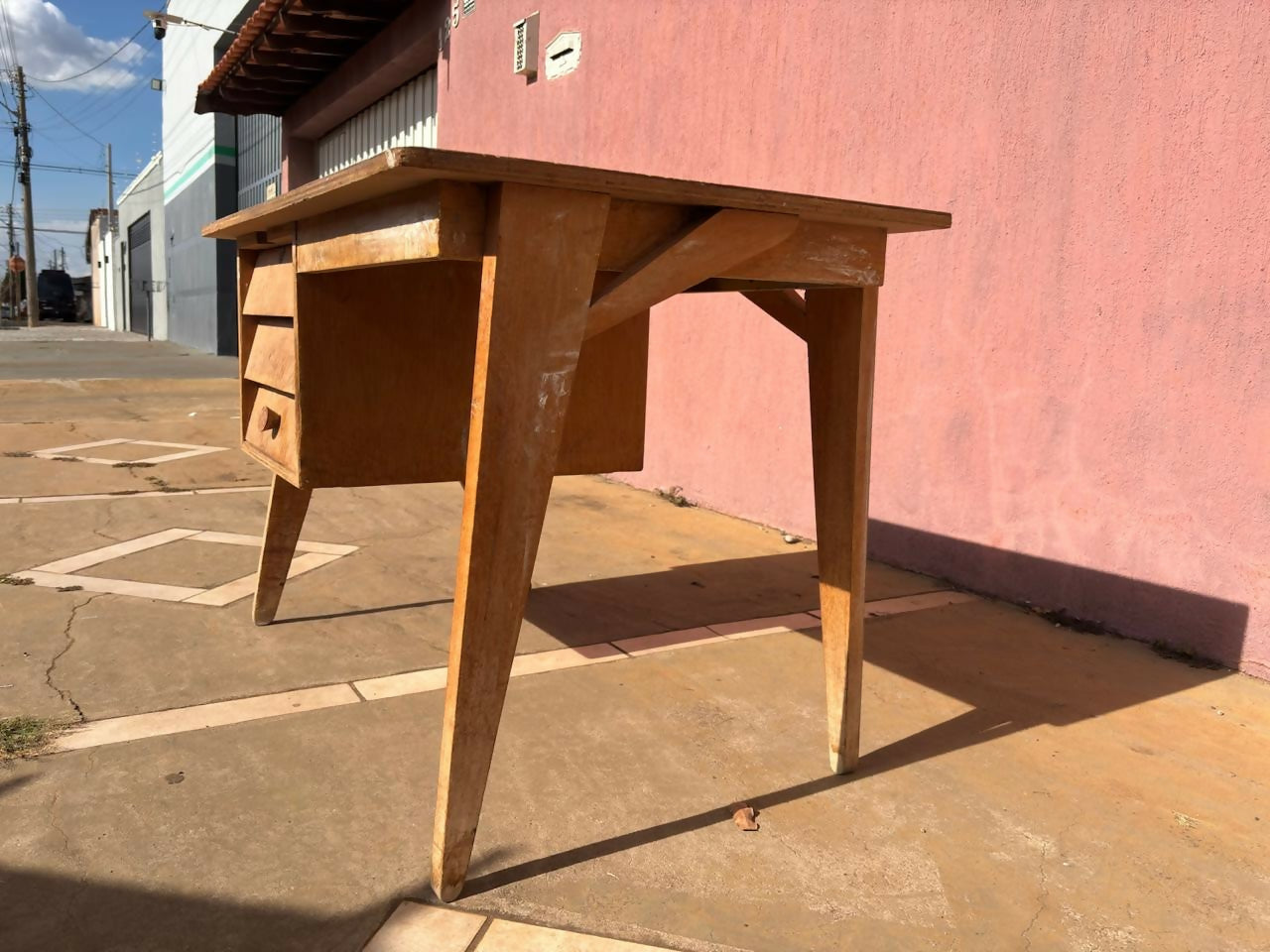 Uma peça rara e cheia de história! Produzida em compensado, esta escrivaninha traz o design icônico de José Zanine Caldas, conhecido por suas linhas orgânicas e pelo uso inteligente de materiais brasileiros.