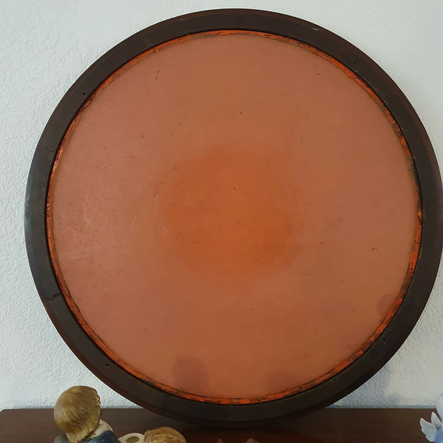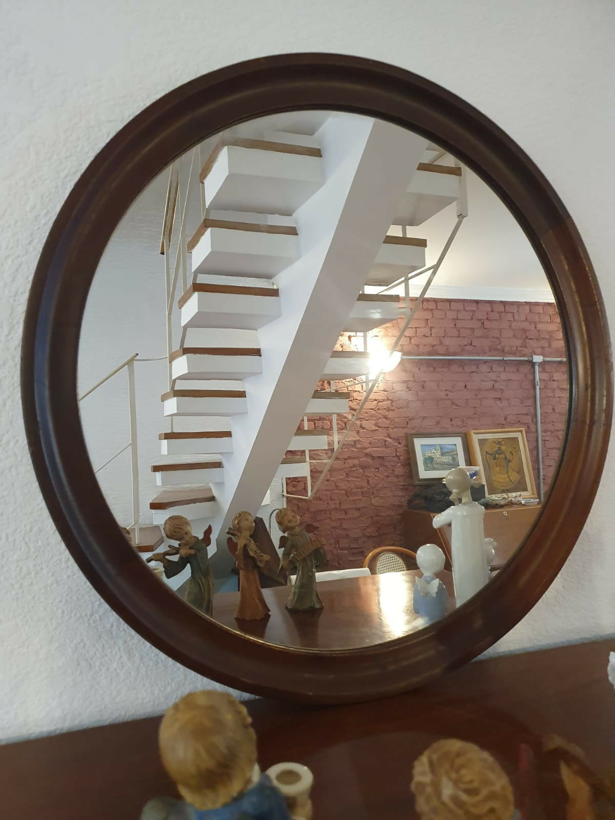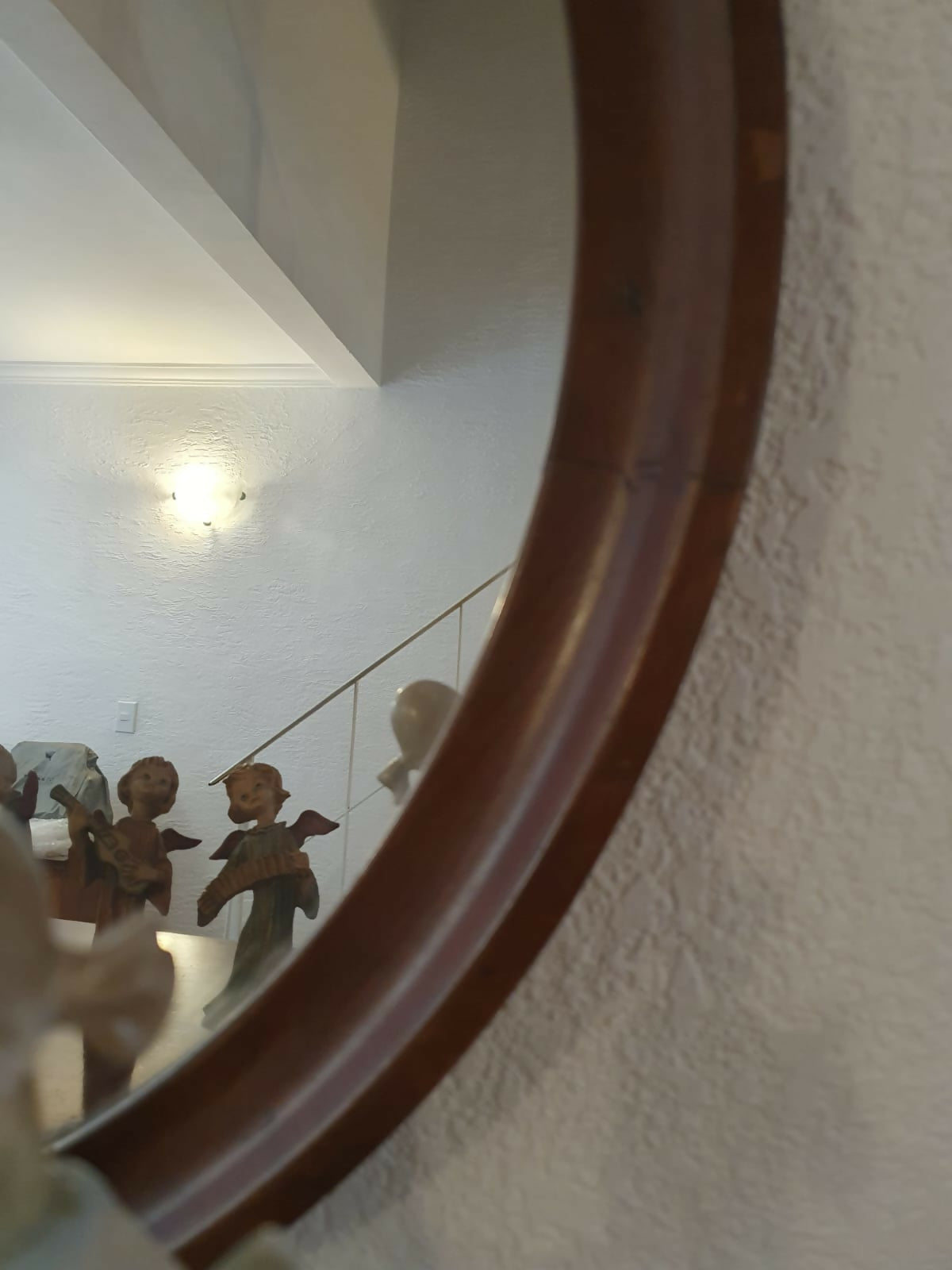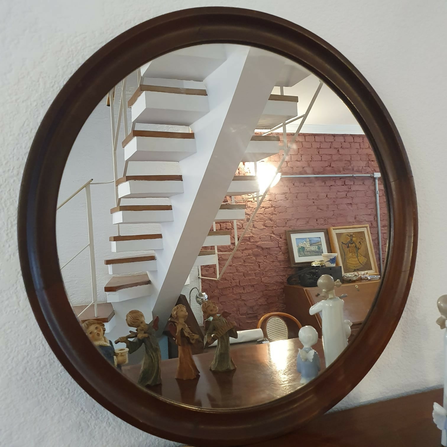 Espelho redondo com moldura em madeira nobre, anos 60. Muito bem preservado,  além de lindo!