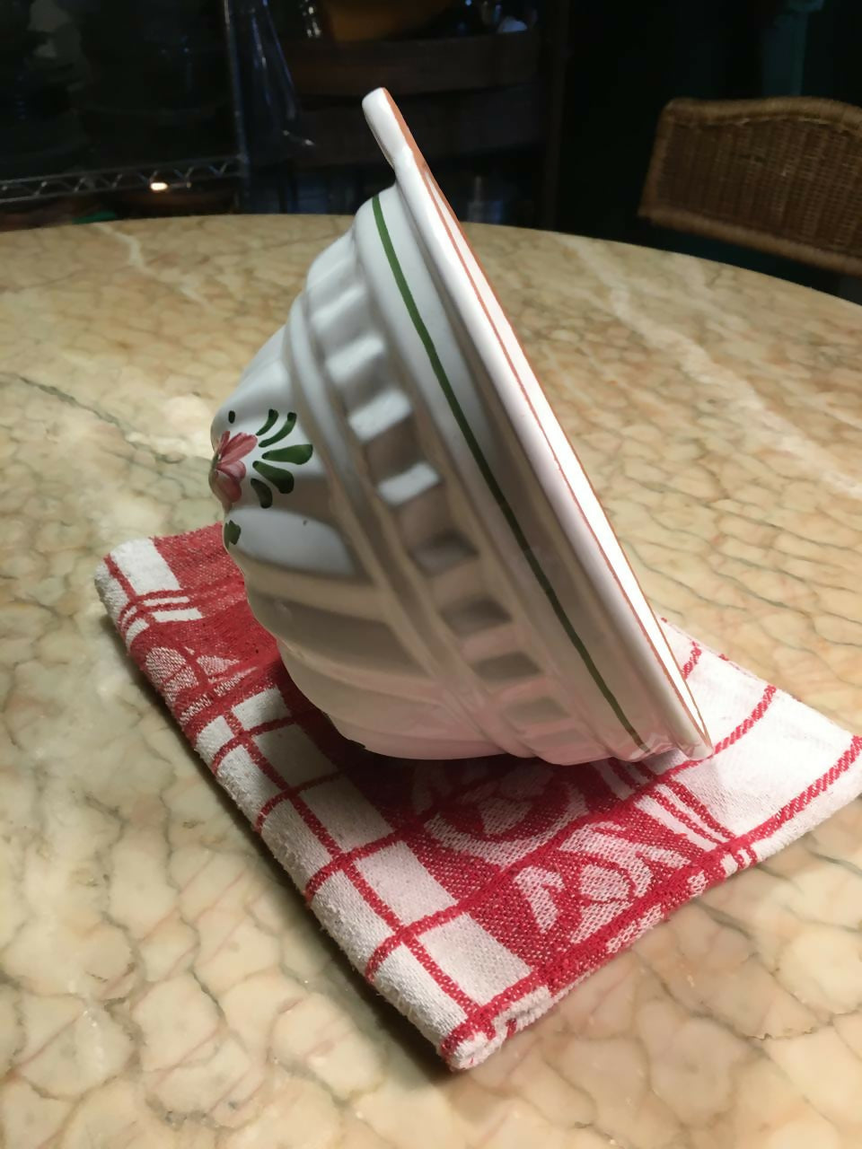 Antiga forma de bolo italiana pintada a mão com argola para pendurar na parede.