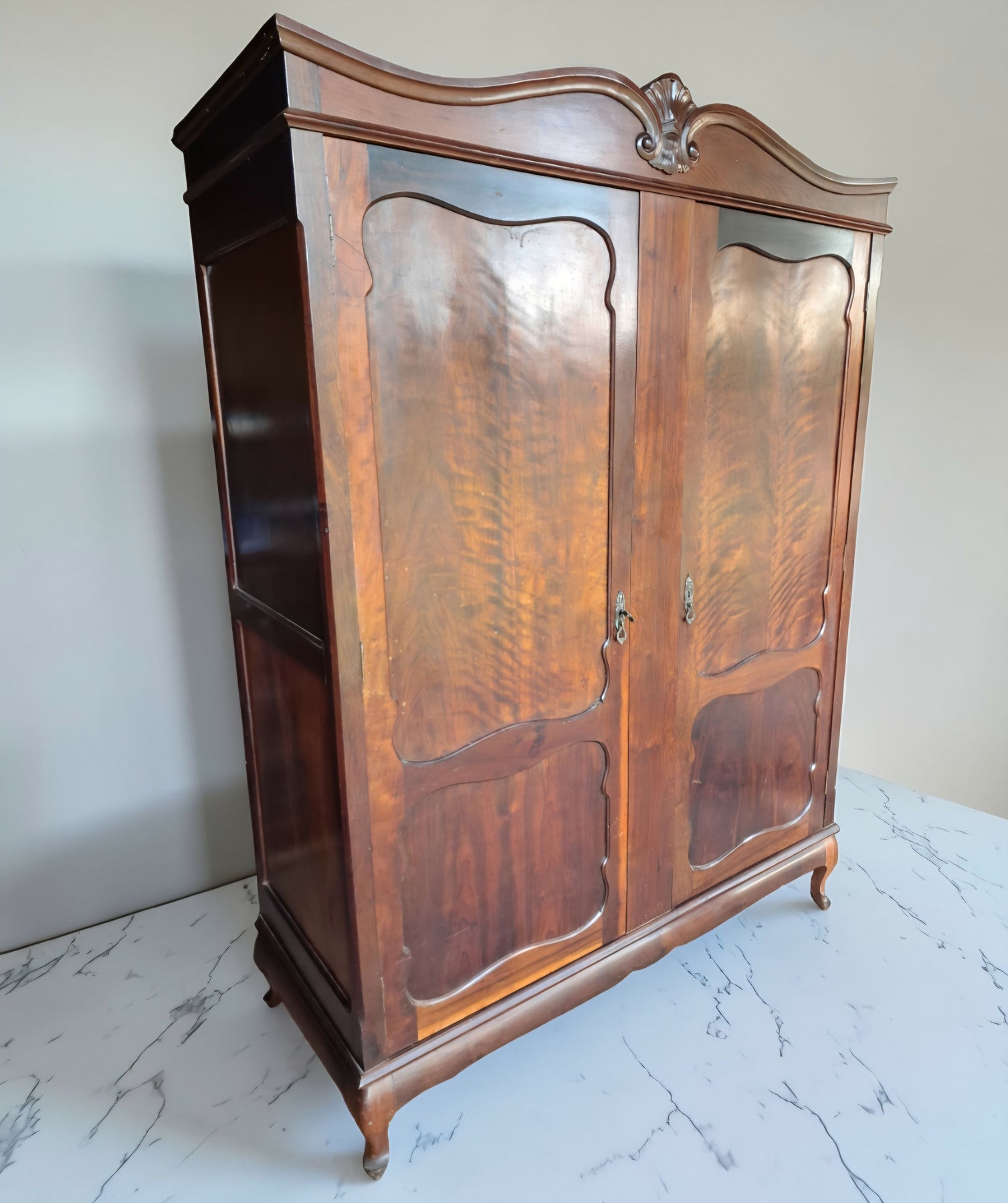 Peça de marcenaria refinada, provavelmente fabricada entre as décadas de 1940 e 1950, quando os móveis eram feitos para atravessar gerações.