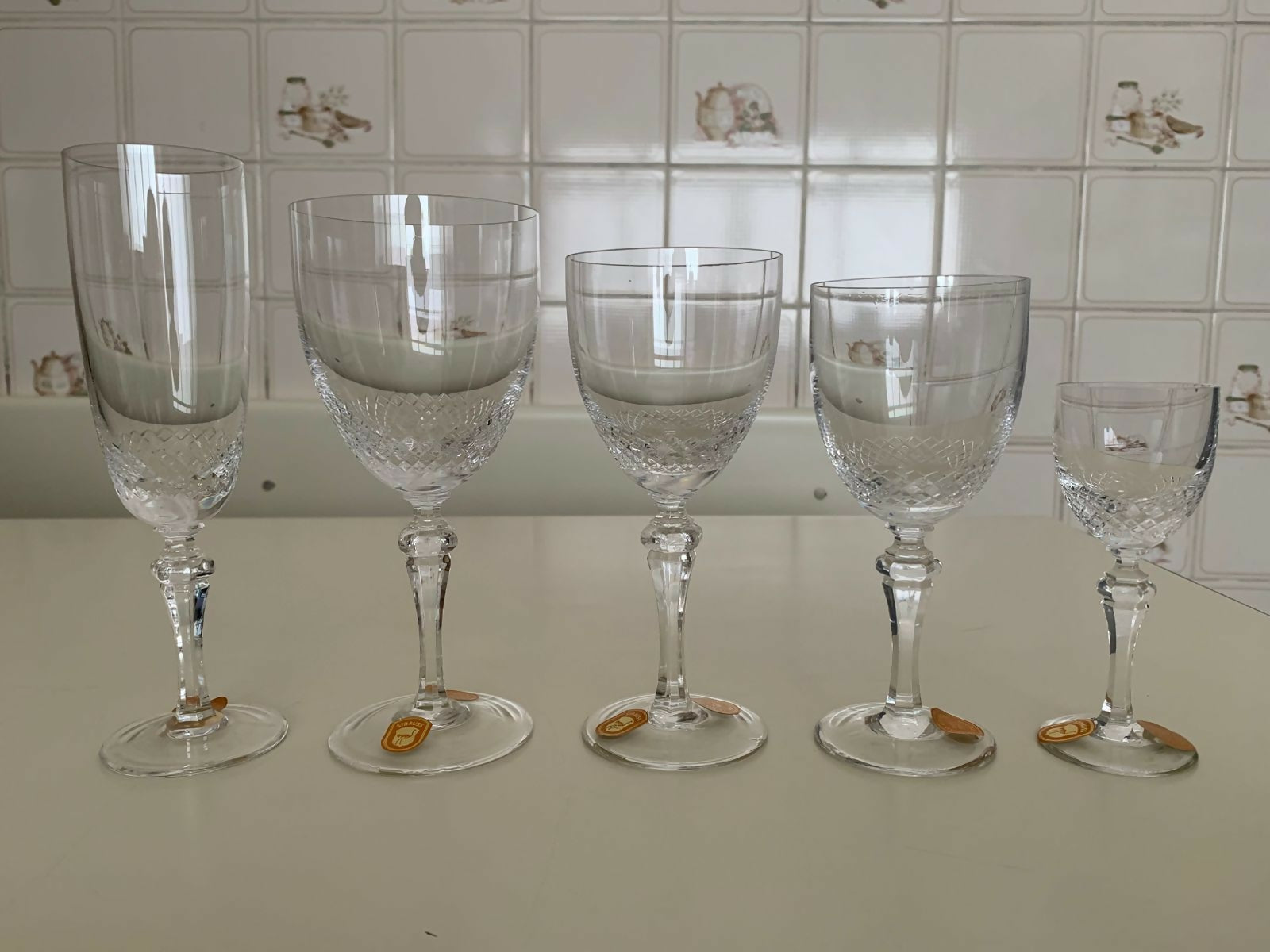 Belíssimo jogo completo de taças em cristal legítimo Strauss, peças feitas à mão e acabamento lapidado. Todas as taças ainda estão com a etiqueta original, nunca forma usadas.