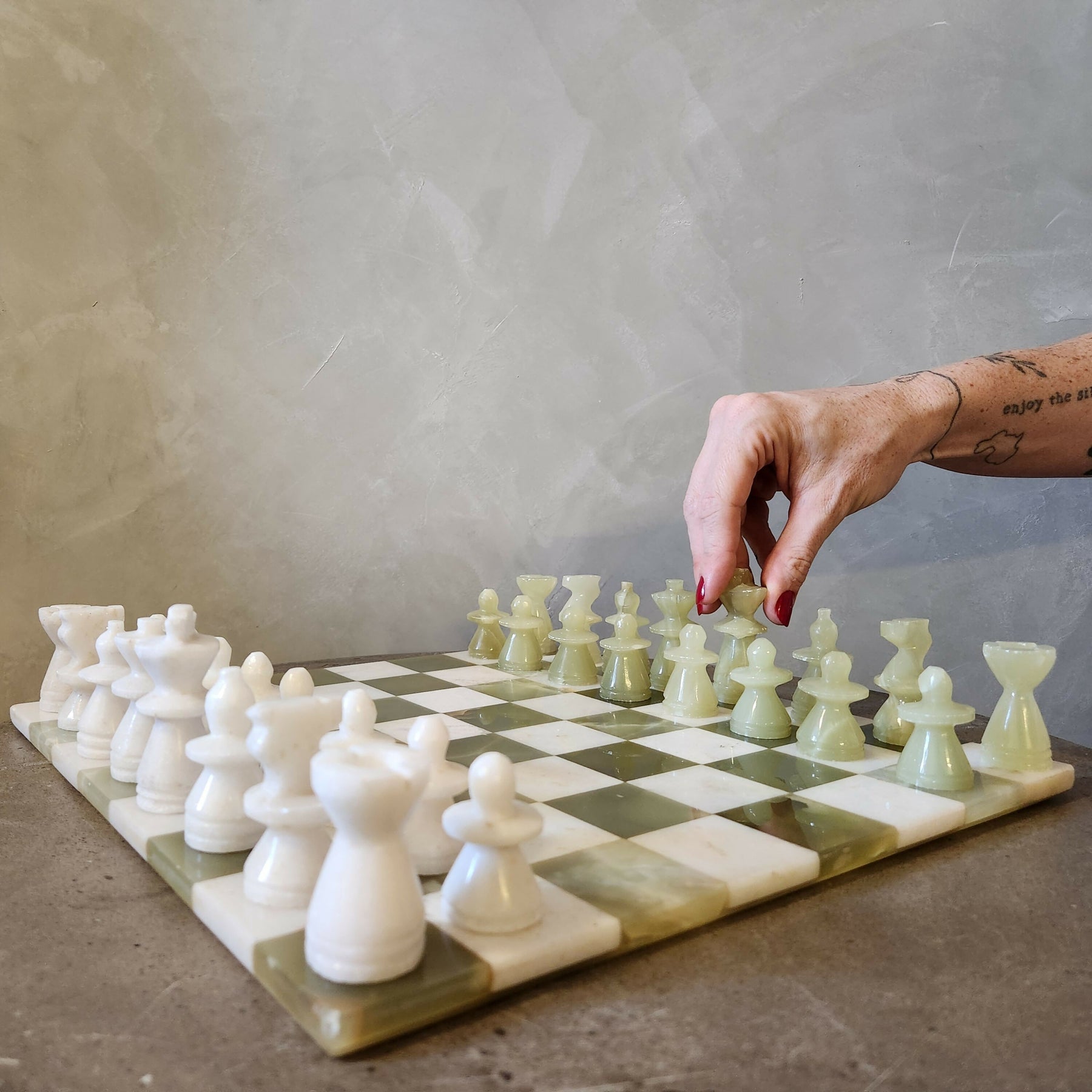 Jogo de Xadrez em mármore ônix branco e verde claro
