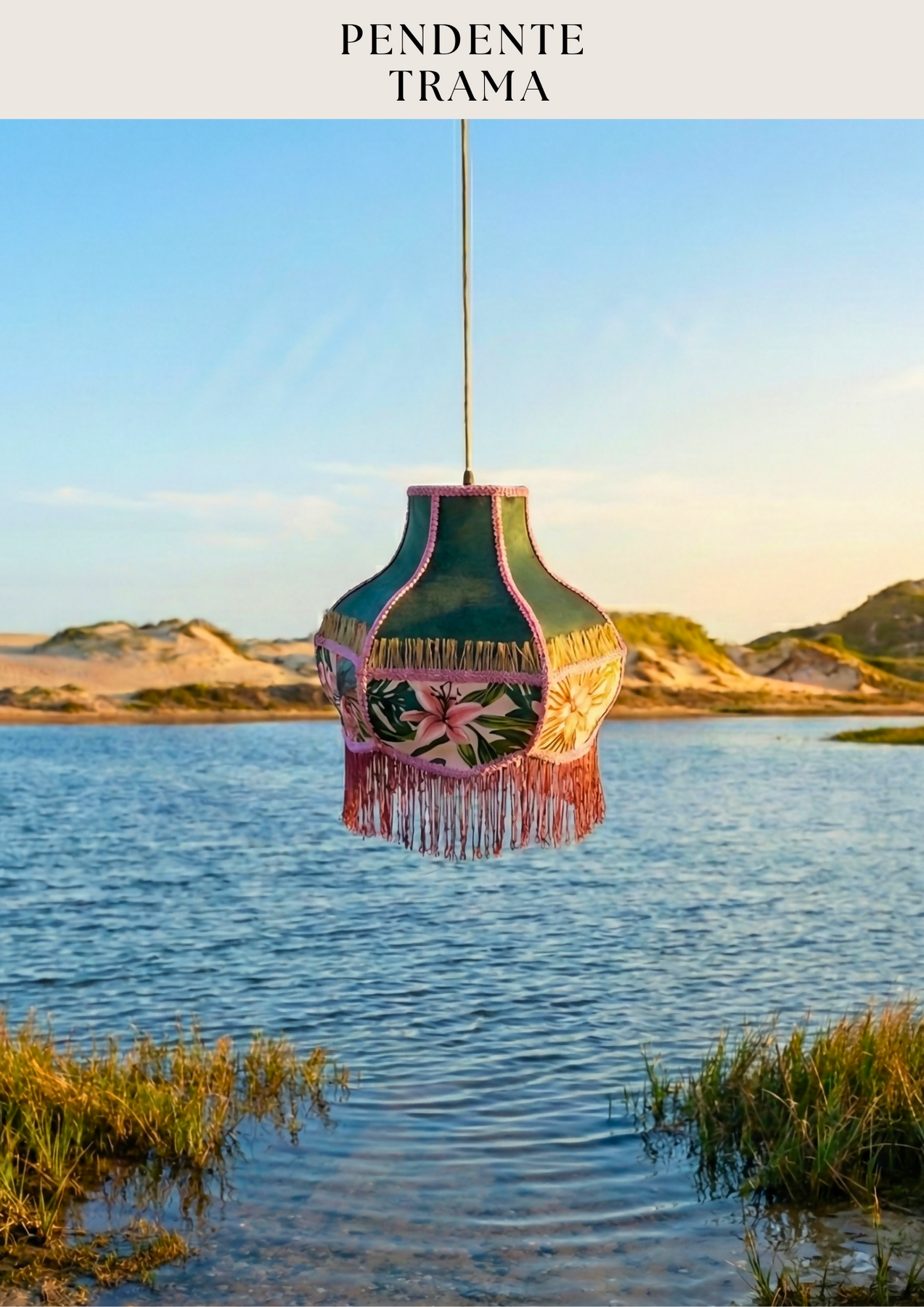Pendente feito artesanalmente com tecidos selecionados, e a exclusividade do feito a mão.