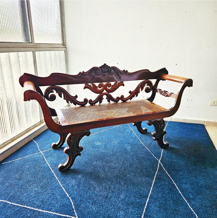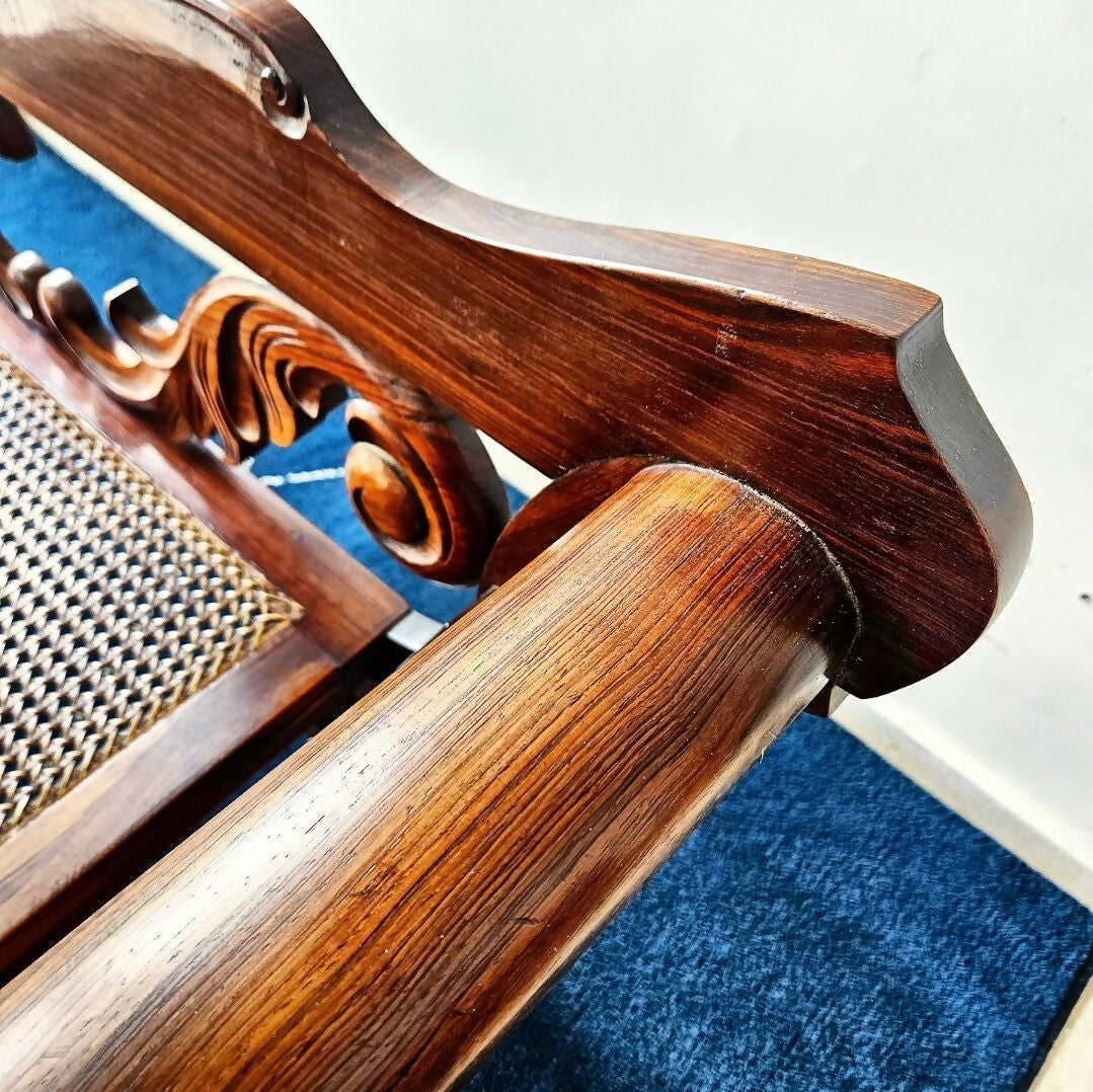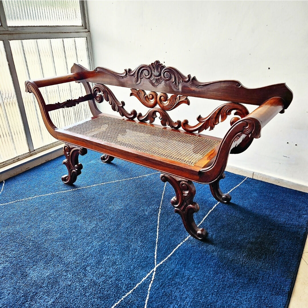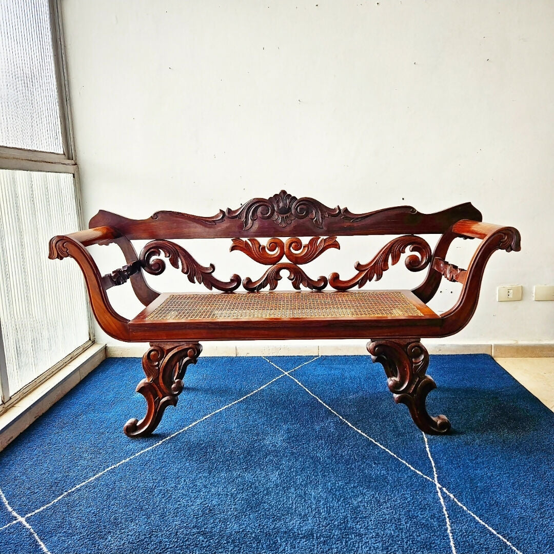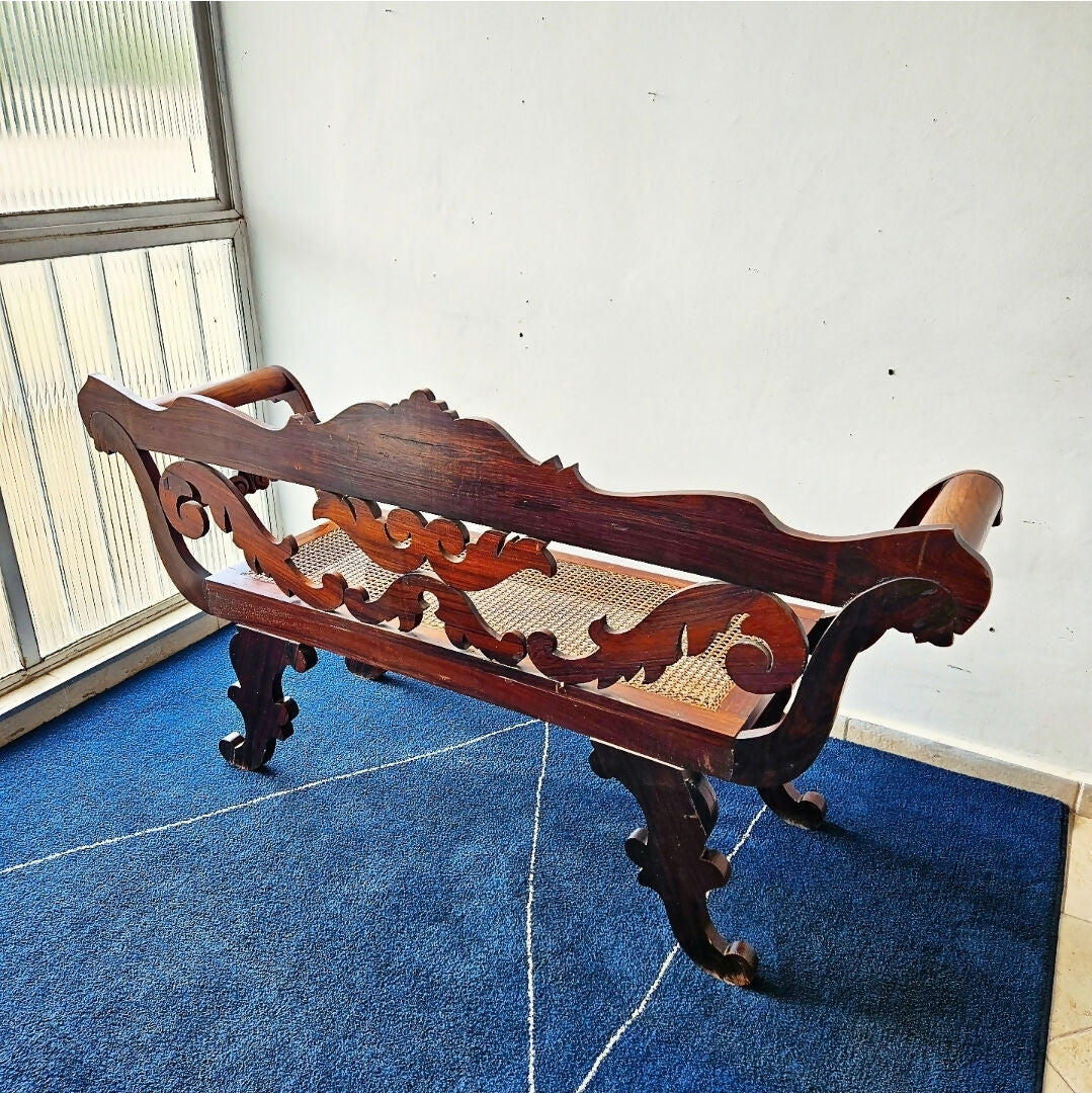 Espetacular marquesa / namoradeira produzida entre o final do século XIX e o início do século XX, confeccionada inteiramente em jacarandá maciço de altíssima qualidade. Encontra-se em ótimo estado de conservação.