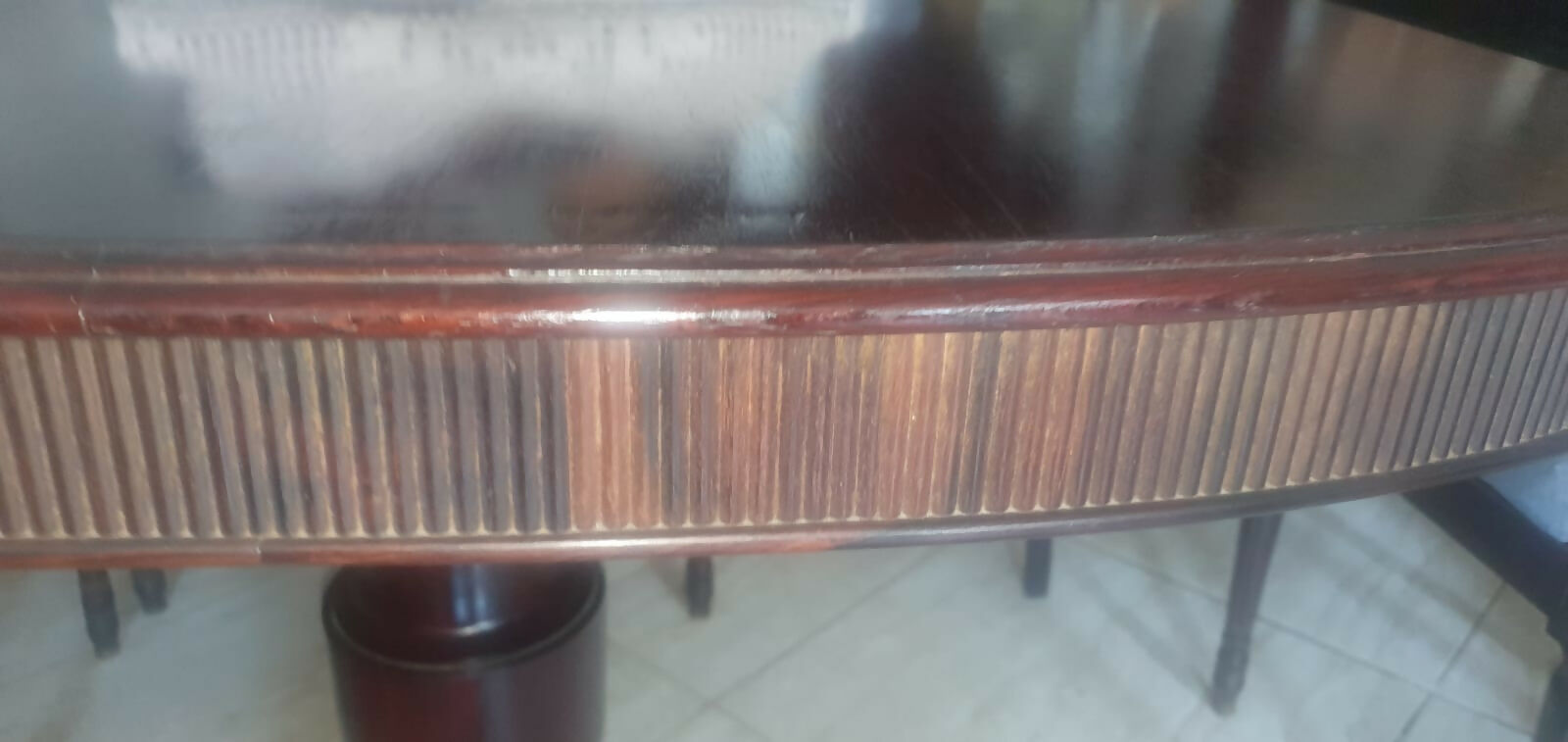 Bom estado geral, considerando a idade. Madeira com pátina preservada, estrutura firme e funcional. Palhinha das cadeiras refeita recentemente, garantindo conforto e uso imediato.