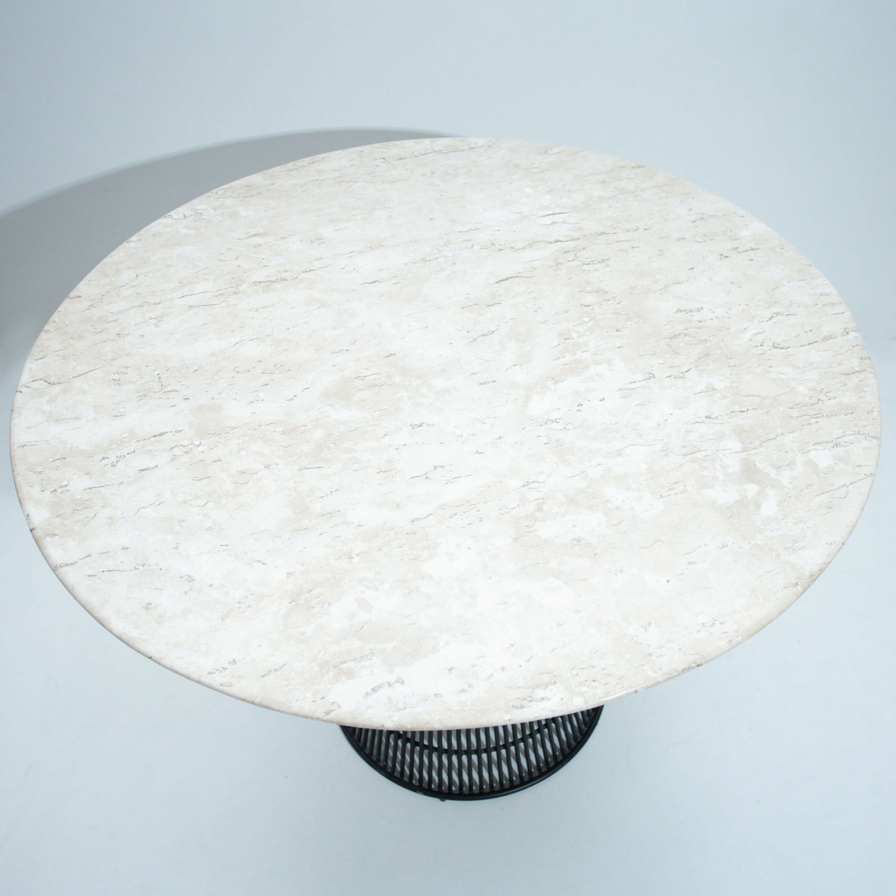 Warren Platner - Mesa Warren Platner. Estrutura em metal em aço pintado de preto, marmore em bege bahia.