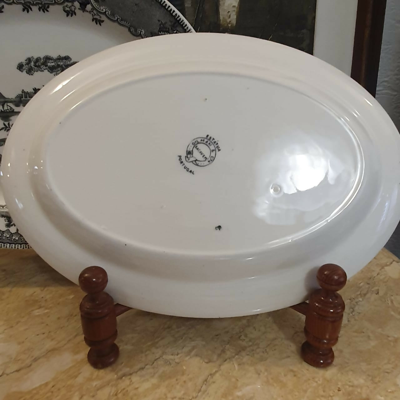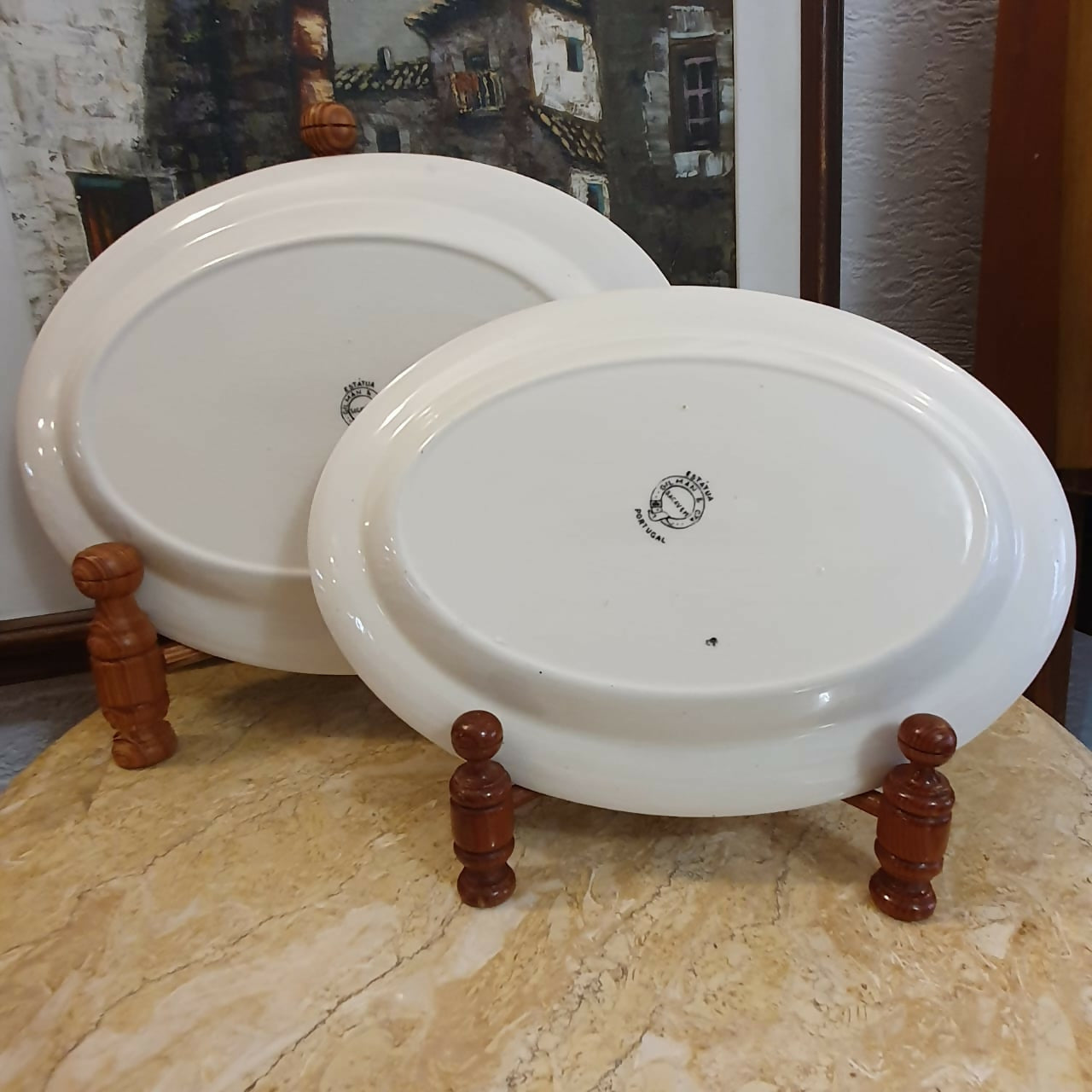 Par de travessas belíssimas em faiança portuguesa antiga Sacavém, decoração "Estátua " ou " Cavalinho". Marcadas, numeradas, em excelente estado!