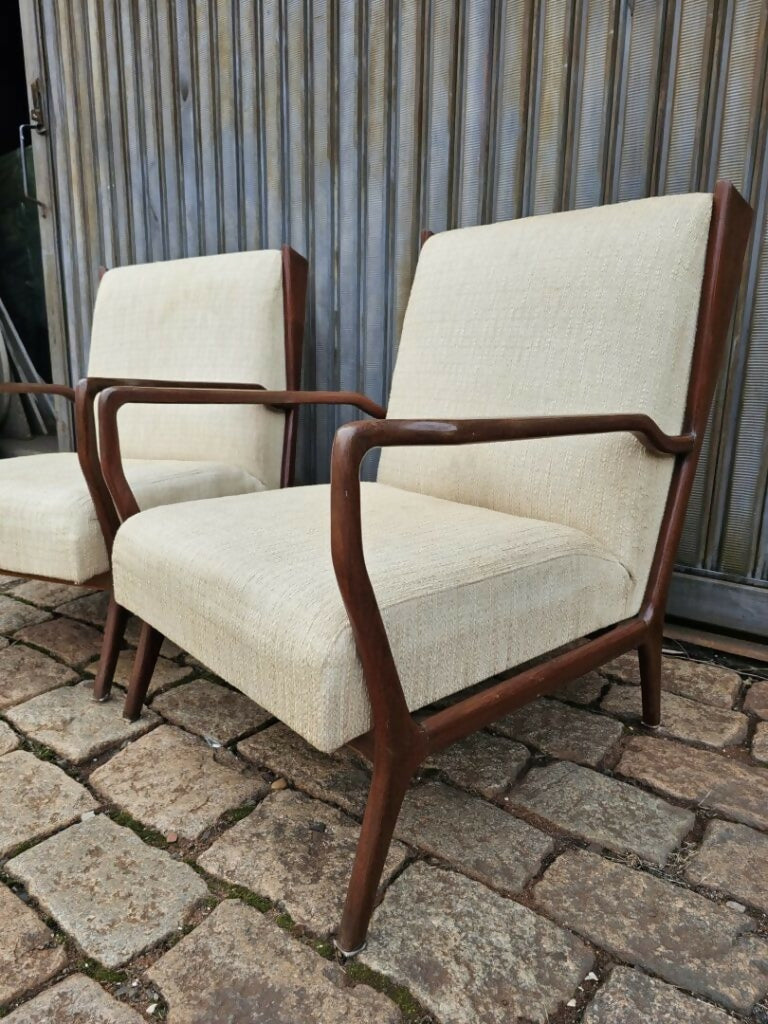 Par poltronas Rino Levi em Cabreúva e estofado em veludo