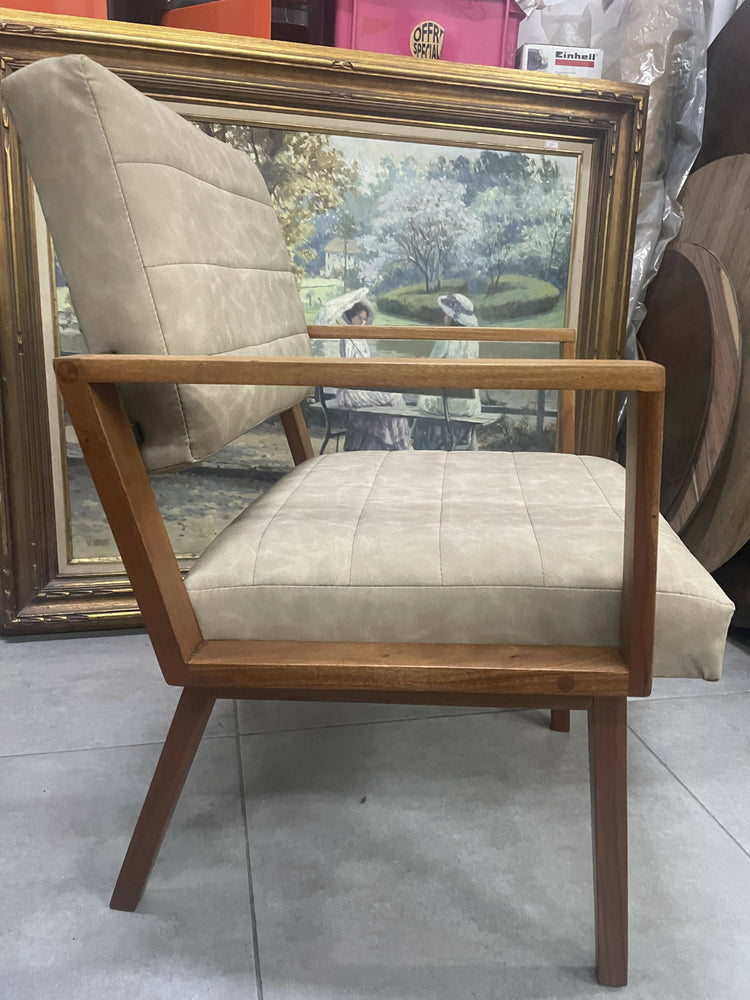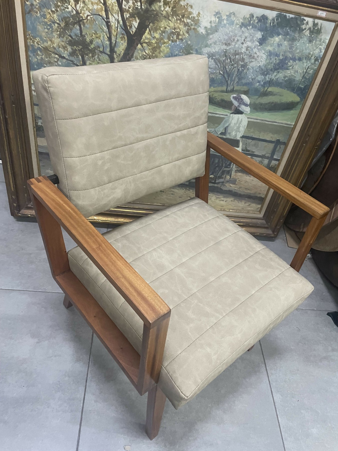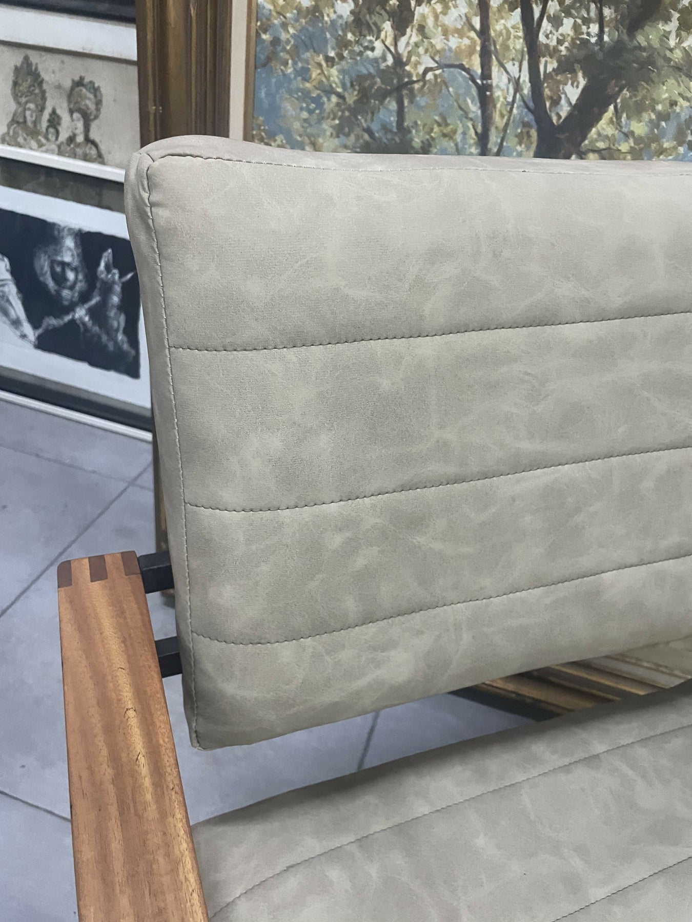 Peça única e exclusiva, totalmente original, com molas preservadas. Estrutura em madeira nobre e estofado em couro ecológico. Maseira toda restaurada .