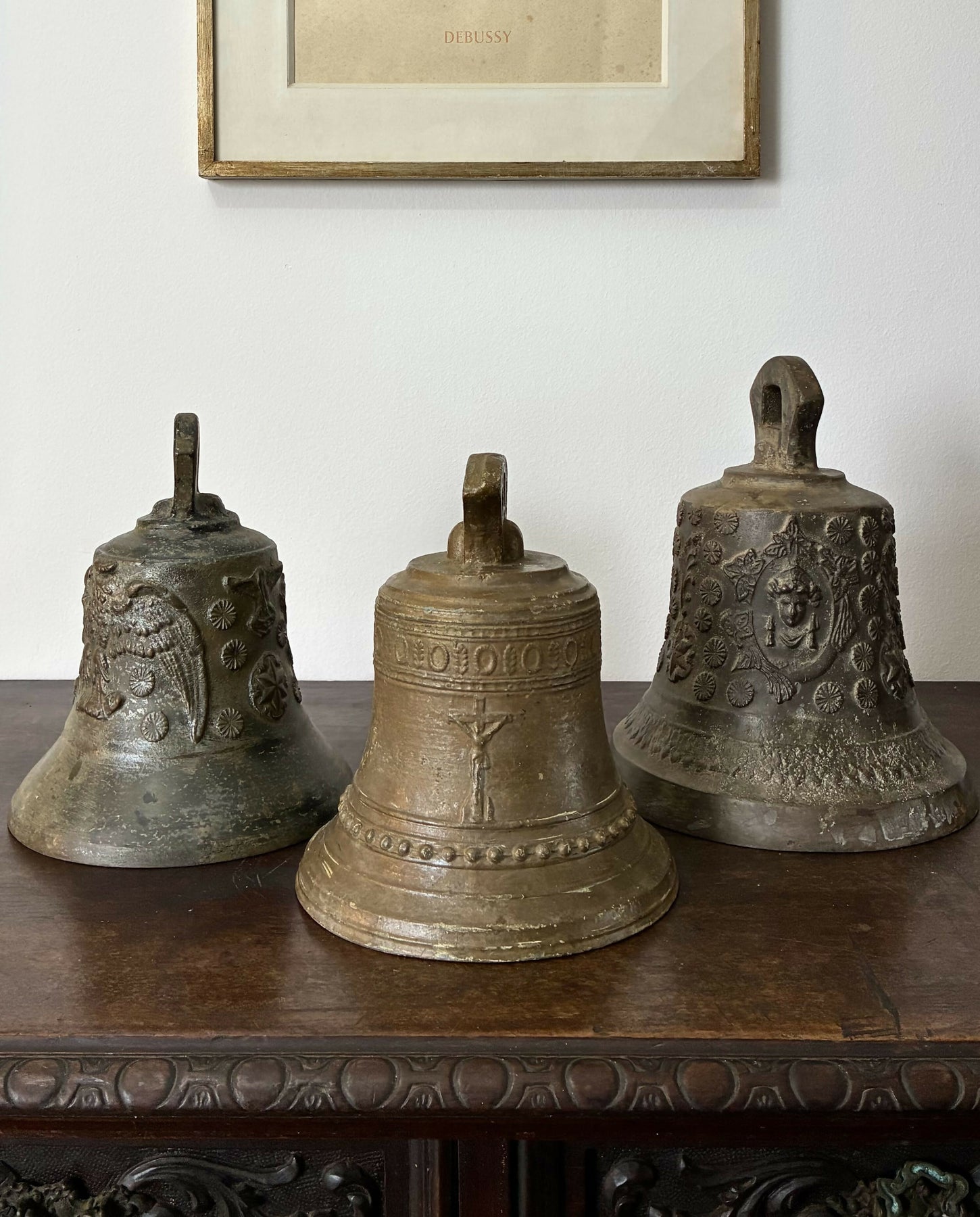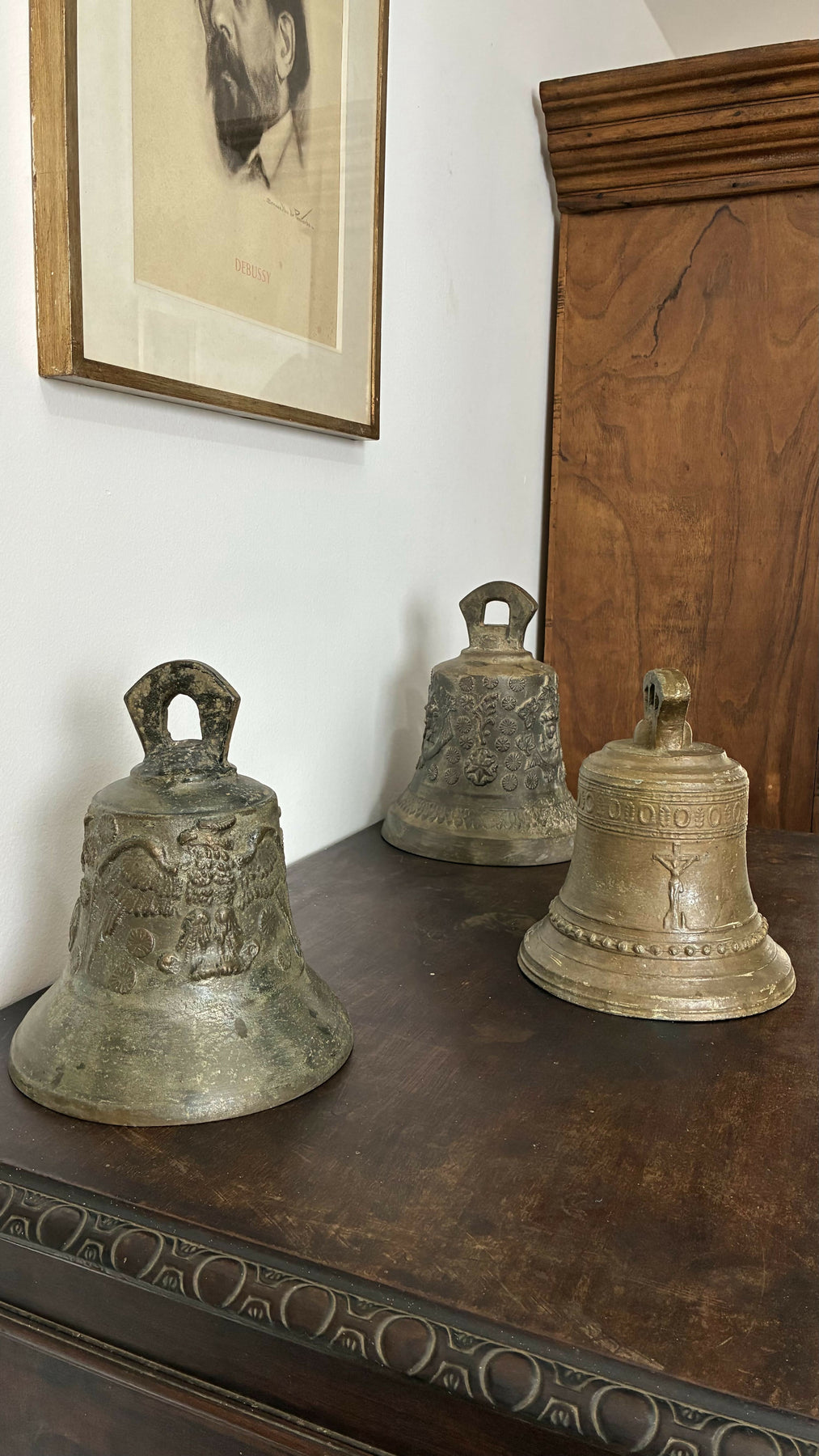 Belíssimos sinos antigos para decoração ou coleção. Peças pesadas, trabalhadas com desenhos em relevo.