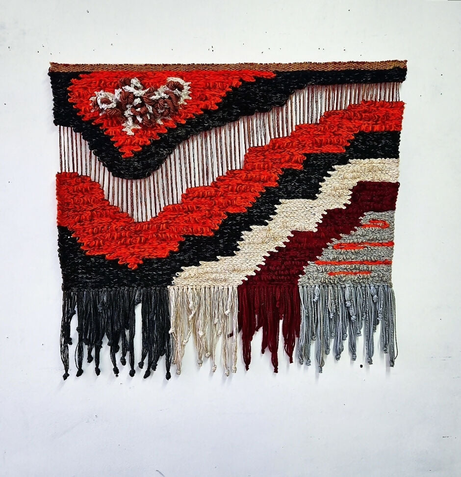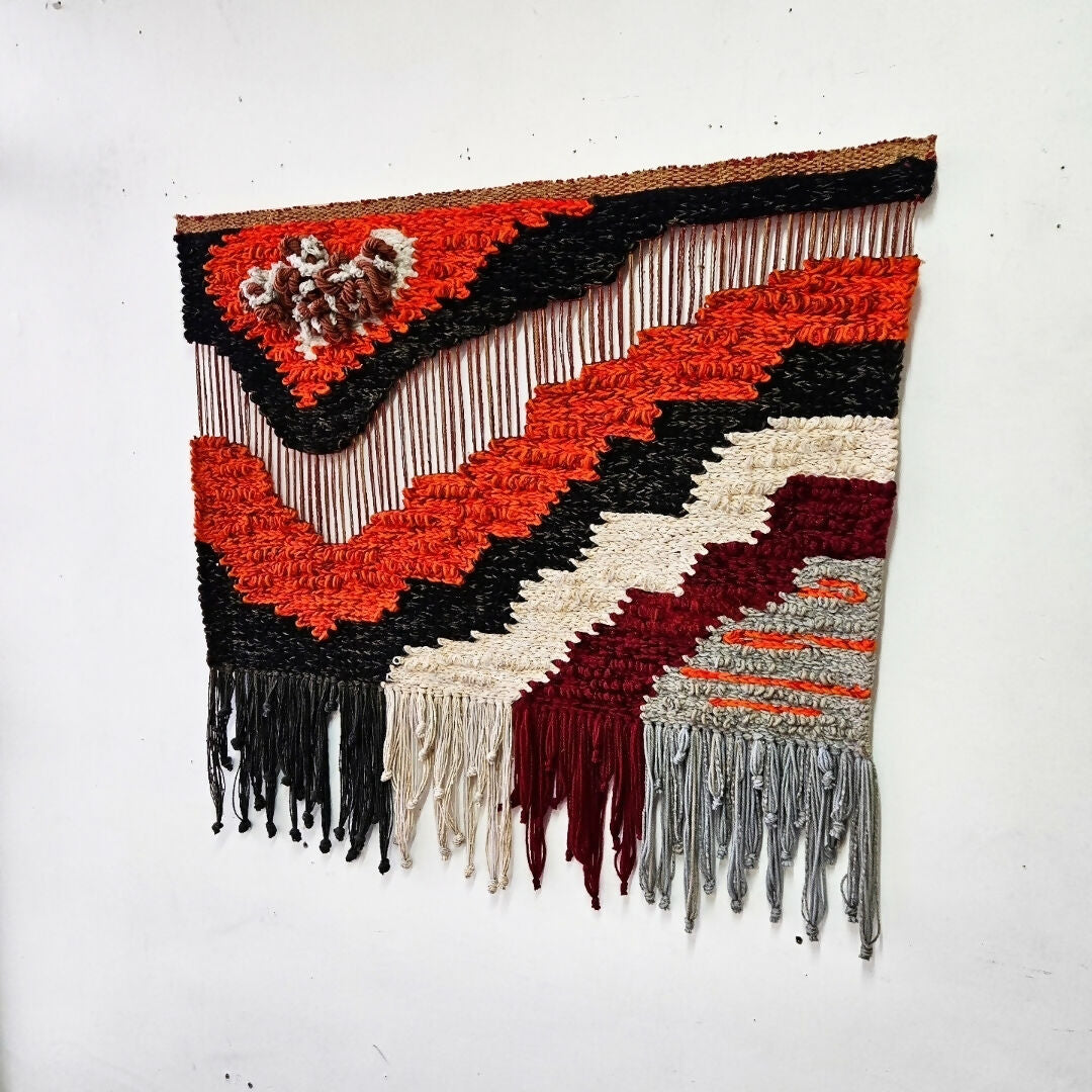 Tapeçaria original dos anos 1970, produzida pela artista plástica Telma Cadermatori em seu ateliê no Rio Grande do Sul.