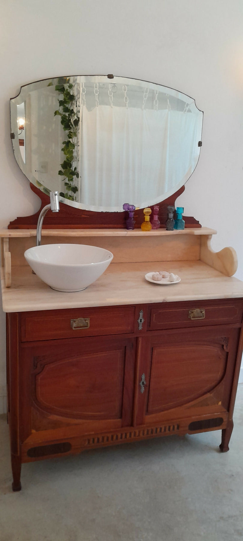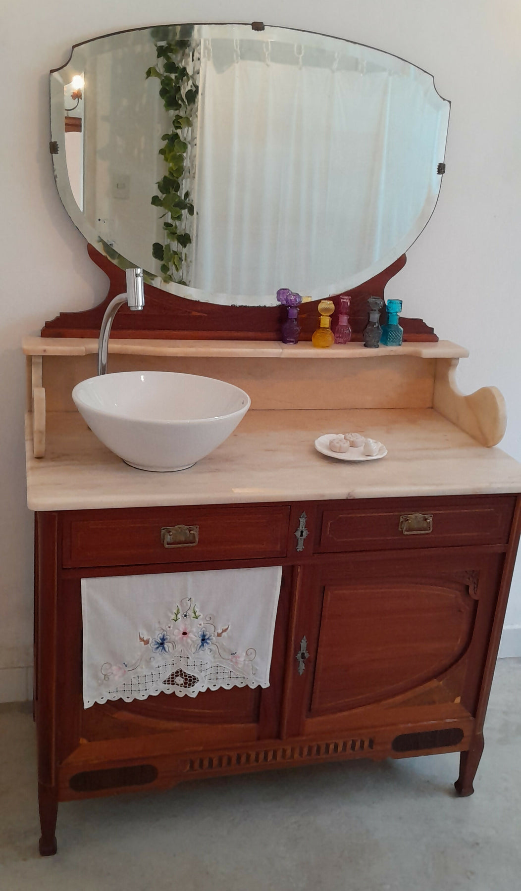 Espelhos franceses bisotados originais. Totalmente restaurada. Adaptadas cuba de sobreposição Deca e bica novas.