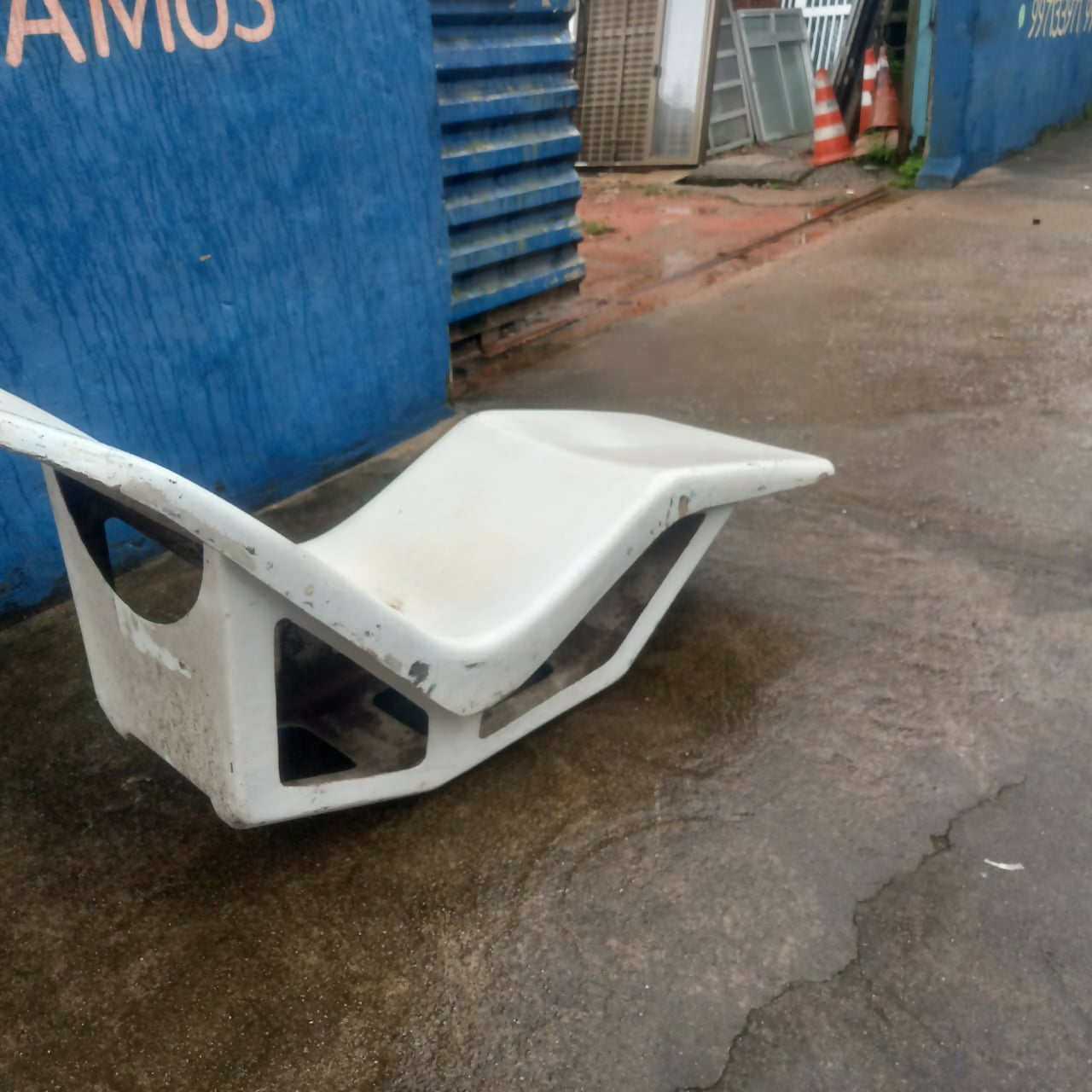 Cadeira de fibra década de 80, detalhes do tempo