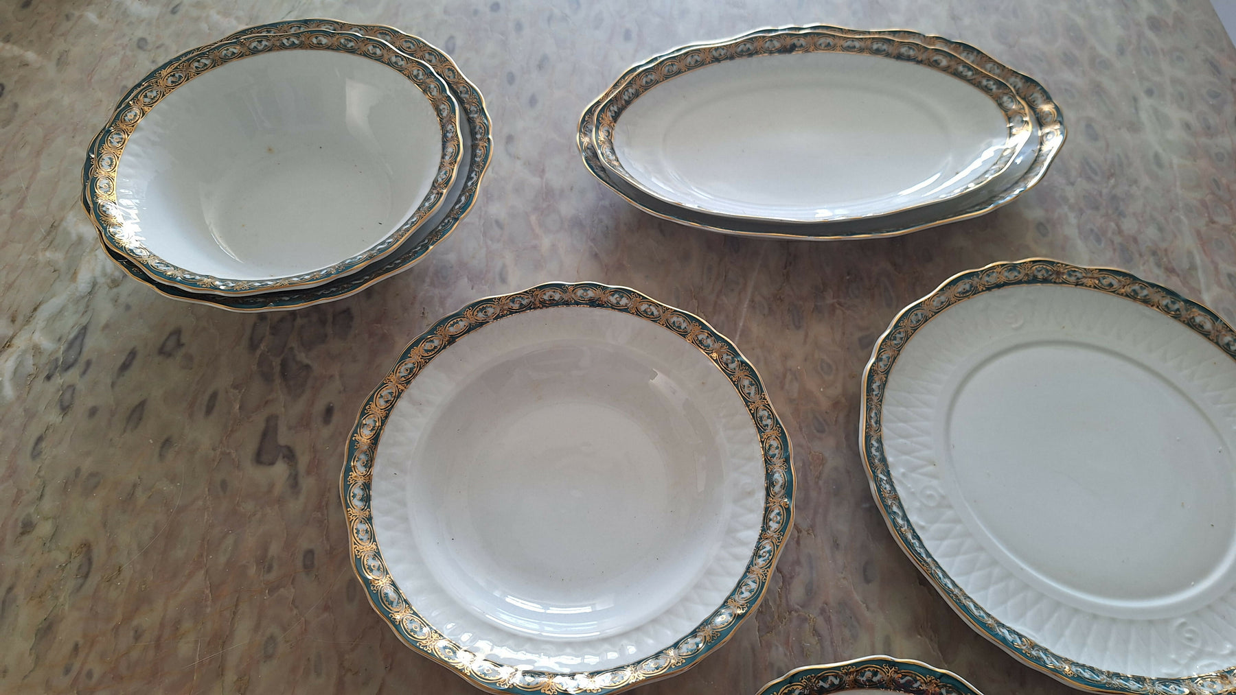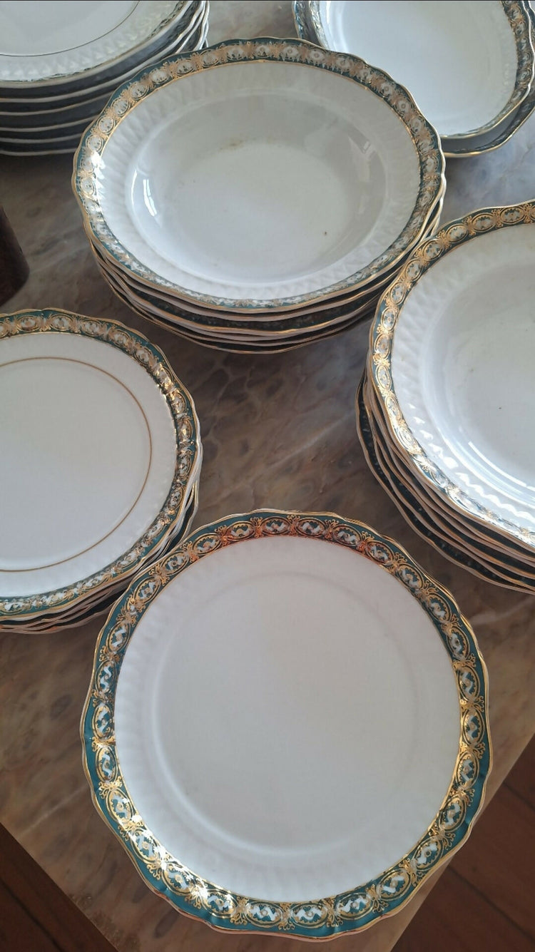 Vendo lindo jogo de louças da tradicional Porcelana Real – Made in Brazil, com borda azul e acabamento em dourado. Peças elegantes, ideais para mesa posta, colecionadores ou para quem aprecia louças clássicas.