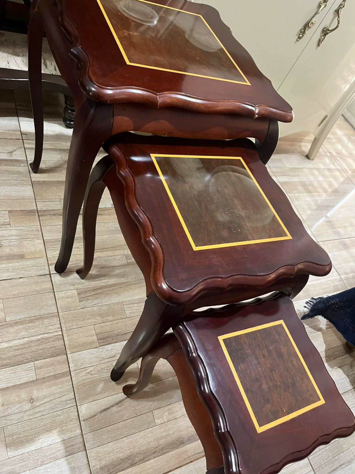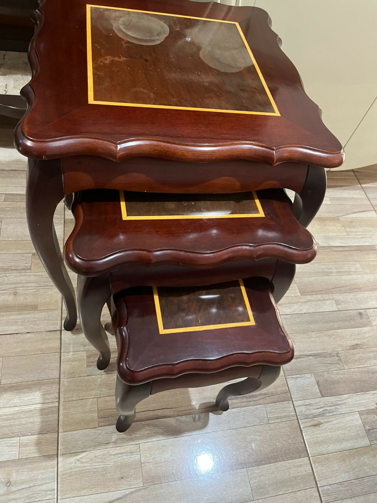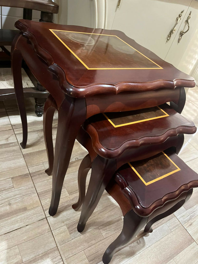 Jogo de mesas de apoio ninho madeira maciça Marcheteria peças raras!