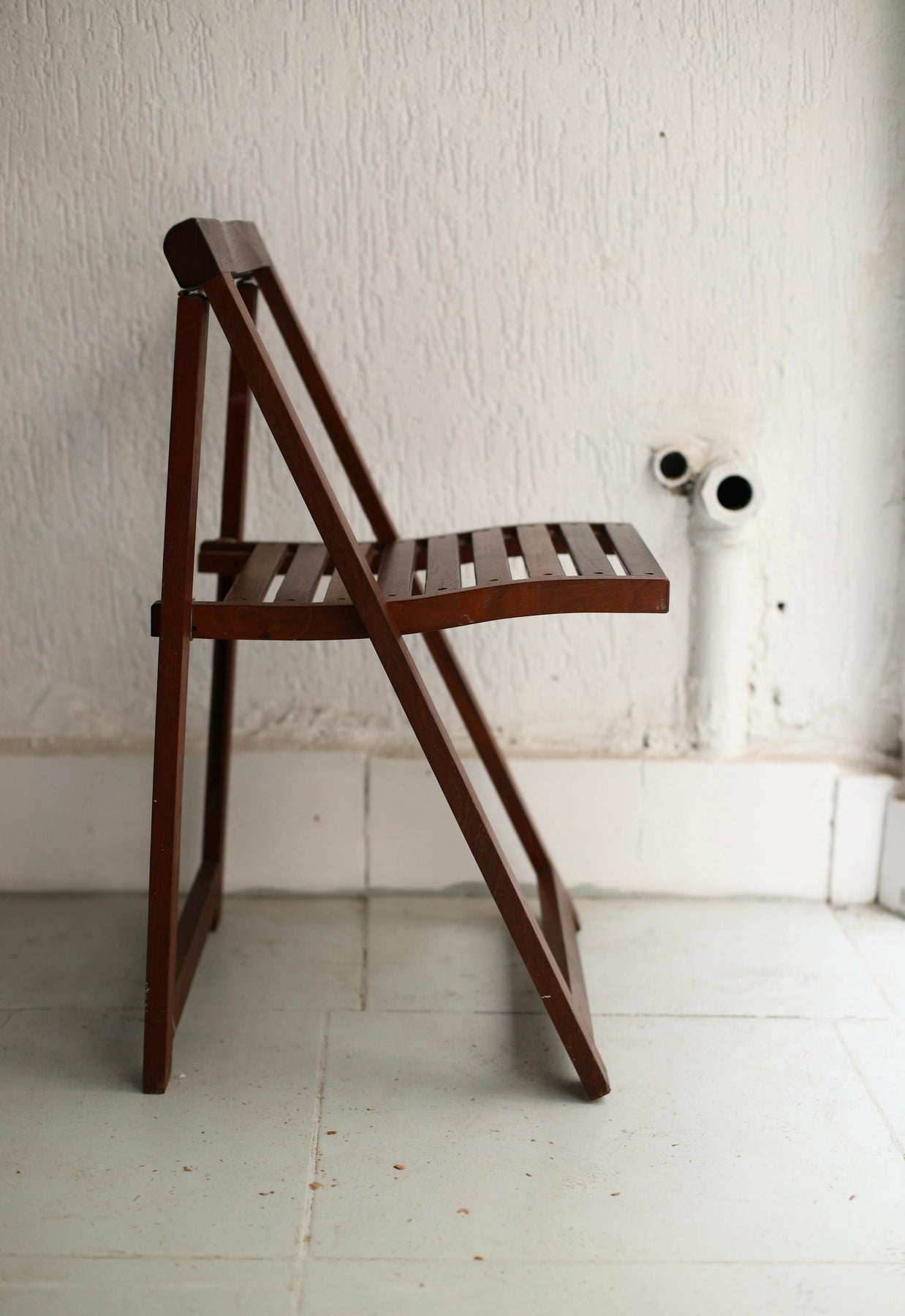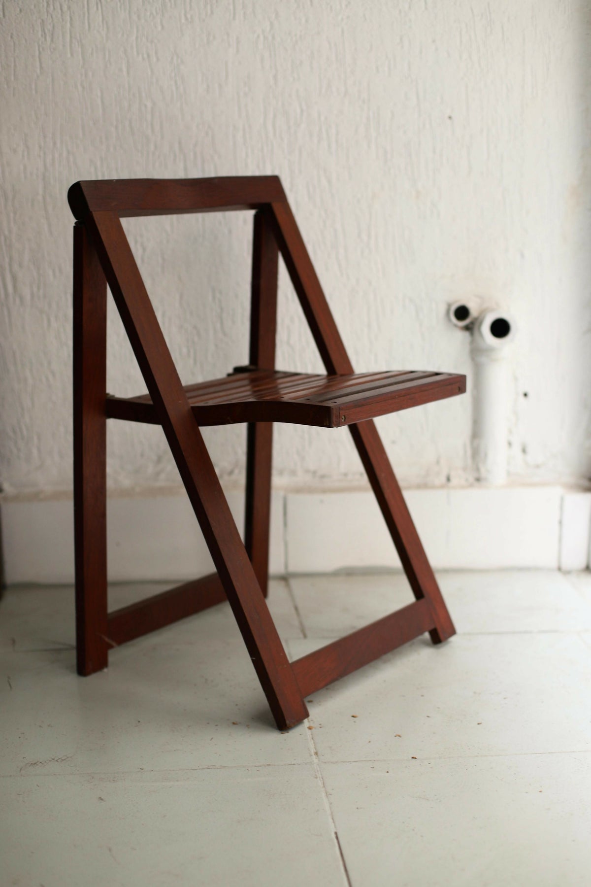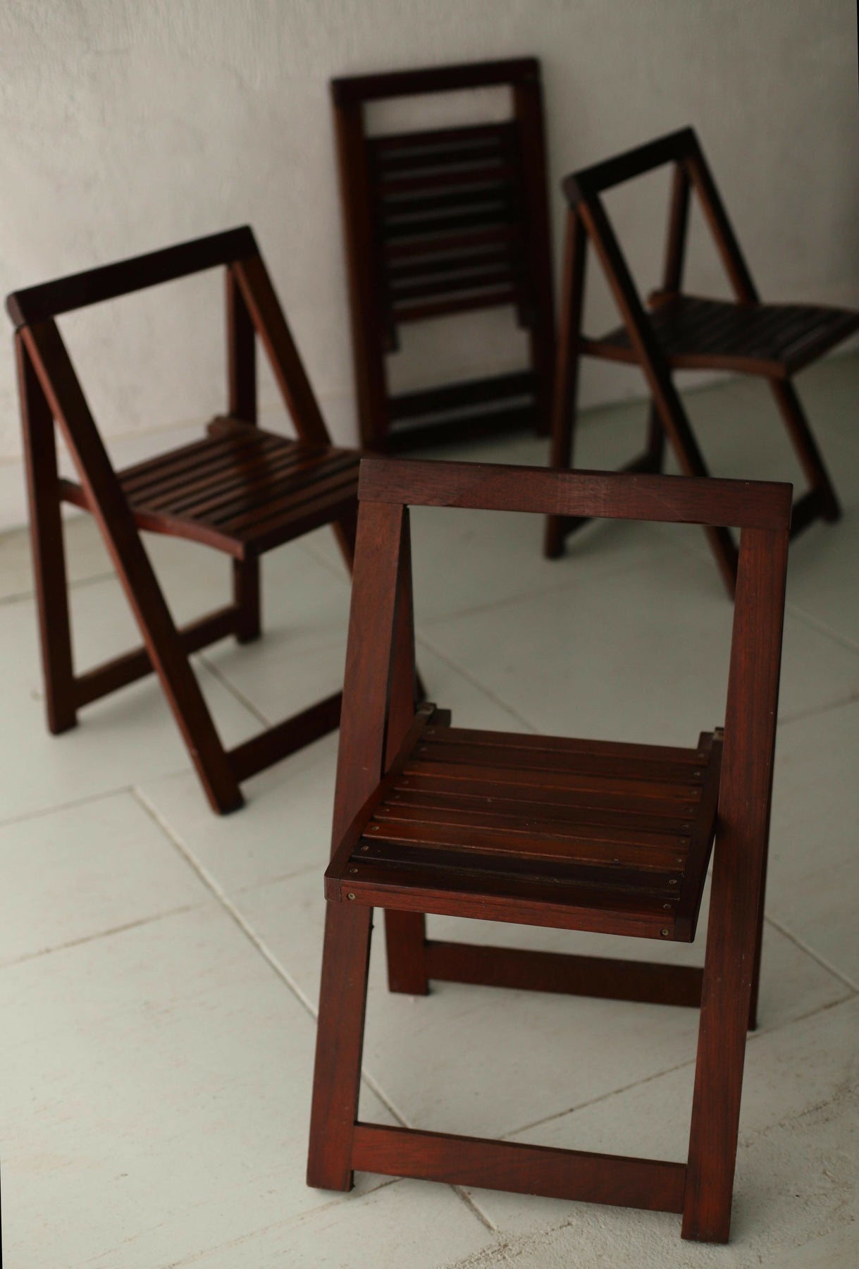 Cadeiras dobráveis em madeira maciça com design que une beleza e funcionalidade. Práticas para o dia a dia, fáceis de dobrar e guardar, estilo atemporal. Ótimo estado de conservação.