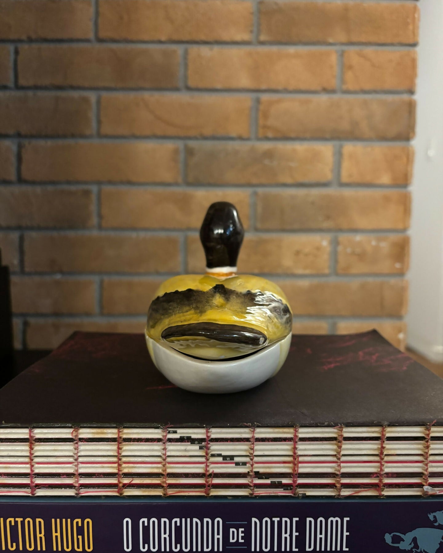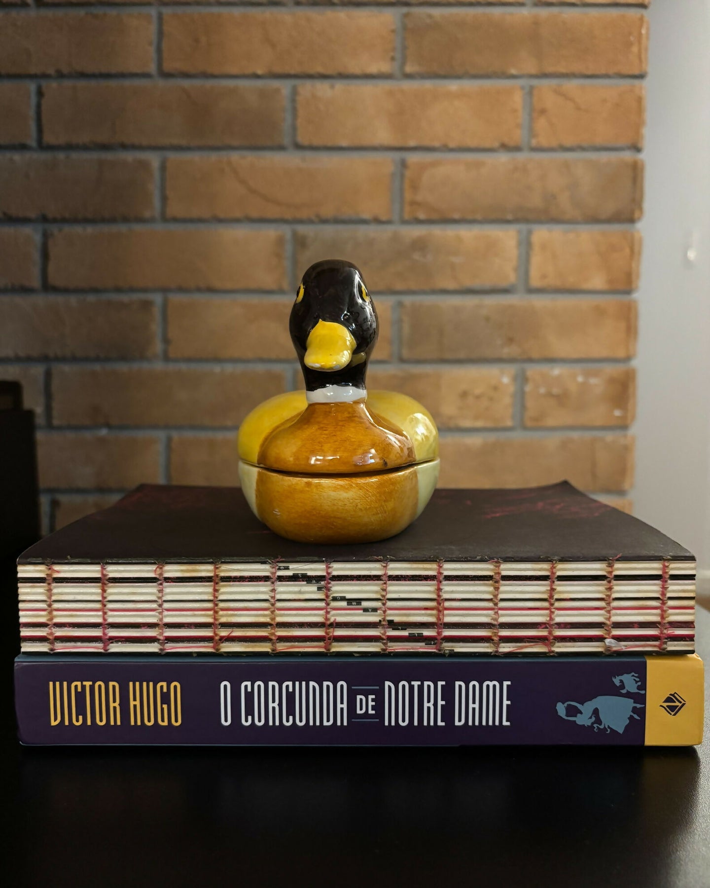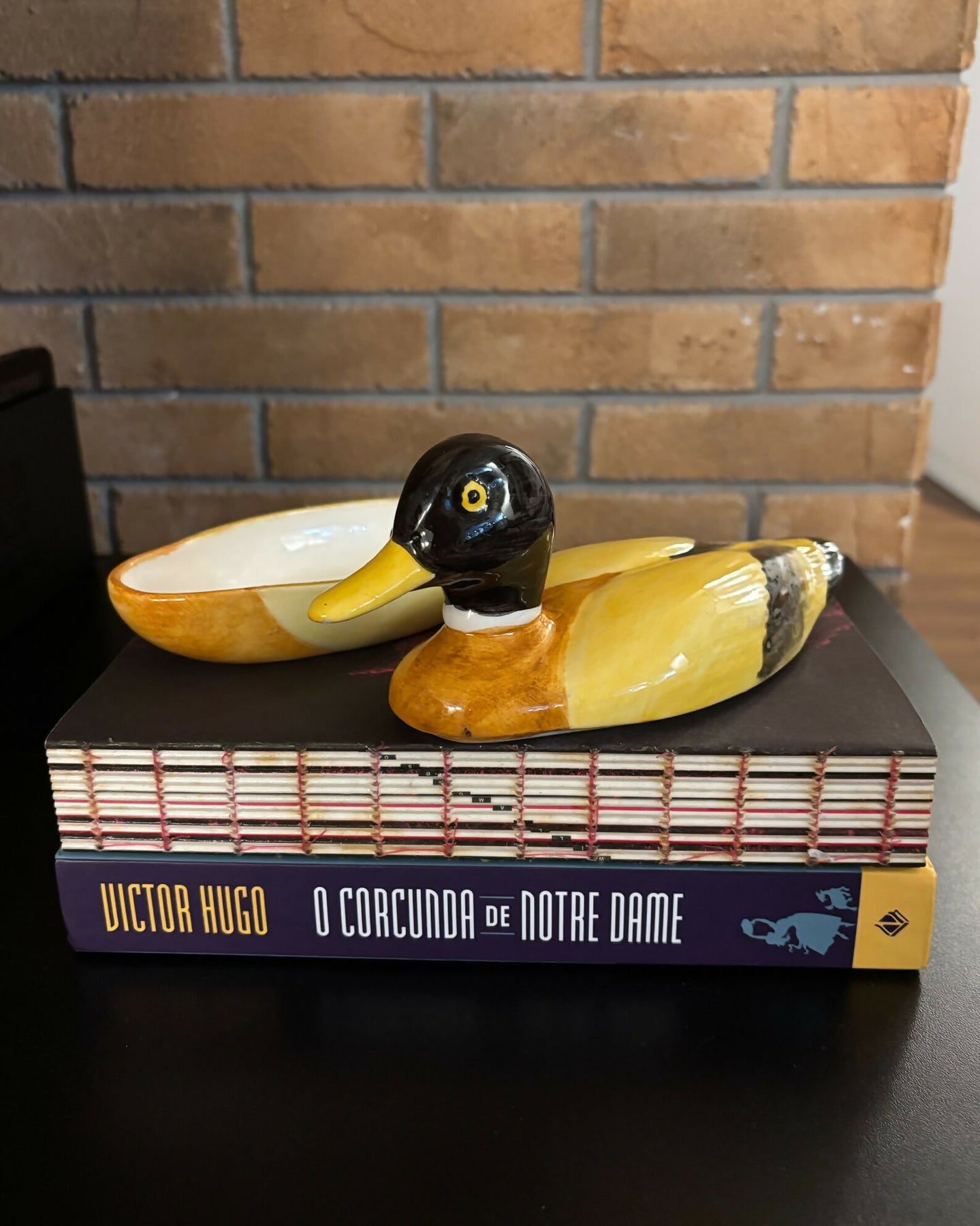 caixa em formato de pato, em porcelana portuguesa pintada à mão