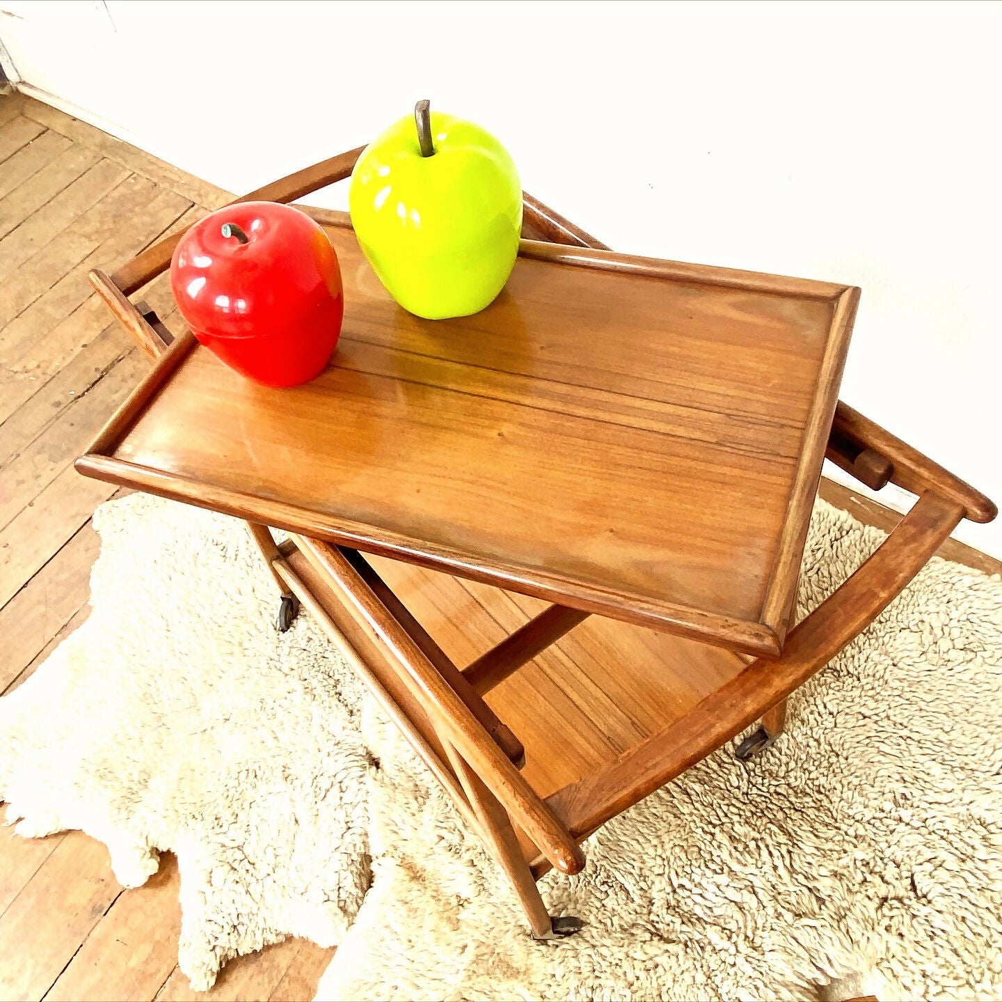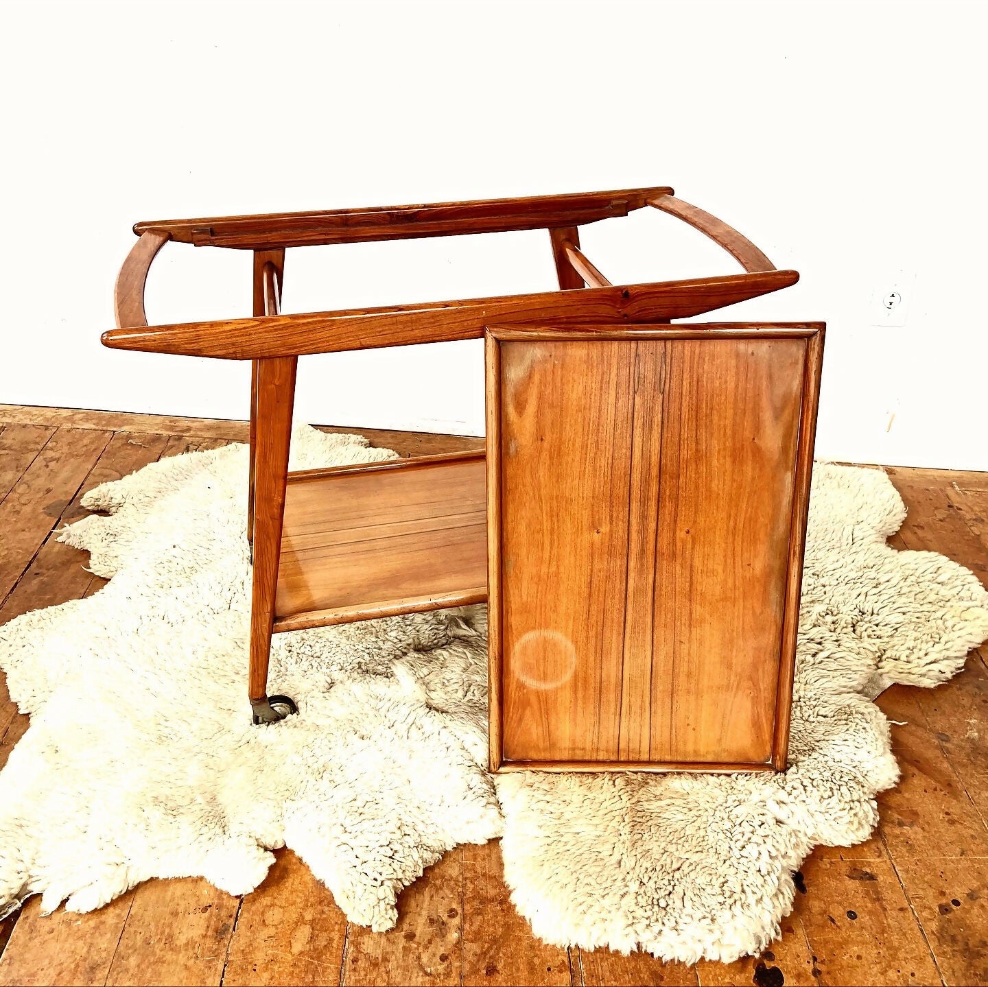 Raro e icônico carrinho de chá Geraldo de Geraldo de Barros para Unilabor anos 60. Executado em caviúna maciça. Bandeja de cima removível. Está em ótimo estado original, rodízios tb originais e apenas uma marca do tempo na parte de cima. Comprimento 45 cm, largura 46 cm e altura 65 cm. 2800 reais em pix ou parcelado com juros do cartão. Consulte o valor do frete!!