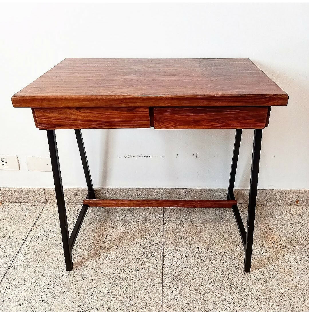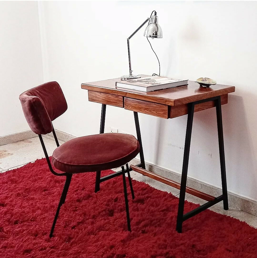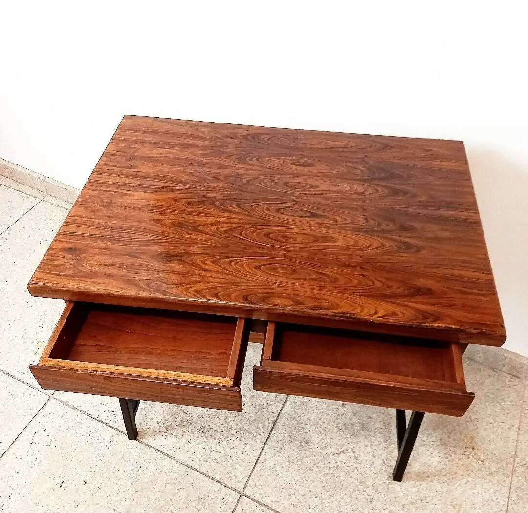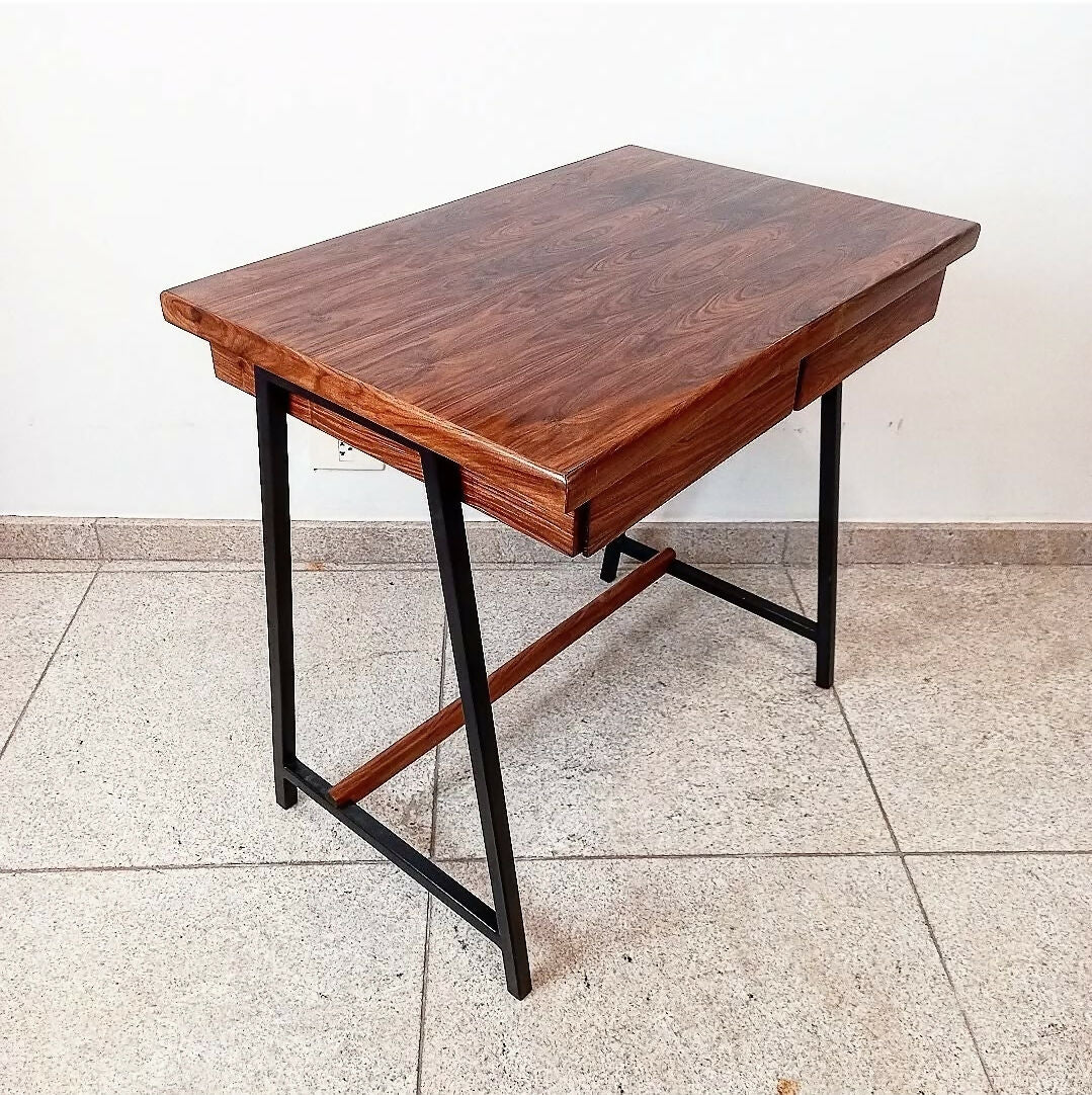 Pequena escrivaninha em jacarandá e ferro, fabricada nos anos 50/60, pela Móveis Gobbi.